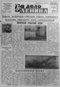 О РГАН С Е В Е Р Н О Г О РАЙК ОМ А КПСС И Р А Й О Н Н О Г О СОВЕТА Н А Р О Д Н Ы Х Д Е П У Т А Т О В Н О В О С И Б И Р С К О Й ОБЛАСТИ Выходит по вторникам, четвергам и с у б б о т а м . Пролетарии всех стран, соединяйтесь! Газета основана 20 июля 1935 года № 106 (5702) ВТОРНИК 4 С Е Н ТЯ Б Р Я 1984 г о д а Цена 2 коп. З а д а ч а п о л е в о д о в — б ы с т р е е у б р а т ь з е р н о в ы е и с и л о с н ы е, в ы п о л н и т ь п л а н х л е б о п о с т а в о к ! j i v v v w w w w w u w w w w v w v w v w ОБЫЧНЫЙ РАБОЧИЙ ДЕНЬ ЗВЕЗДА ТРУДОВОЙ СЛА- :ВЫ ЗАЖЖЕНА В ЧЕСТЬЮ 'МЕХАНИЗАТОРОВ КОЛХО; 'ЗА «ПАМЯТЬ ЛЕНИНА»,' 'СКОСИВШИХ ЗЕРНОВЫЕ' ’ НА 700 ГЕКТАРАХ И НА^ 'МОЛОТИВШИХ С ЭТОЙ' :ПЛОЩАДИ 12714 ЦЕНТНЕ»> ;РОВ ЗЕРНА. хозяйство^ : УСПЕШНО ВЕДЕТ ЗАСЫП ;к у СЕМЯН И СДАЧУ ХЛЕ-^ ' БА ГОСУДАРСТВУ. y w v w v w w w w w w w w w v S П Р И Н И М А Е М Х Л Е Б Из колхозов района на хлебоприемное предприятие продолжает поступать зерно, К его приему мы готовились заранее. Отремонтировали склады, вентиляционное, с у шильное и прочее об оруд о в а ние. Укомплектовали к а д р а ми все участки. Так что т е перь прием зерна ведется без задержки. Первой хозяйства начали косить и обмолачивать рожь. В основном в районе растет «вятка». Нынче она полегла. Но зерно с площадей, з а н я тых ею, идет созревшее, качественное, особенно сортовое. Поставляют его на сдачу пока три колхоза: «Путь к коммунизму», «Н а ша Родина» и имени Максима Горького. Основной недостаток хлеба нынешнего у рож а я — его излишняя влажность. Приходится напряженно работать, чтобы избавить зерно от избытка влаги. Больше других хозяйств продали хлеба государству полеводы колхоза «Память Ленина». Отсюда привезено 2507 центнеров ржи. З ем л е дельцы колхоза «Путь к коммунизму» отправили на предприятие 2404 центнера хлеба, имени М. Горького — 24° 9 центнеров. Всего по району приступили к сдаче ржи д евять хозяйств. Среди них: имени Калинина , «Восход», откуда привезено соответственно 1764 и 1015 центнеров зерна. Приняты первые автомашины с хле~ бом из колхозов «VII съезд Советов», «Борьба з а мир» имени XXII съезда КПСС С. ПЕТУХОВА, бухгалтер. Силосный бурт почти за огородами. Можно с улицы увидеть, как челноком ходит по нему оранжевый трактор, как отъезжают груженые зеленой массой автомашины, к ак через несколько минут спешат порож ние к комбайнам. Впрочем, и комбайны работают невдалеке от Бергуля. Д в а часа дня. Только что был обеденный перерыв. Николай Григорьевич Семенов, т р а к торист СП-13 — сейсмопартии-13 — перед тем как вновь завести трактор, решил перекурить: скоро начнется работа. Сидя в кабине, поставив ноги на гусеницы, он вспоминал: 1 — В колхоз приехали 13 июля, — уже больше месяца. Сначала сенаж закладывали. Теперь вот пятый день — силос. Нас из С П - 13 трое: еще шоферы Николай Механцев и Сергей Степанов. Приняли здесь хорошо. Живем в гостинице. Тепло, уютно. Чистое постельное белье — постоянно. И с едой все нормально: в столовой питаемся. Три раза в день. А вчера, после одиннадцати, молока по кружке выпили. Д а мы вот только с обеда. Чем кормят? Утром - гуляш d лапшой,, Сейчас —; суп с мясом, второе — с м я сом. Компот. Куда еще? О том, что в колхозе имени Карла Маркса ком андиров анных на заготовку кормов и уборку урожая встретили хорошо, слышали и от шоферов «Транссельхозтехники». И такое обхождение, как' говарив али в старину, сказывается на настрое всех, Кто в эти дни косит кукурузу, кто возит ее, кто буртует. В начале третьего, б у к 