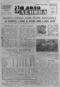 ОР ГАН С ЕВ Е РН ОГ О РАЙКОМА КПСС р а й о н н о г о СОВЕТА Н АРО ДНЫХ ДЕ ПУТАТ ОВ Н ОВ ОС ИБ ИР С КО Й ОБЛАСТИ Выходит по вторникам, четвергам и с у б б о т ам П р о л е т а р и и всех ст ран, с о е д и н я й т е с ь ! Газета основана 20 ию л я 1935 го д а № 110 (5 7 0 6 ) ЧЕТВЕРГ 13 СЕНТЯБРЯ 1984 г о д а Це на 2 к оп. Дорожить каждым часом. Полнее использовать все возможности и резервы на заготовке кормов и уборке урожая -1 В с о в е т е РАНО и райкоме профсоюза^ П о б е д и т е л и о п р е д е л е н ы Совет РАП О , президиум рай к ом а п рофсою з а работников сельского х о зяй с т в а ра с см о т рели итоги социалистического соревнования колхозов , зв ен ьев на уборке у р о ж а я , з а г о т о в к е кормов на 10 сентября и постановили: Признать победителем колхоз им. М. Горького (п редсе да тель А. Н. Савчиц, се крета рь п а р т о рганизации Г. Е. Аленский, п редседатель п рофкома Н. И. Лещинский, председате ль сельского Совета П. Ф. Тимкин, се крета рь комсомольской орган и зац ии А. Д ы д и к о в , г л а в ный агроном Н. А. Пана рин , главный и н ж е нер Н. П. Б у г а е в ) , убравший- 32 процента зерновых, выполнивший план засыпки семян иг 33 процента , сдачи зерна госу д ар с тву — 95 п роцентов; выполнивший план з а г о т о в к и зеленой массы силосных на 117 процентов, убравший 80 процентов силосных к у ль тур к уборочной площади. Второе место присудить колхозу «Путь к коммунизму» (п редсе да тель Н. А. Ипать ев , се крета рь п а р тк ом а Н. Ф. Останин, п р е д с е д а т е л ь сельского Совета А. М. Бо л ды р е в , председате ль профкома Л. Ф. С идоров а , с е к ретарь ком сомольской орган и зац ии И. П. Якути и, главный агроном М. Д . К овш ар , главный инжен ер Н. И. Шичкин), у б р авш ем у зерновые на 37 процентов к уборочной п л о щади , выполнившему планы: за сыпки семян — на 25 процентов, всп ашки зяб и — на 28 процентов , сдачи зерна госу д ар с тву — на 48 процентов , з аготовки зеленой массы силосных — на 64 процента , уб р а вш ем у 59 процентов силосных к у ль тур к уборочной площади. Третье место присудить колхозу «Восход» (п редседатель В. И. Д р а г а н , с е к р ета р ь п а р т о рганизации М. П. Т р и бун алов , п ред сед ате ль сельского С овета В. А. Краснов, п ред сед ате ль профкома Ф. Ф. Тихонов, главный агроном С. К. Волокитин, главный инжен ер В. И. В а ш т а е в ) , у б р авш ем у з ерн овы е на 36 п р о центов к уборочной п лощ ади, выполнившему планы: засыпки семян — на 19 процентов вспашки зяб и — на 42 процента , з аго то в ки зеленой массы силосных — на ПО процентов убравшем у 100 процентов силосных культур к уборочной площади. Среди уборочно - транспортных звеньев первое место присуждено звену В. И. Сидорова из к о л х о з а им. К алинина, н амолотившему 7000 центнеров зерна. В ы р а бо тк а на одного члена звена сос тавила 1750 центнеров. Второе место присуждено звену А. Г. Тукаева из кол х о з а « Н аш а Р о ди н а» , н амолотившему 5346 цен тнеров зе рна. В ы р а б о т к а на одного члена звена со с тавил а 1335 центнеров. Третье место присуждено звену Д . П. Ничкова из к о л х о з а «П а м я т ь Л енина » , намолотившему 5579 центнеров з ерна. В ы р а бо тк а на одного члена зв ен а сос т а в и л а 1116 центнеров. У Б О Р К А У Р О Ж А Я КОЛХОЗАМИ РАЙОНА НА 10 СЕНТЯБРЯ Всех яровыК И ОЗИМ1,1X з е р н о в ы х у б о р о ч н а я п л о щ а д ь га в с е г о ск ош ен о га 1 1 i % 1 \ 1 обм олот га % к ск ош ен . н ам о л о т Ц с 1 га ц. 2590 1119 43,2 833 74,4 14904 17,9 1656 627 37,8 520 82,9 7834 15,1 1885 369 - 19,6 357 96,7 5321 14,9 1347 360 26,7 360 100 . 6128 17,0 2140 425 19,9 425 100 4930 11,6 1528 570 37,3 495 86,8 9764 