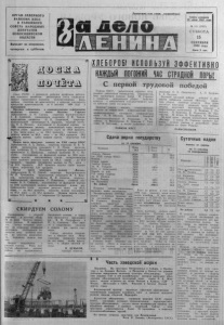 О Р Г А Н С Е В Е Р Н О Г О Р А Й К О М А К П С С И Р А Й О Н Н О Г О С О В Е Т А Н А Р О Д Н Ы Х Д Е П У Т А Т О В Н О В О С И Б И Р С К О Й О Б Л А С Т И Выходит по вторникам, четвергам и субботам . Пролетарии всех стран, соединяйтесь! \ Газета основана 20 июля 1935 года JN& 111 (5707) С У Б Б О Т А 15 С Е Н Т Я Б Р Я 1984 года Цена 2 коп. д ® с а а з а Совет Р А П О ч к е о с в ко с го ель с с о к р о е г в о нов х а о н з й и я я й п с р т е к в з о а и л д х и о у з м р о а в с , с р м ай о к т м р о о е м л л а о и чн п - о р и т о т о ф о в г с а и о р ю ны з с а о х ц р и а а б л ф о и т е с н р т м и и , звеньев, телятниц по производству и пр о д аж е го сударству продуктов животноводст ва за 8 месяцев 1984 года и постановили: Признать победителем в социалистическом соревновании коллектив колхо за имени М а к с и м а Горького (председатель А . Н . С а в ч и ц , секретарь парторганизации Г . Е . Аленский , председатель сельсовета П . Ф . Тимкин, председатель профкома Н . И . Лещин ский , секретарь комсомольской организации А . Д ы д и к о в , ник Н . А . П е т и н а ) , получивший от ф у р аж н о гл й ав к н о ы р й овы зо о те п х о 1988 килограммов молока; водства ст ада крупного рогат в о ы го пол с н к и от в а ши н й а п 1 л 0 а 0 н ,6 в п о р с о п ц р е о н и т з а , в том числе коров — на 102,1 процента, про даж и госу- д а п с т в у молока на 86,3 , мяса — на 102,8 процента. 99,6 ^ - ^ р о ц е н т а молока сдано первым сортом, жирностью 3,43 ^ п р о ц е н т а . Второе место присудить к о л х о з у им. X X I I съезда К П С С (председатель А . А . З а й ц е в , рехин, тель про п ф р к е о д м с а еда П те . ль С . с В ел а ь с и со л в ь е е т с в а е а к , р С е . т с а е Д р к ь . ре п т М а а и р р т з ь е к в о к , м о а мсо Нп м р . о е л В д ь с . с е к д Т о а е й организации А . Ш а б а л д и н , главный зоотехник В . С . М е - г с ж р т у а а е д м в а м ) а , кр п у м п о о н л л у о о ч г к о и а в ; ш ро е г м а в у т ы о п г о о о т лн с ф и к у в о шр та а е жм н н у а о й п 1 л 0 к а 4 о н , р 5 ы о , вы к в о о п р с о о п в р 1 о 8 —и 8 з 4 во н д а к с и т 9 л в 7 о а , 0 процента, пр о д аж и г о су д а р с т в у молока на 75, мяса — на 60,3 процента. 88,9 процента мо лока сд ано первым сортом, жирностью 3,43 процента. Третье место присудить к о лхо зу « В о с х о д » (председатель В . И . Д р а г а н , секретарь парторганизации М . П . Т рибу н а л ов , нов, т к е о х м н с и о к мо п В л р ь . е с д А к с о е . й д С ат е е о м л р е ь г н а о н в п и ) р з , п а о р ц ф е и к д и о с м ед а Г а . те Ф л П . ь о в Ф е с т е . л ки ь Л с н и о а х в , а е н та о в г , л В а . в с н е А ы к . й ре К т р з а о р а о ’ с получившему от ф у р аж н о й коровы по 1836 килограммов молока; выполнившему планы производства ст ада крупного рогатого скота коров — на 98,4 процента , п р о д а ж и м о ло к а го н с а у да 1 р 0 с 3 в т ,3 о в , с у на 87,2 , мя са — на 67,4 процента. Первым сортом сдано молока 91,5 процента с жирностью 3,5 процента. ХЛЕБОРОБ! ИСП0Л1 >ЗУЙ 3 ФФЕКТИВНО КАЖДЫЙ ПОГОЖИЙ Ч АС СТР АДНОЙ ПОРЫ! С п е р в о й т р у д о в о й п о б е д о й Райк ом К П С С , ра вляют работников р п а о й л и е с в п о о д л с к т о в м а , сер сп д е е ц чн и о али п с о т з о д в , всех тружеников колхо за имени М . Горького с успешным завершением уборки силосных культур на За п л р о о г д о а м ж и и у х с в л п ы е е п б х о а а лн г е о н с и у я е д в м а и р л с и г т с о в ь с у у . дар о с т т в в е е т н с н т о ве го нно п с л т а ь к а ж д о г о за общее дело, добросовестный труд, профессиональное мастерство механизаторов звена Н . В . О б у х о в а , водителей Северной «Тра нс се льхозт ехники» Н . М е д в е д е в а , л а к о в а , сенко, В , А Х . о