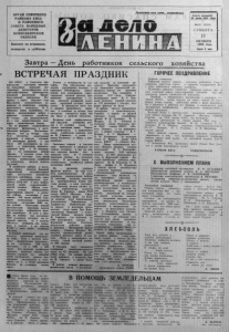 Пролета рии всех стран, соединяйтесь! Газета основана 20 июля 1935 года №123 (5719) С У Б Б О Т А 13 ОКТЯБРЯ 1984 года Ц е н а 2 коп. О Р Г А Н С Е В Е Р Н О Г О Р А Й К О М А К П С С И Р А Й О Н Н О Г О С О В Е Т А Н А Р О Д Н Ы Х Д Е П У Т А Т О В Н О В О С И Б И Р С К О Й О Б Л А С Т И Выходит по вторникам, четвергам и субб о там . З а в т р а — Д е н ь р а б о т н и к о в с е л ь с к о г о х о з я й с т в а ВСТРЕЧАЯ ПРАЗДНИК Ц К К П С С и Советское правительство постоянно проявля. ют неослабное внимание все-- сторонней интенсификации сельскохозяйственного производства, успешной реализации Продовольственной программы. От-! крывая в марте текущего года Всесоюзное экономическое с о . вещание по проблемам .агропромышленного комплекса, К. У. Черненко вновь подчеркнул, что партия рассматривает заботу о развитии сельского хозяйства не только как экономическую, но и как первостепенную социально - политическую задачу. На ее решение направляются огромные финансовые и материальные ресурсы. Достаточно сказать, что з,а четыре года 11-й пятилетки капитальные вложения в отрасль составят 172 миллиарда рублей, в том числе 136 миллиардов на создание и укрепление производственной базы и 36 миллиардов — на социальные нужды деревни. С каждым годом увеличиваются поставки селу новой техники, минеральных удобрений и химических средств защиты растений. В хозяйствах района в настоящее время имеется большой современный автотракторный парк, достаточное количество зерновых комбайнов, семь самоходных силосоуборочных комбайнов КСК-100 и весь необходимый набор сельскохозяйственной техники. Общая стоимость машин, оборудования, транспортных средств в колхозах района составляет 7 миллионов 500 тысяч рублей. Еж е годно капитальные вложения колхозов составляют 4540 тысяч рублей. Благодаря умелой эксплуатации тракторов многие механизаторы добиваются высокой выработки. И если в среднем по району она составляет 1420 эталонных гектаров на у с ловный трактор, то в колхозе «Восход», например, она превышает 2 тысячи, а на трактор К-700 — пять тысяч условных гектаров. Ключевой проблемой для нас остается увеличение производства зерна. Если в десятой пятилетке среднегодовое производство его составило 236> тысяч центнеров. то в 1984 — 300 тысяч. Это позволит хозяйствам засыпать неплохие семена, выполнит!! задание по продаже хлеба государству. выдать колхозникам натуроплату и заготовить по 5 и более центнеров Луража на условную голову скота. Успехи в полеводстве не случайны. Они обусловлены введением укрупненных полевых и кормовых севооборотов, выполнением всех .агроприемов, гарантирующих высокие урожаи, применением одновременно с севом внесения удобрений, освоением зональной системы земледелия. В результате всего этого средняя урожайность зерновых и силосных за четыре года пятилетки ожидается выше, чем она была в десятой пятилетке. Встречая свой профессиональный праздник хлеборобы района к 13 октября сдали 73 тысячи центнеров зерна. Первыми рапортовали о выполнении плана хлебосдачи колхозы имени М. Горцкого, а затем — имени Калинина и «Путь к коммунизму». Заготовка кормов в текущем году проходила в сложных погодных условиях и все же кормов запасено больше, чем в прошлом году, на 4 центнера кормовых единиц на условную голову. В настоящее время в одиннадцати хозяйствах района построены А В М . По - прежнему ударным фронтом рабо
