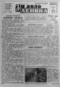 ОРГАН СЕВЕРНОГО РАЙКОМА КПСС И РАЙОННОГО СОВЕТА НАРОДНЫХ ДЕПУТАТОВ НОВОСИБИРСКОЙ ОБЛАСТИ Выходит по вторникам, четвергам и субботам. Пролетарии асах стран, соединяйтесь! Газета основана Д> июля 1925 года № 126 (5722) СУББОТА 20 ОК Т Я Б РЯ 1984 года Цена 2 коп. Н А В С Т Р Е Ч У ВЕЛИКОМУ ОКТЯБРЮ Советские люди готовятся торжественно отметить 67-ю годовщину Великой Октябрьской социалистической революции, день рождения первого в мире государства рабочих и крестьян открыл новую эпоху в истории человечества. Как всегда, праздник Октября станет смотром наших свершений, будет еще од- йЫ» ярким свидетельством непоколебимого единства партии и народа, верности заветам Ленина. Опубликованные Призывы ЦК КПСС к 67-й годовщине Великого Октября нашли горячий отклик в сердцах миллионов. Слово партии, обращенное к советским людям, зовет к новым свершениям, сосредоточивает внимание на ключевых направлениях нашей созидательной работы, борьбы за сохранение и упрочение мира, «Только трудом всех советских людей, — говорил К. У. Черненко, — трудом сознательным, упорным, эффективным — могут быть обеспечены дальнейший рост их благосостояния, их полнокровная, духовно богатая, счастливая Жизнь. За это и борется партия Ленина, на это нацеливает страну ее Центральный Комитет, определяя ориентиры коммунистического строительства». Огромная роль в этом деле отводится коммунистам, тем, кто по долгу партийца должен служить образцом в труде, создавать! в трудовых коллективах атмосферу творчества, инициативы, высокой дисциплины и организованности. К ним обращены слова Призывов ЦК КПСС: , — Коммунисты! Будьте в авангарде всенародной борьбы за ^выполнение исторических решений XXV! съезда партии, последующих Пленумов ЦК КПСС! Всестороннее совершенствование общества развитого социализма — стратегическая задача партии и народа! — Трудящиеся Советского Союза! Шире развертывайте социалистическое соревнование за повышение эффективности производства и качества продукции! Успешно выполним план 1984 года, задания одиннадцатой пятилетки! — обращается Центральный Комитет нашей партии к советским людям, опираясь на его трудовую и политическую .активность. Для реализации намеченных планов внедряются в практику достижения науки и техники, передового опыта, повсеместно добиваются роста производительности труда, , эффективности производства. В числе главных задач — усиление экономии и бережливости, укрепление организованности, дисциплины. И' проводниками их должны стать партийные комитеты, Советы народных депутатов, профсоюзы. 1руженики нашего района отвечают на заботу партии и правительства конкретным делом. План 9-ти месяцев по производству промышленной продукции выполнен на 103,5 процента, план реализации — на 108,6 процента. В числе передовых предприятий можно назвать Северный леспромхоз, маслозавод, лесхоз, райсельхозтехнику. Работники полей и ферм, широко используя прогрессивные формы организации и оплаты труда, осваивая зональную систему земледелия, внедряя укрупненные полевые и кормовые севообороты, добились в 1984 году увеличения производства зерна. Заготовили в ^достатке кормов для общественного скота. Животноводы района досрочно справились с девятимесячными планами продажи молока и мяса государству. Колхоз имени Максима Горького справился с годовыми планам