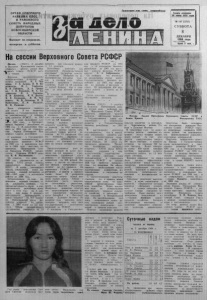 ОРГАН СЕ ВЕР НОГ О РАЙКОМА КПСС И Р АЙОННОГО СОВЕТА НАРОДНЫХ ДЕПУТАТОВ НОВОСИБ ИР СКОЙ ОБЛАСТИ Выходит по вторникам, четвергам и субботам. Пролетарии асах стран, соединяйте сь! « 1 Л С / I U Газета основана 20 июля 1935 г од а № 147 (5 7 4 7 ) СУББОТА 8 Д Е К А Б Р Я 1984 г о д а Ц ена 2 коп . I На сессии Верховного Совета РСФСР Москва . (ТАСС). 5 д е к а б р я в Б ольш ом Кремлев ск ом д во р ц е о тк ры л ась д е с я т а я сессия В ер х о в н о г о С овета Р С Ф С Р деся- w о созыва. Бу р ным и , продолжительным и аплодисментами встретили д е путаты тов арищ ей К. У. Черненко, Г. А. Алиев а, В. И. В о р о тн ик о в а , М. С. Г орб аче ва В. В. Гришина, А. А. Громыко, Г. В. Р о м а н о в а , М. С. Со- лом ен ц ев а , Н. А. Тихонова, П. Н. Д ем и че в а , В. И. Д олги х . В. В. К у знецо в а , В. М. Чеб- ри к о в а , М. В. Зим ян и н а , И. В. К ап итон ов а , К. В. Р у с а к о в а , Н. И. Р ы ж к о в а . Б ы л а у т в е р ж д е н а повестка дня сессии. В нее включены вопросы о Государственном п л а не экономического и социало- ного р а з в и т и я Р С Ф С Р на 1986 г э д и о х оде выполнения пла- i\W в 1984 году, о Г о с у д а р с т венном бю дж е т е республики па 1985 год и об исполнении бю д ж е т а з а 1983 год , об у т в е р ж д е нии У к а зо в П р е зид и ум а В е р ховного С о ве та республики. С д о к л а д о м о Г о с у д а р с т в е н ном п лан е экономического и социального р а зв и т и я Р С Ф С Р на 1985 год и выполнении п л а на в 1984 году выступил з а меститель П р е д с е д а т е л я С о в е та Министров Р С Ф С Р , п р е д с е д а т е л ь Г осп л ан а Р С Ф С Р д е п у т а т Н. И. Масленников. Он отметил, что план на 1985 год осн овыв ае тся на ре шениях XXVI с ъ е з д а партии, последующих Пленумов Ц К КПСС. В п лан е учитывались н а к а зы и зби рате лей , итоги вы полнения з а д ан и й п яти летки з а 1981 — 1983 годы и р езу л ь таты раб оты з а 1984 год. О становившись на ходе вы полнения з а д а н и й тек ущ его г о д а , д о к л а д ч и к сообщил, что п роизводит ельность т р у д а в п р о мышленности республики повы сится в этом году на 4 п р о цента при плане 3 п роцента , себестоимость д ополнительно к п л а н у снизится на 0,5 п роцен та. Н ациональны й д о х о д республики в о з р а с т е т по с р а в н е нию с 1983 годом на 3,2 п р о ек та. Об ъ ем промышленного п р о и зв о д с т в а ув еличится на 3,8 процента при плановом пр ир о сте 3,5 процента . Н а стой чи во работают над р е а ли з аци ей Продовольственной програм-мы труж ени ки сельско го х о зяй с т в а . Несмотря на неб л а г о п р и я т ны е погодные у с л о вия в текущем году, объем в а л о в о й продукции сельского х о зяй с т в а буде т на 3,8 м и л л и а р да рублей больше, чем в с р е д нем за годы деся той пятилет ки. В д о к л а д е отмечалось, что в проекте п лан а з ав ерш ающ е го года од и н н а д ц а т о й п яти летки темпы роста по б ольшинстзу важн ейш и х п о к а з а т е л ей н ам е чены более высокими по с р а в н е нию с п редыдущим периодом. Н аци о н а л ьн ы й д о х о д р еспу б л и ки п ла н и р у е т с я увеличи ть па 4 процента , объем п ромышлен ного про изво д ств а до лж ен в о з расти на 3,8 процента . Объем вал о во й продукции сельского х о з я й с т в а п л а н и р у е т ся довести д о 65,8 м и л л и а р да рублей с ростом против с р е д негодового у р о в н я д есятой п я тилетки на 15 процентов. О с о бое внимание о бращ ено на увеличение п р о и зв о д с т в а зерна , з а д а н и е по к о тором у у с т а н о в лено на уровне пятилетнего п л а на. П р е д у с м а т р и в а е т с я рост р е альных д о х о д о в на д ушу н а с е ления на 3,6 процента . С р е д не