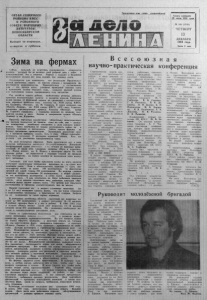 ОРГАН СЕВЕР НОГО РАЙКОМА КПСС И РАЙОННОГО СОВЕТА НАРОДНЫХ ДЕПУТАТОВ НОВОСИБ ИР СКОЙ ОБЛАСТИ Выходит по вторникам, четвергам и субботам П р о л е т а р и и в с е х с т р а н , с о е д и н я й т е с ь ! Г а з е т а о с н о в а н а 2 0 и ю л я 1 0 3 5 г о д а № 149 (5 7 4 9 ) ЧЕТВЕРГ 13 Д Е К А Б Р Я 1984 г ода Ц е н а 2 к о л . Зима на фермах Сейчас, п о ж а л у й , не встретишь ру ко во д ите л я , сп ециалиста к олхоза , который бы не начинал свой рабочий день с з а б о т о животноводств е . Это и понятно. Н а р я д у с малыми и большими неотл ожными делами нет пока в аж н е е , чем з и м о в к а скота. Н еоднократно уж е отмечалось, что р е а л и з а ц и я П родоволь ст венной программы страны во многом с в я з а н а с повышением эффективности ж и в о т н о в о д с т в а . Применительно к сегодняшнему дню — э то , преж де всего, успешное проведение зимовки ск о та и выполнение планов те к ущего г о д а , со зд ан и е прочной основы д л я выполнения планов з а в е рш аю щ е го года пятилетки. Р я д х озяй ств нашего рай о н а , м о б и ли зо в ав резервы , добились зам етных положительных сдвигов в развитии отрас ли. Увеличили надои мо л о к а от ф у р аж н о й коровы по ср авнению с соответствую щим периодом прошлого го д а колхозы им. XXI I с ъ е з д а КПСС, им. К алинина, «Восход», им. М. Горького. В т а к и х к о л х о з а х , как « П ам ять Л енина » , им. XXI I с ъ е з д а КПСС, « V I I съ е з д Советов», увеличены среднесуточные привесы. Колхозы «Восход», имени М. Горького справились с годовыми п л ан ам и по п р о д а ж е госуд а р с т в у мо л о к а и м я са . Бл изки к за вершению планов «П а м я т ь Ленина» и им. К алинина. * П р а к ти к а пер ед овых к о л л ек тив о в убедительно свидетельствует, что Высокие п о к аз а тел и не пришли сами по себе, они — р е з у л ь т а т инициативы, х озяй ск ого отношения к делу к а ж д о г о ж и в о т новода. З д е с ь научились) не тольк о з а г о т а в л и в а т ь корма, но и бережно, экономно их р а с х о д о в а т ь . Сейчас з ап асы ф у р а ж а на ф ерм ах превышают прошлогодние. З а го т о в л ен о достаточно силоса, в основном прибрана солома. Есть и сено. О бща я кормообес- печенность с о с т а в л я е т 17 центнеров ко рмовых единиц. Есть все условия д л я ув еличения п родуктивности скота. На деле получае тся обратное . Имея практи чески все, в р яд е ко лхозов н а б лю д ае тся вопиющая бесхозя йственность. До пу с каю т неоправданный п а д е ж животных, и на се годня он пер ек рыл прош логодний. В числе этих «лидеров» колхозы «Путь к к оммунизму», « Н о в а я жизнь», им. К. М ар к са и некоторые другие. По этой причине район не с п р а в л я е т с я с годовым планом по п р о д а ж е м я с а го с у д а р с т ву , на первое д е к а б р я не выполнился план выход ного поголовь я . L Ежегодно , д л я того чтобы в ы п о л н и т планы по мясу, колхозы допускаю т зн ачительное уменьшение поголовья из - з а сд ачи мел- ковесного скота. Если в о б я з а т е л ь с т в а х зап и с ан о — с д а т ь скот г о су д ар с тву весом не менее 350 ки лограмм ов, то фактически средний вес одной головы 330 килограмм ов. На к а ж д о м сданном животном потери с о с т а в л яю т 20 ки лограмм ов, в общей с л о ж н о с ти эти ки лограмм ы выли в аю тся в сотни голов дополнительно сданного ск о т а . А к а к отмечалось на бюро районного ком итета партии, и з - з а низкого сдаточн ого в еса ж и вотны х еж егодно с б р а сы в аетс я око л о тысячи лишних голов. Это пример д ля серьезного разм ыш лени я и принятия соотв етс твующ их мер на ме