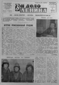 ОРГАН С Е В Е Р НОГ О Р АЙКОМА КПСС И Р А ЙОННОГ О СОВЕТА НА Р О Д НЫХ Д Е ПУ Т А Т ОВ НОВ ОС ИБ И Р С К О Й ОБЛАСТИ Выходит по вторникам, четвергам и с убботам. Пролетарии всех стран, соединяйтесь! Газета основана ДО июля 1935 года № 153 (5 7 5 3 ) СУББОТА 22 Д Е К А Б Р Я 1984 года Цена 2 коп. 2 2 Д Е К А Б Р Я - Д Е Н Ь » Э Н Е Р Г Е Т НА П Р О Т Я ЖЕ Н И И ВСЕЙ ИСТОР ИИ СОВЕТСКОГО Г ОСУД АР СТ ВА КОММУНИСТИЧЕСКАЯ ПАРТИЯ П Р И Д А В А Л А П Е Р В О С Т Е П Е Н Н О Е З Н А Ч Е НИЕ Р А З В И Т ИЮ Э НЕ Р Г Е Т ИК И И ОС ОБ Е НН О Э Л Е К Т Р И Ф И К А Ц И И КАК В А ЖН Е ЙШЕ МУ УС ЛОВ ИЮ ПОС Т Р ОЕ НИЯ С О Ц И А Л И З М А И КОММУНИЗ МА. (Основные по лож ен ия Энергетической программ ы СССР на д ли те льн ую перспек тиву ). ВСТРЕЧАЯ ПРОФЕССИОНАЛЬНЫЙ празднин С у р о в а я си бирс кая зима пров ер я е т нас на зрелость, о т в е т ственность, боеготовность . В т я ж е л ы й период встреч аю т энергети ки свой п рофессиональ ный п р аздник . И над о о т м е ти ть , что несмотр я на сложны е погодные условия, н е х в а т к у м а тери алов , с основной своей за- АЩ ' к —- .бе сперебойным с н а б жением потребителей э л е к т р и ческой энергией — сп р а в л яю т ся успешно. Конечно, с л у ч а ются еще неп редвиденные о т ключения отдел ьных участков Л Э П и о б о р у до в ан и я , но с к а ж д ы м годом стабильность работы п овышается . Внося своп скромный в к л а д в реа ли зацию Энергетической п рограммы ст раны, коллектив Северных районных эле к тр и че ских сетей прил ожи л максимум усилий д л я выполнения г о д о вого плана к се годняш нему дню . ' З а в е р ш ен а реконструкция ВЛ -0 ,4 кв в кол х о з а х «VII съ езд Советов», «Н аш а Р о д и на», « П а м я т ь Ленина», имени Калинина. М ак сим ально использо в ал и сь м а т е р и а лы после демон- ю ж а рек онс труиров анных сетей — провод , изоляторы , ж е л е з о бетонные приставки, что мы относим, к т а к назы ва емы м , внутренним резервам . Очень д о бросовестн о отнеслись к реконструкции сетей 0,4 к в се тевые участки: СУ-26, СУ-24, где м астерами р а б о т аю т Б. Г. Б а- гуто, А. В. Чернов . С л аж ен н о р аб о таю т э лектромонтеры Н о в о троицкого у ч а с т к а под р у к о в о д ством м а стер а С. В. Г р и нько ва. Силами С еверных РЭС оперативно ус т р а н яю т с я неп олад ки, о к а зы в а е т с я помощь к о л х о з а м по в во д у новых мощностей. В 1984 году построены линии эле ктр о п ер ед ач и подстанции !ля э ле к т р о сн а б ж е н и я вновь п о строенных объек тов: АВМ-1,5, ф ерм а круп ного рогатого скота и л и н и й л а г е р ь д л я т е л я т в к о л х о з е им. XXII с ъ е з д а КПСС, АВМ-0,65 в к о л х о з а х «Н аша Р о ди н а» , «Н о в ая жизн ь», на летние доильные п лощ адки в кол х о з е «Восход» и р яд дру гих объек тов. В н а с т о ящ е е в р ем я , к о г д а эне ргосис тема Сибири и К а з а х с т а н а ощ у щ а е т острый д е фицит мощности , б е з а в а р и й н а я р а б о т а эле ктросе тей во мн о гом з а в и си т от потребителей . Во - первых, строгое с облю дение п редприятиями и о р г а н и з а циями .установленных эн е р го н ад зором режимов. Во - вторых, р а з р а б о т к а и неукосни тельное выполнение планов м е р о п р и я тий по э кономии э л е к т р о э н е р гии на к а ж д о й ферме, в к а ж дом цехе, в к а ж д о й кв артире . В третьих, б ер еж но е отн ош ение к о х р ан е линий э л е к т р о п е редач и подстанций. Со стороны к о л л е к т и в а э л е к тр осе тей и э н е р го н а д з о р а необходимо усилить к о н тр о л ь з а соблюдени ем государственной дисциплины _ по рациона льному использованию электроэнергии на 