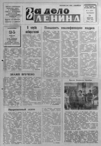 24 я н в а р я 1985 г о д а ф № 11 ( 5 7 6 7 ) « ЗА Д Е Л О Л Е Н И НА » z2eazzzz30tzaasaxzzzzccca3& & & z2^^ 3 Л Е Н И Н С К И Й П Р И З Ы В Весть о том. что умер Владимир Ильич Ленин, м е ня з а с т а л а в моем родном селе Верх - Урюме, что в Здвинском районе. Тогда v нас рад и о не было, а п. 4 ты приходили с большим опозданием. Н ам , комсомольцам, эту весть сообщил Самойлов — председатель Лянинского волисполкома: он в о з вр ащ а л с я из уезда через наше село. а мы д о поздна з а д е р ж а л и с ь в сельском Совете на репетиции к р у ж к а художественной с а модеятельности. Мы не з н а ли Ленина , но Все считали его великим человеком, в о ж дем России и всего мирового п р олетариата . Н а вто рой день с ос тоял ся траурный митинг. п р и шли стар и млад . Н а три буне всеми ув аж а ем ы й учитель Василий П авлович Зу - дихин. Н е ль зя с к аз ать , что он был отменным оратором с отточенной дикцией, но все люди слушали его в ним ательно. Когда се кретарь п артячейки П. А. Г у б а р е з п редлож ил принять п о становление: «Мы считаем т о варища Ленина самым род ным и близким... Теснее сплотимся вокруг Ленинской партии. .,» , т о лес рук взметнулся одновременно. Расходились кр естьяне как- то неохотно, молча. со скорбью на лицах. Я в партийном архиве Новосибирского обкома КПСС. П ередо мною пап ка с пожелтевшими многочисленными протоколами с о б р а ний, митингов в городе и селах обширного сибирского к р а я по случаю кончины любимого в ож д я . Вскоре г аз е та «Сов етская Сибирь» опубликов ала постановление пленума губкома партии об ув ековечивании памяти Владимира Ильича. Решено в городе Новоникол аев с ке (ныне Н овосибирске) построить на народные средства ДомЛшмятник Л еп и ну и пер еименовать все з а езж ие уездные крестьянские дома — в Д о м а имени В. И. Ленина . Р абочий класс Страны Советов отметил эту у т р а т е трудом и сплоченностью. П К КПСС принял решение о ленинском призы ве в р я д ы партии. «В Н овони колаевской губернии в ы р а зило ж е лани е вступить в партию 1100 рабочих: из этого числа з а первые две недели, после похорон И л ь ича, принято 500 т о в а р и щей», — сообщила г азета «Сов етская Сибирь» 21 ф ев р а л я 1924 г. Та ж е газе та 20 м а рта того года писал а, что всего по Новониколаевской губернии подано 1212 зая влени й в партию, из к о торых принято 782 человека , из них 54 женщины. Н а страницах губернской газеты до июля 1924 года печ атались списки ж е л а ю щих вступить в к анд и да ты Р К П ( б ) , В одном из таких списков были у к а з ан ы ф а милии дву х тов арищ ей из Н ово - Троицкой и Верх- Красноярской волостей. Эго — Иосиф Иван ович Масис из Верх - Красноярки. ком сомолец с 1921 года. ж у р налист. Масис з а р е к о м е н д о в а л себя с положительной стороны и при организации в селе ячейки РКСМ в ноябре 1923 года к ом со мольцы избрали его своим вож ак ом . В о з г л а в л я е м а я им ячейка принимала активное участие в общественно - политической жизни села, она имела своих представителей в сельсовете, школе, кре дитном товариществе , к о о п е р а ции. Комсомольцы изучали биографию В. И. Л енина и его речь на I I I съ езде РКСМ 2 о к т я бр я 1920 го д а « З а да чи Союзов М о л о дежи». Проводили и большую ку льтурно просветительную работу. Вторым был Прохор Аг- леевич Ивкин из Ново-Троицка. Активный обществен ник, член волостного исп олнительного комитета, р а ботник милиции. Мне п ри ходилось по долгу службы частенько встречаться и р а з го в а р и в а ть с 