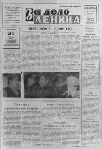 ОРГАН С Е В Е Р НОГ О РАЙКОМА КПСС И Р АЙОННОГ О СОВЕТА НА Р ОДНЫХ Д Е ПУТАТ ОВ НОВ ОС ИБ И Р С К О Й ОБЛАСТИ Выходит по вторникам, четвергам и с у б б о т ам Пролетарии »сах страд, савдинн'йтесь! i l V / I U Н j * L J / ! Газета основана ДО июля 1935 года № 17 (5 7 7 3 ) С Р Е Д А 13 ФЕ В Р А Л Я 1985 г ода Цена 3 коп. ВОСКРЕСЕНЬЕ НЕРУШИМОЕ ЕДИНСТВО Ш ФЕВРАЛЯ 1985 г. Д ЕН Ь ВЫБОРОВ В ВЕРХОВНЫЙ СОВЕТ РСФСР И МЕСТНЫЕ СОВЕТЫ НАРОДНЫХ ДЕПУТАТОВ Яркой демонстрацией н е р у шимого союза рабочего к л а с с а , колхозн ого к р е сть ян ств а и н а родной интеллигенции, неразры- в;н го единения партии и наро- а я в л я е т с я подготовка к выбо ром в Верховный Совет Р о с си й ской Федерации и местные С о веты н ародных депутатов. 5 ф е в р а л я в районном Д о м е х сль туры с о с то я л ас ь встреча избирателей с к а н д и д а т о м в д е путаты В ерховного Совета Р С Ф С Р З о е й Константиновной Черновой . О т к р ы в а я собрание, первый с е к р ета р ь р ай к ом а ВСТРЕЧА ИЗБИРАТЕЛЕЙ С b КП СС В. Т. Б о р о в с к а я с к а з а л а : И з б и р а т е л ь н а я кам п ан и я д а л а новый импульс с о ц и а листическому соревнованию за достойную встречу 40-летия Победы советского н а р о д а ■в Великой Отечественной войне, XXVII съ е зд а КПСС и в борьбе з а успешное выполнение з а д а ний о д и н н а д ц а т о й пятилетки. Н а предвыборном собрании, г П о д е р ж а л а д а л е е она, т р у ж е ники ко л х о з а имени М аксима Горьк ого н а зв а л и своим к а н д и д а т о м в д еп у т а ты Верховного С о ве та Р С Ф С Р по К у йбыш ев ск ому и зби р а т е л ьн ом у о к ругу № 557 д о я р к у З ою К о н с т ан т и новну Чернову . Их п р е д л о ж е ние горячо п о д д е р ж а л и wr т р у д ящ и е с я Кыштовскогб , Е(е|Нге- ровского и Куйбышев ск ого р а й онов. И сегодня мы собрались , чтобы д а т ь ей свой н а к а з к а к п редставителю колхозного к р е с т ь я н с т в а в высшем орган е государственной, в л а с ти р еспу б лики. З а т е м с л о в о п р ед о став л я е тся з а в у ч у Ф едоровской воеьмилетАНДИДАТОМ В ДЕПУТАТЫ РСФСР 3. К. ЧЕРНОВОЙ ней школы Н. В. Архиповой — o l р д .п о м у л иц у к а н д и д а т а . Она п о зн а к ом и л а п рис утствую щих с б иографией 3 . К. Ч е р н о вой, р а с с к а з а л а о ее тр у д о вы х д о с т и ж е н и я х и п р и з в а л а в день выборов ' единодушно о т д а т ь г о лоса з а с л а в н о го п ред с т а в и т е л я колхозного к р е сть ян ств а . Н а три бун е — главный ин женер «Т ранссельхоз техннки» А. А. Г р аж д ан ки н . — Н аш е пред при яти е з а 1984 год, — говорит он — выполнило план по в а л о в о м у д о х о ду на 100,4 процента , по п е р е в о зк е , г рузов — на 105 процентов . Это ста ло во зм ожны м б л а г о д а р я с а м о о тв ерж ен ном у т р у д у в о д и т е лей, ремонтных рабочих, т е х н и ческой службы . Есть у нас свои трудности . Так , д л я автомобилей К ам А З нет теплой стоянки, п л о хов ато с з ап асны м и частями. 1л а в иа я н аш а беда — о т с у т ствие в р ай о н е д о р о г с тв ер дым сок рытием . Н е у д о в л е т в о р я ю т наших в о д и т е л е й и темпы с т р о и тельства допоги • Куйбышев -— Неверное. От имени св оего колВЕРХОВНОГО СОВЕТА лекти в а хочу в ы с к а з а т ь т а к о й н а к а з — пусть наш к а н д и д а т в д еп у таты п ом ож е т уск орить строи тельство дороги Куйбышев - -Северное. , На собрании т а к ж е выступили И. Г. Г л ам а зди н — п р е д с е д а тель исполкома О с тяц кого с е ль ского Сове та , В. И. Ш а у р к о — меститель п р е д с е д а т е л я райпо, М. ГГ К ап о р ик о ва ' — д о я р к а к о л х о з а «VII съ е з д Совето в», В. И. Евдо к им