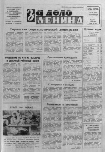 ОРГАН СЕВЕРНОГО РАЙКОМА КПСС И РАЙОННОГО СОВЕТА НАРОДНЫХ ДЕПУТАТОВ НОВОСИБ ИР СКОЙ ОБЛАСТИ Выходит по вторникам, четвергам и субботам. Пролетарии всех стран, соединяйтесь! i i v y i u Газета основана 20 июля 1935 хода № 26 (5782) ПЯТНИЦА 1 МАРТА 1985 года Цена 3 коп. Торжество социалистической демократии Центральные избирательные комиссии по выборам в Верховные Советы союзных республик рассмотрели окончательные итоги выборов. Они состоялись в воскресенье, 24 февраля 1985 года, во всех пятнадцати союзных республиках. Итоги выборов в Верховные Советы республик я в ляются новым ярким и убедительным свидетельством полной поддержки тр удящимися внутренней и внешней политики КПСС и Советского государства. Выборы вылились в подлинный пр а зд ник социалистической демократии. Советские люди продемонстрировали твердую решимость настойчиво добиваться новых успехов на всех участках коммунистического строительства во имя процветания Отчизны, достойно встретить XXVII съезд КПСС, 40 . летие Великой Победы, успешно выполнить планы и социалистические обязательства нынешнего года и пятилетки в целом. Центральные избирательные комиссии всех пятн адцати союзных республик на основании соответствующих статей Законов о выборах в Верховные Советы республик зарегистрировали избранных депутатов по всем избирательным округам. В РСФСР в выборах д е путатов Верховного Совета республики участвовали 101058205 человек или 99,97 процента избирателей. За кандидатов в депутаты голосовало 99.93 процента избирателей. В Верховный Совет республики избрано 975 депутатов. В составе депутатов: рабочих — 35,8 процента, колхозников — 14,7 процента, членов и кандидатов в члены КПСС — 66,6 процента, беспартийных — 33,4 процента, женщин — 35.3 процента. Депутатов в возрасте до 30 лет избрано 20.3 процента. Состав депутатов обновился на 64,0 процента. Все избранные депутаты являются кандидатами блока коммунистов и беспартийных. ТАСС С О О Б Щ Е Н И Е ОБ И Т О Г А Х ВЫБОРОВ В С Е В Е Р Н Ы Й Р А Й О Н НЫ Й С О В Е Т Северная районная избирательная комиссия в соответствии со статьей 29 и 52 « З а к о н а , о выборах в местные Советы народных депутатов РСФСР» и на основании протоколов окружных избирательных комиссий подвела итоги выборов в Северный районный Совет н а родных депутатов. В выборах депутатов Се^ верного районного Совета народных депутатов приняло участие 99,98 процента избирателей. З а кандидатов в депутаты голосовало 99,97 процента от общего _ числа избирателей, участвовавших в голосовании. Против кандидатов в депутаты голосовало 0,03 процента от общего числа избирателей, участвовавших в голосовании. На основании статьи 48 «Закона о выборах в местные Советы народных депутатов РСФСР» бюллетеней, признанных недействительными, нет. Северная . районная избирательная комиссия, рассмотрев материалы по каждому избирательному округу, з а регистрировала избранных депутатов в Северный районный Совет по всем 50 округам. В числе депутатов 26 женщин или 52 процента, 26 беспартийных или 52 процента, 9 рабочих или 18 процентов, 22 колхозника или 44 процента, 18 человек молодежи в возрасте до 30 лет или 36 процентов. 14 членов ВЛКСМ или 28 процентов. Состав депутатов обновился на 46 процентов. Все избранные депутаты являются достойными представителями блока коммунистов и беспартийных. Список депутатов публикуется. Районная избират