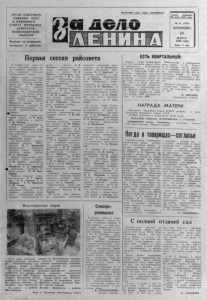 ОРГАН СЕВЕРНОГО РАЙКОМА КПСС И РАЙОННОГО СОВЕТА НАРОДНЫХ ДЕПУТАТОВ НОВОСИБИ РСКОЙ ОБЛАСТИ Выходит по вторникам, четвергам и субботам. Пролетарии всех стран, соединяйтесь! I I C / I U 1 А'ЩЩ ШД Газе та основана 20 июля 1935 г ода № 34 ( 5 7 9 0 ) ВТОРНИК 1 9 МАРТА 1985 года Цена 3 коп. Первая сессия райсовета В актовом зал е Д о м а С о ветов состоялась первая с е с сия Северного районного С о вета народных деп утатов д евя тн адцат ог о созыва. Сессию открыл старейший деп утат , председатель с о в е та РАПО , кандидат экономи ческих наук А.' М. Чуркин. Он сказал, что нынешние выборы состоялись в з а в е р шающий год одиннадцатой пятилетки, в период п о д г о товки к празднованию 40- летия Победы и п р ед ст о я щего XXVII с ъ е з д а КПСС,- Прошедшие выборы и вся избирательная кампания ярко продемонстрировали т о р ж ест в о социалистической д е - ^ (О к р а т и и . П р ед с ед а тел ем сессии был избран д е п утат А. В. Ф е д у лов, секретарем -— д е п у т а т Г. Д . Костина. Избирается м андатная к о миссия. У т верж дает ся ее доклад . Принимается реш ение о признании полномочий всех депутатов . Сессия рассмотр ела о р г а низационный вопрос. По предложению первого секретаря райкома КПСС, деп у т а т а В. Т. Боровской, п р едседателем исполкома районного Совета народных деп утатов избран д еп у та т Н. С. Кириленко. Первым заместителем п р е д седател я избран д еп у та т А. М. Чуркин, зам е с ти т е л я ми п р едседателя — Г. Д . v Маляревич, Г. И. Кормачева. Щ Секретарем исполкома и з брана д е п утат Н. В. Виноградова. Членами исполкома и з б р а ны депутаты В. Т. Боровская, Ф. А. Симонов, Г. Д . Ф ед орова , Г. Ф. Б ер ежн ая , А. Н. Савчиц. З а т ем были утверждены за в ед ую щ и е отделами и начальники управлений исполкома. Зав едую щ им орг ан и зационно - инструкторским о т делом — депутат Г. Д . Фед орова,заведующим о тделом народного об'разо-- вания — д еп у та т Л . П. Юревич, за ведующим о т д е лом культуры — Ю. Г. Гла- м аздин, заведующим о т д е лом по делам строительства и архитектуры — Л. С. Кондрашкина, заведующим отделом социального о б е с п е чения — И. А. Савельев, зав едующим общимотд елом — Н. Н. Ганеев, з а в е д у ю щим отделом записей актов граж дан ск ого состояния — В. И. Тарасенко, з а в е д у ю щим архивным отделом — Г. Ф. Гламаздина. П р ед с ед а т ел ем плановой комиссии райисполкома у т верж дена д е п у т а т Г. И. Кормачева. Начальником управления сельского хозяйства у т в е р ж ден д е п у т а т А. М. Чуркин, начальником отдела внутр енних д е л — депутат А. А. Вертей, начальником уп р ав ления бытового о б с л у ж и в а - -ния населения — В. А. Сухинин, начальником Д Р С У — В. А. З ар уби н , начальником комбината коммунальных предприятий и б л а г о устройства —■ П. Н. А н др ей чик, председателем комитета по физкультуре и сп орту — Ю. Г. Воронков, главным врачом района — В. Т. К остенко, директором киносети — В. Г. Берчук, о х отов едом района — А. В. Войнов. П р ед с ед а т ел ем народного с у д а у т в ерж д ен а Г. А. Б у гаева. Районный Совет народных, деп утатов об р а зо в а л комитет народного контроля. П р е д седателем комитета назначен д е п у т а т Ф. А. Симонов. Пр едс едател ем совета рай онного агропромышленного объединения назначен А. М. Чуркин-. На сессии были о б р а з о в а ны следующие постоянные комиссии: мандатная (п р е д седатель А. И. К оновалов ), планово - бю дж етн а я ( п р е д седатель Н. Т. З а р у б и н а ) , по сельскому хо зя й с т в у 