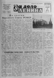 ОРГАН СЕВЕРНОГО РАЙКОМА КПСС И РАЙОННОГО СОВЕТА Н А РО ДНЫ Х ДЕПУТАТОВ Н ОВОСИ БИ РС КО Й ОБЛАСТИ Выходит по вторникам, четвергам и с у бботам . Пролетарии всех стран, соединяйтесь! d V 7 I U Газета основана 20 июля 1935 года № 38 (5 7 9 4 ) ЧЕТВЕРГ 28 МАРТА 1985 года Цена 3 коп. Н а с е с с и и * Верховного Совета РСФСР Москва. (ТАСС). 26 м а р т а в Большом Кремлевском дворце откры л ась первая сессия В ерховного Совета РСФ С Р одиннад ца то го созыва. Бурными, продолжительными аплодисментами, стоя, в стр ети ли д епутаты и гости товарищей М. С. Горбачева, Г. А. Алиева, В. И. Воротникова, В. В. Гришина, А. А. Громыко, М. С. Соломенцева, П. Н. Демичева, В. И. Долгих, В. В. Кузнецова, В. Н. Пономарева, В. М. Чебрикова, JW. В. Зимянина, И. В. Капитонова, Е. К. Лигачева, Н. И^. Рыжкова. Сессию открыл один из с т а р е й ш и й ' д еп у т а т о в Верховного Совета Российской Федерации— П р е дс ед ател ь П ре зид и ум а у р а л ь ского научного центра АН СССР ак а д ем и к С. В. Вонсовс- кий. Д еп у т а ты почтили минутой мо лчания п ам я т ь Константина Уетиновича Черненко. По поручению Совета С т а рейшин д е п у т а т А. М. Роганов п р ед лож ил избр а ть П р е д с е д а т е лем Верховного Совета Р С Ф С Р д еп у т а т а Н. М. Грибачев^ — п исателя , главного ре д а к т о р а ж у р н а л а «Советский Союз». Сессия единоглас но п р ин я л а это предложение . И зб р ан ы т а к ж е за м ести тели П р е дс ед ател я Верховного Совета Р СФ С Р . Д е п у т а ты утвердили повестку д н я сессии. В нее включены вопросы об избрании мандатной в д ч с с и и Верховного Совета ДсГфСР, об избрании П р е зи диума Верховного Совета Р СФ С Р , об об р азо в ан ии п осто янных комиссий Верховного Совета Р С Ф С Р , об у тв ерж д ен и и У к а зов П ре зиди ума Верховного С о в ета Р С Ф С Р , об о б р а зо в ан и и Совета Министров Р С Ф С Р , об об р азо в ан ии комите та н а р о д н о го контроля Р С Ф С Р , об и з б р а нии Верховного суда Р СФ С Р , о мерах по усилению о р г а н и з а то рской работы советских и хозяйственных орган ов Р С Ф С Р по осуществлению Д о л г о в р ем ен ной программы мелиорации, п о вышении эффективности исп ользо в ан ия мелиорированных з е мель в свете решений о к т я б р ь с кого (1984 г.) Пленума Ц К КПСС. Пос ле д о к л а д а избранной на сессии м анд атн о й комиссии е д и ногласно было принято п о с т а новление, в котором признаны полномочия избранных д е п у т а тов Верховного Совета Р С Ф С Р од ин н ад ца того созыва. З а т е м сессия перешла к о б суждению вопроса об избрании П р е зид и ум а Верховного Совета Р С Ф С Р . ' С ек р е тар ь Ц К КПСС деп у т а т Е. К. Лигачев по поручению Ц ентра льн ого Комитета КПСС внес предлож ение , п о д д е р ж а н ное партийной группой и С о ветом Старейшин Верховного Совета Р С Ф С Р , и збрать П р е д седа телем П ре зидиума В е р х о в ного С овета Р С Ф С Р д е п у т а т а В. П. Орлова, р а б о т а вш е го п ер . вым зам естителем П р е д с е д а т е л я С овета Министров Р СФ С Р . П р е дл ож ени е было принято единогласно. И зб р аны т а к ж е заместители П р е д с е д а т е л я , се крета рь и ч лены П ре зид и ум а Верховного С о вета республики. З а т е м были о б р а зо в ан ы постоянные комиссии Верховного Совета Р СФ С Р . Н а сессии оглашено п о с т у пившее на имя П р е д с е д а т е л я В ерховного Совета Р С Ф С Р з а явление С овета Министров Р С Ф С Р о том, что в с о о т в е т ствии с Конституцией Р С Ф С Р Совет Министров республики считает свои о б яз ан н о сти исчерпанными и с л а г а