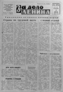 ОРГАН СЕВЕР НОГ О РАЙКОМА КПСС И Р АЙОННОГО СОВЕТА НАР ОДНЫХ ДЕПУТАТОВ НОВОСИБ ИР СКОЙ ОБЛАСТИ В ы х о д и т п о в т о р н и к а м , ч е т в е р г а м и с у б б о т а м . Пролетарии всех стран, соединяйтесь ! Газета основана 20 июля 1935 года № 49 (5 8 0 5 ) ВТОРНИК 23 АПР Е ЛЯ 1985 года Цена 3 коп. Т р а д и ц и я м в е л и к о г о п о ч ив не р н ы Страна на трудовой вахте Миллионы советских людей пришли 20 апреля в з аводски е цехи, на стройки, предприятия сл уж бы быта и тран сп о р т а , ч т о бы в день коммунистического субботника ударным, э ф ф е к т и в ным тр у д о м озн ам е н о в а т ь 115-ю годовщину со д н я * ' рожд ен и я В. П. Л ен и на . Высок деловой настрой, рожденный в стр ане ма ртовс ким (1985 г.) П л е н у мом Ц К КПСС. Н а новые рубежи нацеливают м а тери алы встречи. состоявшейся недавно ^ Центр альном Ком итете парН а п р я ж ен н ы е з а д а ч и во в р е мя смен субботника успешно решали ав томобилестроители Моско вского з а в о д а имени И. А. Л и х а че в а . Г отовясь к празд ч нику т р у д а , коллектив принял весомые социалистически е о б я з а т е л ь с т в а , реа ли з а ц и я которых д а с т ст р а н е много д о по л н и тел ь ном техники, запасны х частей, первосортных т о в а р о в н а р о д н о го потребления . - Все мы, а в т о з а в о д ц ы , н а ходим ся под большим в п е ч а т л е нием от встречи с товарищем М. С. Горбачевым, к о т о р а я сост о я л а с ь в канун ленинского с у б ботника , — говорит н а л а д чи ц а Герой Социалистического Т руда Ю. Б а р у л и н а . — Н а наших р а бочих ме стах руководите ль п а р тии б есе до в ал со многими моими то в а р и щ ам и о главном —• об отношении к а ж д о г о с о в етского человека к делу, о том, к а к -быстрее добиться перемен к лучшему в борьбе з а п о вы шение п роизводительности т р у да и к а че ств а продукции, з а четкую о р ганизацию и эконом ное ведение производства. Ч е тк о . сл аж ен н о действовали и день п р а з д н и к а т р у д а к о л лекти вы всех предприятий, с т р о ек. учреждений столицы. В ер ные слову , они уверенно вы шли на намеченные рубежи , с полной отдачей сил стремились способствов ать ро сту э кон ом и ческого п о тенциала и о борон ного м огуществ а социалистической Родины — оплота мира на планете. С чувством высокой о т в е т с т венности готовились к ленинскому коммунистическому с у б ботнику м е тал л у р ги и шахтеры , химики и транспортники, с т а н костроители и геологи. з е м л е дельцы и ученые. П од готовка к п р а зд н и к у т р у д а с т а л а с м о т ром резервов производств а на к а ж д о м предприятия , в к а ж д о м тру д о вом коллективе. Р ез ер вы повышения п р о и з в о дительности т р у д а , з ал ож е нны е в оферте его организации , были привед ены в действие на б о ль шинстве предприятий Л ен и н г р а д а . Характе рный пример; б р и г а да слес ар ей . сборщиков д в а ж д ы Героя Социалистического Т руда В. Чи черова из о б ъ единения «Ленинград ск ий м е т а л лический з а в о д » теми ж е си лами , с имеющимися м е х а н и з м а ми и приспособлениями сумела в полтора р аз а перекрыть обычную сменную норму. Ж и тел и Ульян овска особую з а б о т у проявили в день с у б ботника о памятных ленинских местах . Здесь н а ч ал ась о т в е т с т в енная р а б о та — р еставпация с а д а . примыкающего к Дому - музею Ульяновых. С ад будет воссоздан в так ом в и д § , в к а ком он был 100 лет н аз ад . В день коммунистического су б б о тни ка тр уж ени ки кол х о з а имени Калинина Ремонтн ен ского района Р остовской об