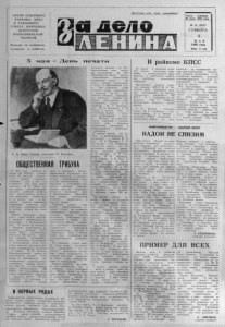 ОРГАН СЕ ВЕ РНОГО РАЙКОМА КПСС И РАЙОННОГО СОВЕТА НАРОДНЫХ ДЕПУТАТОВ НОВ ОСИБ ИР СКОЙ ОБЛАСТИ Выходит по вторникам, четвергам и с убб о г ам. Пролетарии всех стран, соединяйтесь! Газета основана 20 июля 1935 года № 54 (5810 ) СУББОТА 4 М А Я 1985 года Цена 3 коп. 5 м а я — Де нь * п е ч а т и В. И. Ленин. К а р т и н а х у д о ж н и к а П. Васильева. ОБЩЕСВТЕННАЯ ТРИБНУА В 1922 году, со гласно решению Ц К Р К П ( б ) , одобрен ному XI съ ездом партии, в 10 - летнюю годовщину «П равды», день 5 м а я стал отмечаться к а к Д е н ь печати ежегодно. В. П. Лен и н считал печать могущественным орудием идейного в о с п и т а ния, политического р у к о в о д ств а общес твом . О тв етс твен на ее миссия, она — в р а с крыти и великих з а в о е в ан и й с о ц и ал и зм а , т о р ж е с т в а идей ма ркси зм а . ленинизма в борьбе против ч у ж д о й н а с идеологии. В ер н ая ленинским т р а д и циям, паша печать вы с т у п а ет боевым п р опа гандистом , аги тато р ом и о р г ан и з ато р ом масс. В центре ее вним ани я — вопросы п рактическ ой р е ализации решений XXVI съ е зд а КПСС, последующих Пленумов Ц К партии, к о р е н ные вопросы и нтенсиф ик ации, экономики, ' рациона льно го исп ользов ан и я т р у д а , у луч шения к а ч е с т в а продукции, э к о номии ма териальны х ресурсов. О з а б о т е В. И. Ленина, Коммунистической партии по строитель ству печати, улучшения ее д еяте льности сви д етель ствую т многочисленные документы . Новым ориен ти ром д л я нас в этом вопрос е стало постановление П К КПСС «О дал ьнейшем у л у ч шении деятельности районных и городских газет» . В нем говорится. что районные и городские га з е ты — в а ж н о е звено в советской печати, э ф ф е к т и в н ы й , инс трумент п а р ти йных ком итетов в о сущ ест влении политического руков о д с т в а экономическим, с о циальным и ку льтурным р а з витием рай онов, городов, мощное средство ком м у ни с ти ческого воспитания масс и формиров ания общес твен ного мнения, незам енимый источник информации о местной жизни. Р е д а к ц и я газеты стала больше к о н ц ен тр ир о в ать о с новные уси лия на освещении д еяте льности т р у д о вы х к о л лекти вов района. г л у бж е р аскрывать с о д е р ж а н и е о р г а н и з а т о р с к о й ’ и идейно - в о спитательной работы пер вич ных партийных о рганизаций , содействов ать укреплению орг анизо ванности, п о р я д к а и дисциплины. Шире н в сес то ронне стал о свещ аться ход .социалистического с о р е вн о в а ния. На с т р а н и ц а х газеты меньше с т а л о сеоых, м а л о з н а ч а щих м а т е р и а л о в — это р ез у л ь т а т возросшего м а с т е р ств а наших ж у р н ал и сто в . Со стороны чита телей з н ач ите ль но выше с т а л а т р е б о в а т е л ь ность к п убли кац и ям . Г аз еты д е л аю т с я не т о л ь ко д л я т р у д ящ и х с я , но и с помощью самих т р у д ящ и х - ся. Именно опора на б о л ь шую армию а к т и в и с т о в д а - ет возможность нашей г а зете « З а д ело Л ен и на » о к а зывать определенное -поло жительное влияние на п р о изводственные . дела т р у д о вых к о л л ек тиво в , всю общес твенную жи зн ь района. Большинс тво добровольных помощников газе ты — это люди, ак тив н о участвующие в тр у д е н общес твенной жиз- нп. Они стр е м я т с я силой нсчатного с л о в а п о л о ж и т е л ь но повлиять на ход дел, добиться решения з л о б о д н е в ных вопросов. Таковы с т а рейшие общественные кор- песпонденты газеты Г. Е. Аленский, В. Д. Вигилян с- кнй, Ф. Е. Филиппов. А. М. Чуркин и другие. Они в постоянн