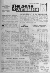 ОРГАН СЕВЕРНОГО РАЙКОМА КПСС И РАЙОННОГО СОВЕТА НАРОДНЫХ ДЕПУТАТОВ НОВОСИБИРСКОЙ ОБЛАСТИ Выходит по вторникам, четвергам и субботам. Газета основана 20 июля 1935 года Ит о г и коммунистического субботника Центральный Комитет КПСС, Совет Министров СССР, ВЦСПС и Ц К ВЛКСМ сердечно п облагодарили рабочих, колхозн иков, инженерно - технических раб отн иков и сл уж ащ и х , молодеж ь , воинов Советской Армии и (Флота, ветеранов войны и т р у д а , всех, ко принял активное участие в коммунистическом субботнике , посвященном 40 - легию Великой Победы, з а их самоотверженный и безвозмездный труд. Коммунистический субботник прошел орг анизованно, был отмечен высокопроизв одительной работой. По п р е д в а рительным данным, в нем участвов али 154 миллиона человек, начислено з а р а б о т н о й платы 185 миллионов рублен и выпущено промышленной продукции на 905 миллионов рублей. т ' учетам п ож ел ан и й т р у д ящ и х с я принято решение на- . п р а к н ъ средства , з а р а б о т а н н ы е на субботнике, на строн- госпиталей и больниц д л я ветеранов войны и т р ^ Щ ^ улучшение их медицинского и бытового о б с л у ж и в ания , благоустройство памятных мест боевой славы, на со оруж ение в городе Москве п ам я тни к а Победы совете кого н а р о д а в Великой Оте чественной войне 1941 — 1945 годов. ^ (ТАСС) Первый вы езд Сроки сева , к а к говорят земледельцы, подж им аю т. С н а д еж д о й ж д у т погожих дней н м е ханизаторы двух к о л х о зов — имени Калинина и имени XX I1 съ е зд а КПСС, — расположенных на терри горни Г р аж д ан ц е в с к о го сельского Совета. П олож ение осл о ж н я е т с я тем , что в х о зя йств х большой объем вес- HOBcr uSi KH, почти н о 1,5 т ы ! # ! ! * г ек тар о в в к а ж д о м . Ij^TOMy сейчас б ерется на \ф ч к а ж д ы й т р а к т о р , р а с считывается до мелочей б у дущий рабочий день на весеннем поле. Под пшеницу есть в с п а ханная з ем ля , ее н у ж н о только подра бота ть . П о э т о му, к а к только п озволит почв а, вся те хника будет н ап р ав л ен а на этот участок. При хорошей организации д ела , бесперебойной д о с т а в ке семян на пашню, механи з аторы колхозов смогут сп равиться с посевом пшеницы за тр и — четыре дня . Одновременно все мощные «Кировцы» нач нут в есн о вспашку. ' Первые вы е зды с д е лали земледельцы во в т о р о й бригаде колхоза имени К а линина. В Малиновке , где поля повыше, они пробуют вести культивацию. Н а чал ее И в ан Васильевич Д р у з е - левич. С. МИЗЕВ, п ред сед ате ль сельсовета. С к о т в ы г о н я ю т в п о л е Сложный период п е р е ж и вают животноводы района. В прошлые годы в это время скот выгонялся на летние пастбища. Сейчас ж е корм а на исходе, а ж и во тны е еще в помещениях. В к о л х о з е «Восход» все дойное ста до н а х о д и т с я на привязи. Коровы получаю т солому, силос, ф у р а ж . М о лодняк решили пасти н е д а леко от деревни, чтобы в случае непогоды его м о ж н о было быстро п р игн ать ча ферму. С д олж ной отв етств ен - ПЕРВЕНСТВУЮТ В СОРЕВНОВАНИИ Три бригады в кол х о з е «Па- Н а ферме раб отае т д р уж н ы й помощь жи в о тно в о д ам механи- мять Ленина». Коллективы ж п - и слаженный коллектив. Боль- з а ц и я , нелегко пока еще и по- вотноводов этих участк ов вы- шинство ма стеров — люди, вло- доить коров, и корм р а з д а т ь , полняют одно большое и в аж - жившие в колхозн ое про изво л - и почистить в помещении. Но ное дело —. т р у д я т с я н ад з а - ство деся тки лет. В их числе по - прежнем у ветераны — вершением