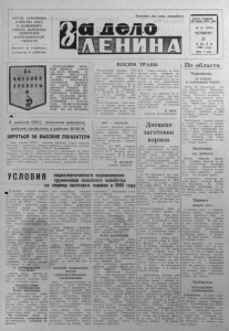 ОРГАН СЕ ВЕ РНОГ О РАЙКОМА КПСС И Р АЙОННОГО СОВЕТА НАРОДНЫХ ДЕПУТАТОВ Н ОВ ОС ИБ ИР С КО Й ОБЛАСТИ Выходит по вторникам, четвергам и с уб б о т ам. П р о л е т а р ии всех стра н, соединяйтесь! Г а з е т а о с нована 20 июля >935 г о д а № 83 (5 8 3 9 ) ЧЕТВЕРГ 11 И Ю Л Я 1985 года Це на 3 коп. З А В Ы С О К И Е П Р И В Е С Ы П Е Р Е Х О Д Я ЩИ Й КРАО- НЫЙ ВЫМПЕЛ ГАЗЕТЫ «ЗА Д Е Л О Л ЕН И Н А » ЗА ВЫСОКИЕ ПОКАЗ АТ ЕЛИ В ВЫР АЩИВАНИИ МОЛ О Д Н Я К А П Р И С УЖ Д Е Н СКОТНИКАМ КОЛХОЗ А «VI I С Ъ Е З Д СОВЕТОВ» МИХАИЛУ И Л Ь И Ч У МОРОЗ ОВУ, НИКОЛАЮ М И ХАЙЛОВИЧУ КАР ПИСОНО- ВУ, А Н А Т О Л И Ю ИВАНОВИЧУ Д Р Е Б Е Н Ц О В У , ПОЛ У Ч И ВШИ М I С НАЧАЛА ГОДА С Р Е Д НЕ С УТ О Ч Н ЫЙ П Р ИВ Е С НА КАЖД УЮ ГОЛОВУ ПО 1056 ГРАММОВ I КОСИМ М еханизаторы колхоза «VII съ е зд Советов» н а р яд у с з а г о товкой витаминно - т р а в я н о й муки в ед ут ко с о ви ц у трав , стремясь з а с к и р д о в а т ь необхо димое ко личество сена. Н а л у га выехали тр ак то р ис ты ,В Й, Мосиявич, В, Н. Бузю ргнн, В. Н Д ер г а ч е в , В Н Махныт- кин, В. И ЕкимкоВ. Они у л о жи л и в в а л к и 122 г е к т а р а т р а в . Пе ред п о ле в о дам и ст оит б о ль ш а я и т р у д н а я з а д а ч а , в ы п о л нить которую можно то л ьк о при четкой орг ан и зац ии т р у д а , т в е р дой дисциплине, ритмичной раТРАВЫ боте Травы неплохие, но боль шинство лугов х о зяй ств а с ы рые, ко е - где д а ж е в о да есть, II хотя в прошлом году мы п о лучили в свое р аспоряж ен и е 300 г ек таров осушенного б о ло т а , готовить там сено пока нель зя — сыро Решено, что р аб о т а т ь на л у гах б у ду т два з в е н а , к а к т о л ь ко появитс я в озм ожн ость . О д новременно будем о р г ан и зо вы в ать воскресники по з аго то в к е кормов вручную. В. КОСС, се крета рь парторганизации . В райкоме КПСС, исполкоме р ай сов ета , АВМ — Р АБОТАЕТ райкоме п р о ф с о ю з а и райкоме В Л КСМ БОРОТЬСЯ ЗА ВЫСОКИЕ ПОКАЗАТЕЛИ Бюро райкома КПСС, исполком районного Совета народных д еп у тато в , прези диум р айком а профсоюза работников сельского х о зяй ств а и бюро рай ком а ВЛКСМ постановляют: Утвердить условия социалистическо го соревнования на период заготовки к орм ов д ля общественного ж и в о тно в о д ств а в 1985 году Партийным, профсоюзным орг ан и з ац и я м , правлениям ко лхозов р а з р а б о т а т ь приемлемые д л я своих ко л л ек тиво в условия соре вно вания , меры м ора льн ого и м а тер и ал ьн о го поощрения п о бе ди телей. С полной нагр у зк о й р а б о т а е т в к о л х о з е «Восход» а г р е г а т вп- таминно - т р а в я н о й муки. И хотя механ из а то р ам мешает безд о р ож ь е , они з аготови ли 135 центнеров витаминно - т р а в ян о й муки, гран ул. Сейчас д л я АВМ полеводы ск ашив аю т се яные травы . Ведет ко совицу В И . Федоров, массу к а г р е г а т у подво зи т В В Попов, п е р е р а ба ты в аю т ее Н Л . Симаев и С II Шеруков. Ф ТИХОНОВ, главный б ухг алтер . У СЛОВИЯ на социалистического соревнования т р у ж е н и к о в сельского хозяйства период заготовки кормов в 1985 году * Труженики сельского хозяй ст- “ . Северного района с б о ль шим удовлетворением во сп р ин яли решения ап рельского (1985 г.) Пленума Ц К КПСС и в ы р а ж а ют тв ер д ую решимость д о б р о совестным тр у д ом достойно встретить XXVII съ е зд КПСС. П р е т во р я я в ж и з н ь П р о д о вольственную п р о гр амм у , по леводы района придают большое значение увеличению п р о и з в о д ств а се льск охозяйств енной п р о дукции. В ц е л ях успешного п р о в е д е ния зимовки обществ енного ск о т а 1985— 1986 года, з а го т о в о к грубых и 