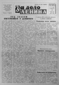 ОРГАН СЕВЕРНОГО РАЙКОМА КПСС И РАЙОННОГО СОВЕТА НАРОДНЫХ ДЕПУТАТОВ НОВОСИБИРСКОЙ ОБЛАСТИ Выходит по вторникам, четвергам и субботам. Г аз е та основана 20 июля 1935 г о д а № 9 0 (58 4 6 ) СУББОТА 27 и ю л я 1985 года Цена 3 коп. П О Д З Н А К О М ОТВЕТСТВЕННОСТИ И ДЕЛОВИТОСТИ В райкоме КПСС, исполкоме р а й сов ета и райкоме п р о ф с о ю з а Подведены итоги зимовки Наша партия, весь советский народ идут к очередному XXVII съезду КПСС. Его значение определяется важ ностью выносимых на обсуждение вопросов, характерных для современного этапа, новизной и масштабностью встающих перед страной задач. В авангарде народа всегда шла и идет ленинская партия, партия коммунистов. Се- ^ годня она призвана возгл авить всенародное движение за ускорение социально-экономического развития страны. Дл я этого требуется, чтобы па борьбу за достижение ближайших и перспективных целей выступила к аж д а я партийная организация, каждый коммунист. Важная часть подготовки к XXVII съ езду КПСС — проведение отчетно - выборных собраний во всех партийных звеньях. В нашем районе отчеты и выборы пройдут в 38 первичных, 10 цеховых napTopraj низациях, 14 партгруппах. В ноябре состоится районная партийная конференция. Р а й онным комитетом партии, первичными партийными организациями уже осуществлена определенная работа по подготовке и проведению этой важной кампании, что окажет свое влияние на организованное начало отчетов и выборов. Особенность нынешних отчетов и выборов состоит в том, что они будут проходить накануне съ езд а партии под знаком смотра работы парторганизаций, кан^ .дого коллектива по выполнению решений XXVI съезда КПСС, постановлений ЦК партии-, областного и районного комитетов КПСС. К этой политической к ам пании коммунисты, все т ру дящиеся района подошли с определенными положительными результатами в хозяйственной деятельности. Итоги шести месяцев свидетельствуют о том, что по р яду пока зателей отдельные коллективы промышленных предприятий обеспечат выполнение годовых планов. Есть определенные успехи в сельскохозяйственном производстве. Труженики ведут работы по уходу з а посевами, заготавливают корма, готовятся к уборке урожая и • предстоящей зимовке скота. Передовые коллективы во главе с коммунистами выступают с ценными инициативами, берут повышенные социалистические обязательства по достойной встрече XXVII съ езд а КПСС. Встав на тру довую вахту «11-й пятилетке — ударный финиш, XXVII съезду КПСС — достойную встречу», коллективы колхоз а «Память Ленина», районного . у з л а связи обязались досрочно, к 25 декабря, выполнить годовые и пятилетние планы. Обеспечить в текущем году сверхплановое -повышение производительности труда на 1 процент, снизить себестоимость д а 0 ,6 процента, отработать два дня на сэкономленном сырье, к дню открытия XXVII съезда партии выполнить план двух месяцев 1986 года. Однако в экономике р ай она имеется еще немало нерешенных проблем, есть ф а к ты бесхозяйственности и р а с точительства. Р я д предприятий, колхозов не справляется с выполнением установленных заданий. Не выполняется план по росту производительности труда. Имеются случаи нарушения режима ра-> боты предприятий торговли, бытового обслуживания. Недостаточно р а зв е рн у т а работа по выполнению постановлений партии и правительства по борьбе с пьянством. Эти и другие вопросы, вытекающие из 
