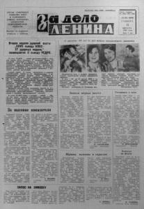 Газета основана 20 июля 1935^года № 103 (5859 ) С У Б Б О Т А 31 АВГУСТА 1985 года Цена 3 коп. ОРГАН С ЕВ Е РН ОГ О РАЙКОМА КПСС И Р АЙОННОГО СОВЕТА НАРОДНЫХ ДЕПУТАТОВ НОВ ОСИБ ИР СКОЙ ОБЛАСТИ Выходит по вторникам, четвергам и с убботам. Пролетарии всех стран, соединяйтесь! Вторая н е д е л я ударной в а х ты „ X X V I I с ъ е з д у К П С С - 27 у д а р н ы х н е д е л ь 1 посвящается II с ъ е з д у Р С Д Р П . II съезд РСДРП — самый продолжительный в истории партии. Было проведено 37 заседаний. Первые 13 заседаний проходили в Брюсселе в помещении заброшенного склада. В дальнейшем из-за полицейских преследований пришлось покинуть Бельгию. Делегаты переехали в Великобританию, и последующие 24 заседания состоялись в Лондоне в помещениях, снимаемых у различных рабочих организаций. Главная задача II съезда заключалась в создании действительной партии на тех принципиальных и организационных началах, которые были выдвинуты и разработаны «Искрой». Этим определялась и повестка V дня: место Бунда в партии; программа и устав; районные и национальные организации партии; внутренние вопросы партийной работы; отношение РСДРП к социалистам - революционерам, к русским либеральным течениям и другие тактические вопросы; выборы цейт- ральных органов партии. Принятый съездом Устав знаменовал переход от кустарничества и кружковщины к всеросийской партийной организации, характеризующейся единством, централизацией и стройной организационной системой. II с ъ е зд РСДРП вошел в историю нашей партии как съезд рождения революционной марксистской партии в России, партии большевиков. Образование ленинской партии, партии нового типа стало поворотным пунктом освободительной борьбы российского и международного пролетариата. З а высокие показатели Труженики колхоза « З а в е ты Ильича» встали на предсъездовскую вахту. Они р а ботают под девизом «XXVII съ езду КПСС—27 ударных недель». На всех ведущих ■ •уч астках колхозного Производства- оформлены стенды, на которые заносятся имена победителей ударной вахты. Прошедшую недел)о, посвященную 1 съ е зду Р С Д Р П , напряженным трудом отметили животноводы, Среди ми- хеевских доярок первое место по праву присуждено Н. П. Гришиной, надоившей За семь дней от группы коров 1392 килограмма молока. На Новотроицкой ферме победительницей признана В. Н. Доголева, которая получила от закрепленной за ней группой коров 1066 килограммов молока. Дойный гурт еще одной фермы первой бригады находится летом в районе Михе- евки. Доярки этого участка также включились в борьбу з а высокие р езул ьтаты т р у да. З а неделю лучших показателей добилась Н. Я. Коче- решко. Она получила 9 62 килограмма молока. В дни ударной вахты кол лективы ферм стремятс я р аб о тать с наивысшей отдачей. Пример в этом, к ак всегда, показывают михеевцы. Участок постоянно имеет стабильные надои, а з а неделю уд ар ной вахты коллективу животноводов второй бригады вручен Почетный диплом. Здесь надоено 5 0 2 6 килограммов молока. Напряженно т р у д ят с я полеводы хозяйства. Перед ними стоит зад ач а обеспечить кормами общественное стадо. В этом важнейшем деле впереди — коммунисты. Один из них, II. Г. Сыпко, работая на комбайне КСК-100, ведет скашивание силосных к у л ь тур. Ему по праву вручен красный флажок победителя соревнования. Петр Григорь евич один обеспечивает з е л е ной массой автомашины, з а нятые вывозкой масс