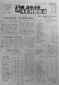 ОРГАН СЕ ВЕ РНОГО РАЙКОМА КПСС И РАЙОННОГО СОВЕТА НАРОДНЫХ ДЕПУТАТОВ НОВОСИБИРСКОЙ О Б Л А С Т И ' — Выходнг по вторникам, четвергам и с уб б о т ам. Пролетарии всех стран, соединяйтесь! д е / а и Газета основана 20 июля 1935 года № 1 1 1 (5866 ) ЧЕТВЕРГ 19 СЕНТЯБРЯ 1985 года Цена 3 коп. — -■ ■- В с о в е т е Р А Н О и р а й к о м е п р о ф с о ю з а ______— ПОБЕДИТЕЛИ СОРЕВНОВАНИЯ Совет РАПО и президиум райкома профсоюза работников сельского хозяйства рассмотрели итоги социалистического соревнования колхозов, звеньев на уборке урожая по состоянию на 16 сентября 1985 года и постановили: Признать победителем в социалистическом соревновании коллектив колхоза «Память Ленина» (председатель М. В. Лукашов, секр етарь парткома Я. Д. Дьячук, предс едатель сельского Совета И. А. Гриц, председатель профкома В. М. Пасько, г л а в ный агроном В. М. Шрейдер), убравший 35,7 процента всех зерновых к уборочной |Шо;:цади при урожайности 16 ,4 центнера с гектара , вспахавший 12,4 процентов зяби. Колхоз «Память Ленина» занести на р ай онную Доску почета . Второе место присудить коллективу кол хоза «Путь к коммунизму» (пведселатечь Н. А. Ипатьев. председатель парткома Н. Ф. Останин, председатель профкома Л. Ф. Сидорова, главный агроном М. Д. Ковшар), убравшему 28 ,7 Процента всех зерновых к уборочной площади при урожайности 10,2 центнера с гектара. Колхоз «Путь к коммунизму» занести на районную Доску почета. Третье место присудить коллективу колхоза «Борьба з а мир» (председатель Ф. Л. Кудряшов, секр е тар ь парторганизации В. Е. Канориков, председател ь сельского Совета И.. Г. Гламаздин, председатель профкома И. И. Лавров, главный агроном Н. М. Буньков), убравшему 5 2 , 6 Процента всех зерновых к уборочной площади при урожайности 10 центнеров с. гектара. Колхоз «Борьба за мир» зан ести на р а й онную Доску почета. В социалистическом соревновании среди звеньев первенство присудить коллективу звена Ф. В. Пегцерекого из колхоза «П амять Ленина, намолотившему 5 4 3 4 центнера зерна. Выработка на каждого члена звена составила 1086 центнеров. Коллектив звена Ф. В. Пегцерекого з а нести на районную Доску почета. СИЛОСНЫЕ УБРАНЫ в бурты подсолнечник, к у к у рузу и заготовило к зимовке 7 525 тонн зеленой массы. Осо- в колхозе имени Калинина кукурузы выехали комбайнеры бое внимание механизаторы на период уборки силосных Л. И. Закамский и В. М Сло- обращают на качество сочного культур было создано механи- бодчиков. На прицепных ком- норма, понимая, что от них зированное звено. Возглавил байнах они вели укос, обеспе- зависит рацион животных в его коммунист, водител ь чивая зеленой массой подъез- период зимовки. Урожайность машины Николай Иванович жающие машины На них силосных культур в хозяйстш плаков. Сам он посланец водители Н. И. Цыплаков, не составила в среднем 170 <• 1ранссельхозтехники», но М. А. Кармач, Н. С. Руденко, центнеров с гектара. е?оСЬ' уВмение°ЗЯЙпТЯбптЯт,,ЗНаЮр' Н Смык Д°ставляли массу Сейчас механизированное Г Г ™ “SHw « должен =°„,.;гг> .■ а 5 т р \ д других. И дело был заготовить 40 тысяч цент- з акладываем в бурты. звене пошло на лад. неров силоса. Сейчас звено п а поля подсолнечника и полностью скосило и уложило А. ПАНАРИН , главный агроном. Работа звеньев на заготовке сена на 16 сентября Фамилия, и , о звеньевого Скошено (га) Заскирд. сена (ц) % выпол пения план факт. «НАША РОДИНА» -Абдрахманов С. Д. Лукьянов Н. А. 210 220 7 5 0 0 6 5 0 0 469 6 3 1 0 