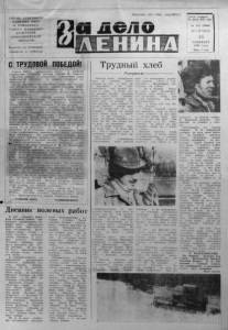 Пролетарии псех стран, соединяйтесь! ОРГАН С Е В Е Р НОГ О РАЙКОМА КПСС И Р АЙОННОГ О СОВЕТА НА Р ОДНЫХ ДЕПУТАТОВ НОВ ОСИБ ИР С КОЙ ОБЛАСТИ Выходит по вторникам, четвергам и с убботам. 21* 7/1 V С ТРУДОВОЙ ПОБЕДОЙ! Райком КПСС, райисполком горячо и сердечно поздравляют коллектив колхоза имени М. Горького с трудовой победой — досрочным завершением плана одиннадцатой пятилетки по продаже продукции ж и вотноводства. На 2 0 сентября и з хозяйства отправлено государству -11172 центнера молока вместо плановых 4 0 9 0 0 центнеров. Задание перевыполнено на 2 72 центнера. Мяса продано 0 3 5 0 центнеров, что больше плана на 130 центнеров. Большой в к л а д в успешное решение поставленных задач внесли животноводы Сургутовской фермы, где по - ударному трудится звено депутата Верховного Совета Р С Ф С Р 3. К. Черновой. В его составе и опытные мастера машинного доения, к а к Р. II. Кваш нина и молодые — как комсомолка Екатерина Лега- чева. Все они показывают образцы труда. Высокие надои обеспечивают скотники - пастухи дойного гурта Виктор Богатырев, Владимир Шапошников, Виктор Яковлев. На равных с ними соревнуются пастухи дойного гурта и молодняка Федоровской бригады Н. И. Хрущев. В. Н. Николаев. М. Р. Виноградов, И. В. Волохович, С. Е. Фомишов, И. Г. Демьянов И. Н. Слепцов, которые стремятс я к тому, чтобы, продуктивность животных в любых условиях была стабильной. Их старательность помогает дояр кам первой бригады добиваться выполнения планов 3^ производству и продаже молока. Первое место в лрудовом соперничестве мастеров машинного доения тредоровки по праву принадлежит Н. Л. Михайловой, .1 П. Архиповой, В. А. Виноградовой. Добросовестно раоотают и. скотники - пастухи з а нятые откормом молодняка в Сургутовской бригаде Звено в составе Сергея Федорова. Валерия Владимирова. Алексея Чернова выращивают животных высоких весовых кондиций. Успехи животноводов невозможны без полеводов их оорьбы за улучшение кормовой базы хозяйства Слаженно действует звено сенозаготовителей возглавляемое Н А. Архиповым. Под руководством Н. В. Обухова идет производство витаминно - травяной муки и гранул. В числе лучших полеводов колхоза бри га дир тракторной бригады Н М. Пермяков, механизаторы и . Б. Лещинский, Николаи Степанов. Ана Васильев и многие другие. ч ь и м трудом с,лава колхоза, его к р еп к ая экономика. труженикам колхоза имени М. Горького р Г ;ЬЯ’ счасть„я ' новых свершений на благо нашей Ь'ОЛИНЬК дос^оннб встретить приближающийся XXVII • 1 ' ••л Коммунистической партии Советского Союза. РАЙКОМ КПСС толий создается РАЙИСПОЛКОМ Дневник полевых работ В дни ударного д е к а д ника полеводы района продолжают напряженную трудовую вахту, венчающую работу года. Они изы с ки вают возможности, р асчитывают силы, чтобы к концу сен тября закончить уборку зерновых и силосных культур. Особенно больщую . прибавку принесли выходные дни 21 — , 2 2 сен тября . З а это в р е мя было намолочено около восьми тысяч центне- ; ром зерна. В социалистическом со- ревновании земледельцев лидируют хлеборобы к о л хоза «П амять Ленина». . которые на 23 сен тября ( намолотили 17517 ц е н т неров зерна. В хозяйстве •зерновые скошены на 1353 гектарах, и на этой же площади обмолочены. ^ Высокими темпами идет уборочная ст рада в колхозе «Наша Родина», где намолочено 9 5 6 5 центнеров зерна. Погожие дни позволили с большей о т дачей использовать на п