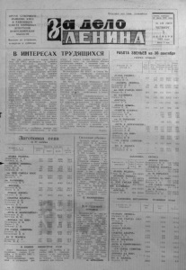 ОР Г А Н С Е В Е Р Н О Г О РАЙ КОМА КПСС И Р А Й О Н Н О Г О С ОВ Е Т А НА Р ОДНЫХ Д Е П У Т А Т О В Н О В О С И Б И Р С К О Й ОБ Л А С Т И Выходит по вторникам, четвергам и субботам. Т Пролетарии всех стран, соединяйтесь! Газета основана 20 июля 1935 год а № 118 (5874) ЧЕТВЕРГ 3 О К Т Я Б Р Я 198 5 г о д а Цена 3 коп. В ИНТЕРЕСАХ ТРУДЯЩИХСЯ „ Как уж е с о о б щ а л о с ь •в печати, Политбю р о ЦК КПСС р а с см о тр е л о и о д о бр и л о к оплек сную программу развития прои з водства товаров народного потребления и сферы урлуг на 1 9 8 6 — 2 0 0 0 годы. Такая программа разработана впервые и должна внести перелом в удовл етвор ение р а ст ущ и х потребн остей трудящихся . Ее принятие имеет о с о б о е значение в у сл о в и я х развер- . нувшейся непримиримой б о р ь бы партии с nbHHcfBOM и алкоголизм ом. Повышение народного б л а г о со сто я н и я я в ляется важнейшим п рограммным т р е б о в а нием партии, с о ста вл я е т сердцевину ее социально - э к он ом ич еск ой политики. Р а с ширение прои зводства т о вар о в для народа, повышение их качества, форсированное развитие всех видов у с л у г рас см атр ивает ся партией как непременное усл о в и е подъема жизненног о уровня населения на качест венно новую, б ол ее в ы с о к у ю ступень. В качестве главной поставлена задача у скор ен н ого развития отрасл ей , занятых про и зв о дством т о в а р о в , созд ания р а з вет вленной сети платных у с лу г , привлечения к э т о м у делу предприятий, объединений и организаций независимо от их специализации, в се х отрасл ей народного хозяйства. П роизводство товаров и у с л у г для н а се ления б у д е т ба зир ова ть ся на использовании достижений научно - т ехни ческ ого п р о г ресса, что позволит поднять на новый у р о вень ,и х качество, значительно расширить а ссортимент. Установленные в программе задания р а с сматри вают ся как минимальные. В пятилстних и го д о в ы х -планах намечено п р е д у сматривать меры по увеличению о бъ ем о в прои зводства т о вар о в и оказанию у с л у г в полном с о о т в е т с тв и и с растущими д е н е ж ными доход ам и населения с подкреплением их необходимыми ресу р сам и Постановлением ЦК КПСС и Совета Министров С С С Р утверж дена комплексная программа развития прои зводства товар ов народного потребления и сф е р ы у с л у г на 1 9 8 6 — 2 0 0 0 годы. ЦК КПСС и Совет Министров СССР считает, что обеспечение у с к о р ен н о г о ра з вития прои зводства товар ов народного п от ребления и сф е р ы у с л у г является ключевой задачей партийных, с о в е т с к и х и х о зя й ственных ОрГсШОВ, п р о ф с о ю зн ы х и к о м с о мольских организаций. В целях развития социали сти ческог о с о ревнования за у спешное выполнение з ад а ний. установленных комплексной прогр ам мой развития прои зводства и сф е р ы у с л у г Ра 1 9 8 6 — 2 0 0 0 годы, у ч р еж д ен о д еся ть п ереходящих Красны х знамен ЦК КПСС, Совета Министров С С С Р . ВЦСПС и ЦК ВЛКСМ с дипломами и денежными премиями для награждения коллективов о б ъ е динений, предприятий и организаций п р о мышленности , т ор гов ли и сф е р ы у с лу г , из них пять знамен « З а у спех и в развитии прои зводства вы со к о к а ч е с т в ен н ы х п р ом ы ш ленных т о вар о в народного п о тр е бл ен и я » и пять знамен « З а успехи в развитии у с л у г и улучшении к ачества обслуживания насел ения » . (Т А С С ) Заготовка сена на 3 0 сентября Заскирд. сена (и) — Фамилия, и , о С кошено ... ^ % званье вого (га) п лап' ф а к т . ВЫПОЛ• '■-Ц , 1: нени