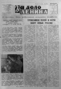 12 октября 1985 года ф № 123 ( 5 8 7 9 ) иоггт т т гт т т гж ясС ихш « ЗА Д Е J1О Л Ё Н И Н А » **ti;t}£ ii/ J t;s i^ ij^ X 2 jtttz z * jn rT T ir7 ryrrrrT rrrrY> СЕЛЬСКОЕ ХОЗЯЙСТВО — ОДНА ИЗ ВЕДУ. ЩИХ И ЖИЗНЕННО В А Ж Н Ы Х ОТРАСЛЕЙ Н А РОДНОГО Х О ЗЯЙСТВА . ОТ ЕГО УСПЕШНОГО РАЗВИ ТИ Я ВО МНОГОМ ЗАВИСИТ НЕУКЛОННОЕ ПОВЫШЕНИЕ БЛАГОСОСТОЯНИЯ НА РОД А . ВСЕСТОРОННИЙ ПРОГРЕСС СОВЕТСКОГО ОБЩЕСТ- С заботой ГЛАВНОЕ ВНИМАНИЕ КОЛХОЗУ ' Сельский Совет народных. депутатов является органом государственной власти на объединяемой им территории и решает в пределах прав, предоставленных законом. все вопросы местного значе ния, исходя из о бщ е г о су дарственных интересов и интересов трудящихся се ла. Таких принципов в св о ей повседневной деятельности придерживается и исполком нашего Совета. В своей практической работе мы главное внимание уделяем хозяйственной деятельности колхоза « Б о р ь ба за м ир». Естественно, не оставляем без внимания различные учреждения и организации. По ходу се ль скохозяй ствен ных кампаний на сессиях или на заседаниях исп олкома рассматривались вопросы. касающиеся заготовки грубых и сочных кормов, готовности животноводческих помещений к зимовке скота, завершении хлебоуборки и другие, При подготовке проектов решений приглашаем тех товарищей, к о торые несут отв етствен ность за выполнение данного решения. Ряд решений выносим на контроль. г У нас не хватает ра бо чих рук как в полеводстве, так и в животноводстве. Поэтому максимум внимания стараемся уделять тем. кто живет у нас и работает. При первой же возможности выполняем их различные заявки, ппосьбы. За последние го- пы увеличили сЬонд жилья. Строили бы еще больше, но слабо обеспечиваемся стройматериалами, да и средст в недостаточно. Есть еще одна проблема. В семидесятых годах жителей селя уд о вл е тв о рял детский сад на 25 мест. А сейчас у нас насчитывается более 70 д е тей ясельного возраста. И вот уже ряд лет мы х о датайствуем перед вышестоящими организациями о расширении детсада до 50 мест. Но пока этот вопрос ся. Нам такой венный никак не решаетпредстоит решить большой хозяйст- вопрос, как перенос Ургульской фермы в незатопляемое место. В последние годы хозяйство несет убытки от наводнений. Именно эта ферма чаще все го оказывается затопленной. Чтобы перенести три животноводческих помещения, нужны, конечно, большие с р е д с т ва. Много потребуется и стройматериалов, о с о б е н но шифера. В аварийном состоянии находится мост через реку Тару. Он эксплуатируется уже 20 лет, причем с огромной нагрузкой. Грузоподъемность моста всег о 5 тонн, а по нему проходит транспорт общим весом ло 50 тонн. Большегрузный транспорт нефтеразведывательной экспедиции разрушил мост, построенный колхозом, и через речку Каевк.у. А за этой рекой у нас и поля, и пастбища. Словом, нужно принимать срочные мены- строить новые мосты или сохранять то, что есть. Год этот был неблаго. приятным не только для нас. но и для всего района. Из - за наводнений, бездорожья подорвалась экономика колхоза. Но большинство наших людей настроены оптимистически. Сейчас они включились в социалистическое соревноГаНИе но ДОСТОЙНОЙ тютрече X X V T1 п-г.р^гтя к г г г с И. ГЛАМАЗДИН, гнрдселатель исполкома Остяцкого сельского Совета. В колхозе имени X X II съезда КПСС в эти дни з а канчивается уборка си л о с ных. Уже убрано 276 гектаров подсолнечника. Он в I ->Т0 М году дал в среднем по 