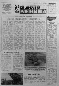 i П Т 2 r r r ^ Г Т У У Т Г «ЗА Д Е Л О Л Е НИН А » >r r r r r r № 124 ( 5 8 8 0 ) 4 15 октября 1985 года Чтобы жилось интересно - Уровень кул ь туры с о ветского человека — одна из важнейших задач в и д е ол огической р а б о т е с мол о д еж ью . От е е решения*, в немалой степени з а в и - . сит наше п р о д в иж ен и е в н е - : ред. Это н а л а г а е м о с о б у ю о твет ственность на нас, д еп у т а т о в , з а н е п о с р е д с т венн ое у ч а с т и е в культур ном воспитании м ол о д еж и . Наш район ‘ у д а л е н от о б ластн ого цёнтра , не итак часто .имеем во зм ож н о сть в и д е т ь , . . у с е б я аргистов- профессибнафов, есть нем а л о объективны х с л о ж н о с тей в решении вопроса организации д о с у г а . Но т р у д ности — не оправдание д л я б е з д ей с тв и я . К т ом у ж е из 5 0 деп у т а т ов р а й с о вета окол о 2 0 — члены ВЛКСМ, молодые комму нисты, ком сомольский ак- тин. Среди деп утат ов с е л ь ских Советов половина люди молодого в озр аста . Они могут и должны стать я др ом в ор ганизации д о с у г а м ол о д еж и . В ком сом ольск их ор г а н и зац ия х ид у т отчеты и выборы. и при о б с у ж д е нии работы ком сом ольск их ор ган и зац и й в сегда р а с с м а тр и в а е т с я вопрос о р г а низации д о с у г а м ол о д еж и , с е участии в х у д о ж е с т в е н ной с ам о д ея т е л ь н о с ти , сп о р тивной р а б о т е . умении комитета ВЛКСМ направить как можно б о л ьш е е число молодых лю дей на рацио- н а д ыш у использован ие св о бодн ого времени с пол ь зой д л я общества . В оп р о с ор ганизации д о су г а сейча с станов ится ещ е б о л е е акт уальным в связи с д ей ст ви ем Указа по б о р ь б е с пьянством и а л к о г оли зм ом . И ск орен ен и е этого социального зл а н е в о зм о ж н о б е з р ешения проб лемы организованного Д0- суг а . Пока все. что д е л а е т ся в р айон е по данной п р о б л ем е , д а л ек о н е д о с т а точно. Н е о б х о д и м о , нав ер н о е , д оби ться , о т р е г у лировать координацию планов по вопросам д о с у г а всем ответственным и з а ин тере сованным ор ган и за циям: к ом сом олу , Дом культуры. райсп орткоми- т е т у , ДСО «У р о ж а й » , м у зыкальной школе, би бл и о т ек е . правоохранительным Комс омо ль с кие собрания Е ж е г о д н о в с е н тя бр е — октя бре в школьных комсом ольск их ор гани зац ия х пр о х о дя т ком сом ольские со бр ани я с ед и ной п о в е с т кой дня. В э т о м г оду их д е в и з « X X V I I с ъ е з д у КПСС —- д о с т о й н у ю встре- чу" . Цель — моби ли зо - га т ь ком сом оль ц ев на акти вное уча ст ие в конкретных д е л а х . направленных г д д о с т о й н у ю встречу п р е д с т о я щ е г о с ъ е з д а . В ссбпэНии примут участие ’-омсомсЛпьцы и вся м ол о деж ь школ. В качестве почетных гостей б у д у т к о м м у н и с т ы, ветераны пар тии ком сом ола , передовики. Члены комитетов ком со мола шефских организаций олжны в зять на се бя п р о ф ори ен т ац и он н ую р а б о ту . подвести итоги летней тр упо в ой четверти. К о м с о м о л ь ск о е с о б р а ние б у д е т отправным м о м ент ом дв иж ен ия ко м с о мол ьц ев и м о л о д еж и « Р е волюционный д е п ж и т е н а г » , п освящ енн ого 7 0 - летию ВОлтт-юго Октября! Пеовым ег о - этап ом явл я е т е " сор ев но в ани е к о м с ом ол ь ск и х ор гани зац ий за право X X V I т подписать ..... рапорт г - . ' з п v КПСС. В. К У Д Р Я Ш О В , с е к р е т а р ь Райкома ВЛКСМ . органам и соответствующих , подраздел ени й в хозяйствах . Эта работа была начата, е е н е о бходим о продолжить. Может б ы т ь им[еет смысл подобный I план утверждать на сов ет е , зат ем придавать гла