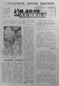 С ПРАЗДНИКОМ, ДОРОГИЕ ТОВАРИЩИ! ОРГАН СЕВЕР НОГ О РАЙКОМА КПСС И Р АЙОННОГ О СОВЕТА НАР ОДНЫХ ДЕПУТАТОВ НОВОСИБ ИР СКОЙ ОБЛАСТИ Выходит по вторникам, четвергам и субботам. Пролетарии всех стран, соединяйтесь! Газета основана 20 июля 1935_года № 134 (58 9 0 ) ЧETBF.PT 7 Н О Я Б Р Я 1985 года Цена 3 коп. Л Л Л /'/ \А Л /У /Ч Л /\Л Л /\/ \Л /\/ \Л Л Л /\/ ' Л А А Л АЛ А Л Л А А Л ЛА /Х Л ЛА Л А Л А А Л ^' ЛАЛ АЛ ЛАЛ ЛАЛ Л/ ' Л Л Л Н Л А 'Ч Л Л Л Л V W V W AA AA AA AA AA AA AAA AAA -V V* СЛАВА ВЕЛИКОМУ ОКТЯБРЮ, ОТ КР ЫВШЕ МУ НОВУЮ ЭПОХУ • \ В ИСТОР ИИ ЧЕЛОВЕЧЕСТВА — ЭПОХУ ПЕРЕХОДА ОТ КАПЙТА- I I ЛИЗ МА К С ОЦИАЛИЗ МУ И КОММУНИЗМУ! (И з Призывов ЦК КПСС). * \ АА ААА ААА ЛАЛ АА/ \ЛА /V/ \A A /\ A A A A A A A .* V Л A A A A A Л A A Л A A Л A A Л A A A Л Л A ^A A A A A A Л A Л A A Л A Л Л Л A Л A A A A Л A A Л A /\A A Л Л /W \/\ A Л /V V \/V V V V V V <^ Плакат художника Р. Сурьянинова. ВЕЛИКИЙ ОКТЯБРЬ Вот уж воистину — «есть слова горячие, как пламя . прекрасные, к а к сама жизнь. Эти слова: Ленин, Революция, Октябрь». Слова огромной д у ховной силы, в своем великом триединстве с т а в шие рядом в т у т р е вож но - памятную ночь, з а которой зан ял о сь утро 7 ноября 1917 года. Это было на чалом нового мира, новой истории. Впереди нас ждали неимоверные трудности г р аж д ан ской войны и иностранной интервенции, вд охновенные годы пятилеток и жесточайшая война с Фашизмом. Сколько п р е кр а с ных жизней ос танется на этом пути в наш сегодняшний день. Но ф ак е л Октября уж е был зажж ен , и теперь ничто не могло остановить нас в победном шествии. Эпоха в з в а лила на нас, к а зал о с ь бы, неодолимую ношу. А мы шли на виду у всей п л а неты — и вставали новые города, и пронзали темь огни электростанций, и гудеДи машины на полях. И мир запоминал наше мужество. В шеренге Пламенных лет Октября у шестьдесят восьмой своя история и своя летопись. Он з а помнится нам прежде всего подготовкой к XXVII с ъ е з д у партии, который определит курс страны на ближайшее пятилетие, у т вердит ^ Программу КПСС в новой редакции. Народ верит своей па р тии и делом, трудом доказыва ет это. Добрых слов заслуживают и т руд ящ и е ся нашего района. Много уже сказано о том, сколько тревог выпало на долю сельских тружеников в нынешнем году — холодная зима, м едли т ел ь на я весна, дождливое л е то, и все же вновь мы говорим об этом. чтобы полнее ^ представить тот трудовой подвиг, который они совершили. В д а л ь нейшее развитие экономики района внесли свой вклад строители, т р анспортники, мелиораторы, лесозаготови тели, геологи. Страна вступила в 69-й год своего существования. Впереди — новые планы на период до 1990 года. Велики и ответственны за - , дачи, ко торые будут пос- : тавлены перед нами, сель- - сними тружениками. Предстоит з а к р е п и т ь ^ и р азви ть : успехи в производстве зер - на. молока и мжщ. На нужды сельского хозяйства будет выделена дополнительная техника, удобрения. Испытанным средством в успешном решении хо- ’ зяйственных зад ач я в л я е т ся социалистическое соревнование ‘ т р у д ящ и х с я , которое рождает все новых и новых героев т ру да, В их числе з в ен ье в ая колхоза «П амять Ленина» , Т. Г. Мазурина, з в ен ь е вой из колхоза имени XXII съ е з д а КПСС В. А. Шаурко , шофер «Транс- сельхозтехники» М. А. Кар- мачев, монтер эн ергоучастка Ф. П. Гудимов, воспитател ь детского сада Г, А. Заруби на , швея Дома быта Н. Н. Б ерш а д с к ая , тракторист коммунального хозяйства М, Ф. Р ы ж ков, учител ьница Северной средней школы Н. Т. Ильиных. Славно трудится и наша м