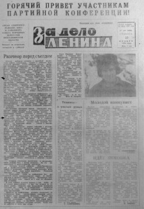ГОРЯЧИЙ пр ив е т у ч а с т н и к а м ПАР ТИЙНОЙ КОНФЕРЕНЦИИ! ОР Г АН С Е В Е Р Н О Г О Р А ЙК ОМА КПСС И Р А Й О Н Н О Г О СОВ ЕТА Н А Р О Д Н ЫХ Д Е П У Т А Т О В Н О В О С И Б И Р С К О Й ОБ ЛА С Т И Вых о дит но вторникам, че твергам и с у б б о т а м. П роле тарии всех стран , соединяйтесь! Газета основана 20 мюля 1935 года № 140 (5 8 9 6 ) С У Б Б О Т А 23 Н О Я Б Р Я 1985 г о д а Цена 3 коп. Разговор перед съездом Отчетно - выборная к амп ания в партийной организации р ай он а закон чи ла сь : сегодня в рай онном Доме ку л ь ту ры проходит XXVII рай он н а я отчетно - выбор к а я партийная конференция . Посланцы всех партийных организаций собралис ь на этот форум, где будут решены в аж ны е вопросы жизни и деятельности р а й онкой партийной организации, повышение ее роли во ьсех сф ер ах нашей жизни. Среди них Зинаида Ивановна Б а л к и н а — з а в е дую щ а я фермой колхоза имени К а р л а Маркса , Н ад еж д а Никандровна Девять- с а а — д о я р к а кол хо за имени XXII с ъ е з д а КПСС, илина Никодимовн а Ермошкина — д о я р к а колхоза «VII с ъ е з д Советов», Петр Э дуардович Коржов механизатор - зв ен ье вой из этого ж е кол хо за . А л е к сей Н иколаевич Сметанин — мех ан изатор колхоза «П ам ять Ленин а» , Никол ай А ле к с ан дрови ч Петров — м ех ан и за т ор кол хо за «Восход», И ван Николаевич Слепцов — скотник кол хо за имени М. Горького, Б о рис Иванович Д ь я к о в — шофер «Т р а н с с е л ь х о з т е х ники» и многие другие. Особенность нынешней партийной конференции состоит в том, что на ней будут обсуждены проекты новой ред акц ии П рограммы КПСС, Основных направлений экономического и социального р а зви ти я СССР на двенадцатую пятилетку и на период до 2 0 0 0 года, а т акж е изменения в Уставе партии. Сейчас идет их заи нтересованное обсуждение среди широких масс т руд ящ и х с я , гд е они на ходят искреннюю поддержку и одобрение. Программные документы партии определяют п ер спективы нашего р а з в и ти я , и поэтому необходимо добиться, чтобы к аж ды й чел ов ек хорошо понимал ее сегодняшние заботы, стратегию и так т и к у , конечные цели, ум ел с в я з а т ь с ними свой к аж додне вны й труд, бет почему, к а к подчеркнул на октябр ьском Пленуме Г е н е р а л ь н ы й с е к р е т а р ь ЦК КПСС М. С. Горбачев, центром всей работы по изучению и р а з ъ я с н е н ию п р е д съ е здов ски х документов должен ст а т ь трудовой к о л лектив, его первичные з в е н ь я — участок и бригада , ф ер м а и л аборатория . По опыту проведения первых собраний с об сужд ением пр е дс ъе здов с ки х документов можно ск а з а ть , что мысли, сод ерж ащ и е с я в этих документах , обостряют восп риятие ф ак т ов жизни, з а с т а в л яю т людей з а д у м ы ваться , вызывают у них ж е л ан и е о т кликнуться , вы с к а з а т ь свое мнение, обратить внимание на т у или иную проблему, недостаток. В центре внимания этих собраний - ак т у а л ь н ы е вопросы руководства экономикой и воспитания людей, укр еп ле н и я г о суд ар с т венной и трудовой дисциплины, повышения ответственности кадров з а порученные у ч а с т к и работы. Партийным ор г ан и зац и ям на м ес т ах любой конкр е т ный критический сигнал необходимо у слыш ать , п р и ня ть по нему меры. В процессе обсуждения не может быть д е л е н и я вопросов на г л а в н ы е и второстепенные. В с т р еч а я с ь и беседуя с д ел е г а т ам и , интересно бы ло услыш а т ь чего они ждут от партийных конференций: — А тм о сф ер а конференции долж н а быть пропитана ед