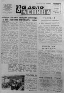 ОРГАН С Е В Е Р НОГ О РАИКОМА КПСС И РАЙОННОГ О СОВЕТА НА Р ОДНЫХ ДЕПУТАТ ОВ НОВ ОСИБ ИР С КОЙ ОБЛАСТИ Выходит по вторникам, четвергам и с у б б о т ам. Пролетарии^ в с е х с т р а н , со е ди н я й т е сь ! Газета основана 20 июля 1935 года К \ 1 4 8 ( 5 9 0 4 ) Ч Е Т В Е Р Г 12 Д Е К А Б Р Я . 1 9 8 5 г о д а Цена 3 коп. ОБРАЩЕНИЕ УЧАСТНИКОВ СОВЕЩАНИЯ ЖИВОТНОВОДОВ НО ВСЕМ РАБОТНИКАМ ЖИВОТНОВОДСТВА РАЙОНА Д ор с гн е товарищи! Идя навстречу X X V I I с ъ е з д у КПСС, прет воряя в жизнь р еш ени я партии и прав ительства, мы, веских ф е р м района, несем тр у д о в у ю вахту выполнить планы и четкие о бя за т ел ь ст ва , ность на нас дения зимовки работники ж ивотн овод- в т р у д н ы х у сл о в и я х , с т р е м и м ся с честью принятые социалисти- О со б ая отв ет ств ен - в о зл а г а е т с я в п е р и о д прове- скота. З д е с ь очень многое от д о б р о с о в е с т н о й и четкой скотников, телятн иц , в с е х о у д е т завис еть работы д о я р о к , тружеников села В есомый вклад в в ы полнени е планов одиннадцатой пятилетки и с оц иалис тич еск их о бя за т е л ь ст в вносят р а б о тни ки ф е р м кол хозов имени М. Горького. '«Память Л е нина», « П у ть к коммун изму»; . В 1 9 8 6 году работники ж и в отн оводс тв а д а ли сл ов о д о в ест и п о г ол ов ье круп ного » 0 | - Я * J скота д о 1 9 5 0 0 гол ов , в том числ е коров — д о 6 6 0 0 . Н адоить на ф у р а ж ную корову по 2 1 0 0 килограммов молока, получить по 8 8 телят от 1 0 0 коров продать молока, период по 1 2 5 0 и г о с у д а р с т в у 1 2 0 тысяч 1 4 5 0 0 ц е н т н ер о в мяса. 1 9 8 5 — 8 6 г о д а решено кил ограм м ов молока на не телей , центнеров В зимний получить коров у. По праву считаются лучшими в районе гпенья З о и Константиновны Ч е рн о в о й и Тамары Григорьевны М а з у р и н о й . З а м е ч а тельные резул ьт а ты в т р у д е показывают телятница Елена Семеновна Л о м с к а я из ко л х о за «Память Л ен и н а » , д о я р к и Н а д е ж д а Аксентьевна М ан сур ова и Нина Петровна Гпишина и з к о л х о з а « З а в е т ы Ильича». Животноводами к о л х о з а им ен и М. Горького выполнен пятилетний план • п р одаж и г о с у д а р с т в у ^ молока и м я с а . Р аботн ик и • рг\ товск ой фермы э т о г о х о з я й с т в а получили по 2 6 8 4 к и л о грам м а молока' на ког ову. Производственные д о с т и ж е н и я п е р е д о в ы х ^ з р о | . района хороши й п ри м ер ком- лрЗсистического о тн ош ения к т р у д у . Н а р а щивают темпы пр о и з в о д с т в а молока кол - Ы'.ш «Память Л е н и н а » , им. Калинина. Ь то ж е время в х о з я й с т в а х « З а в е т ы Ильича» , « Н о вая ж и з н ь » ещ е н е д о с т а т о ч но у д е л я е т с я внимания повыш ению про дуктивности молочного ртада. Товарищи животноводы! ' У с н е т выПопленяя соц иалис тич еск их о б я з а т е л ь с т в в наших m -ках. В первом п о л у г о д и и 1 9 8 6 г ода мы п о л и ты продать г о с у д а р с т в у 5 5 тысяч иемтнеров м о л о , а и 5 тысяч н ентйер ов уж а. Мм призываем в сех б о р о т ь с я за сокио надои молока в зи м н е е т ой л овы й в ы - пениод. Есть у нас ещ е и неиспользованные р езервы . В личных х о з я й с т в а х кол х о зн и ков. рабочих и с л у ж а щ и х района 2 4 9 0 коров. Если к аж д ая семья с д а с т в период зимовки не м е н е е д в у х центнеров молока паион с м о ж е т доп олн и т ел ь н о продать г о с у д ар ств у почти 5 0 0 0 ц ентнер ов продукции. Мы просим работников молокоприемных пунктов о б ес п еч и ть б е с п е р е б о й н у ю при ем ку молока от ф е рм и ин ди ви дуальны х ^датчиков, с о хр ан н о с т ь и с в о е в р е м е н н у ю сдачу ег о на м а с л о з а в о д . Мы о б р ащ а 