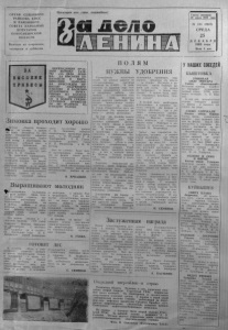 О Р Г А Н С Е В Е Р НО Г О Р А ЙК ОМА КПСС И Р А ЙО ННО Г О СОВЕ Т А НА Р О ДНЫХ Д Е ПУ Т А Т ОВ НОВ О С ИБ ИР С К О Й ОБЛАСТ И Выходит по вторникам, четвергам и с у б б о т ам. Пролетарии всех стран, соединяйтесь! I В / Г ВНЧЕ* ■. a /5 * . ъ Газета основана 20 июля 1935 года Н 154 ( 5 9 1 0 ) С Р Е Д А 25 Д Е К А Б Р Я 1985 го д а Цена 3 коп. ' 7 V ^ / W V V W \ / \ A A A A A A A A / W W V W W W X A A A A / W W W V A / W \ A A A / V V W V W V ^ / 4 A / W ' п е р е х о д я щ и й к р а сн ы й ВЫМПЕЛ ГА ЗЕ ТЫ « З А ДЕЛО ЛЕНИН А » З А ВЫСОКИЕ ПОКАЗАТЕЛИ В ВЫ РА ЩИВАНИИ МОЛОДНЯКА ПРИСУЖДЕН НИ КОЛАЮ А Н Д Р Е Е В И Ч У ; ПАВЛОВУ И ВАСИЛИЮ ФЕДОРОВИЧУ ПОЧТА- РИКОВУ ИЗ КОЛХОЗА «В ОС ХОД » , ДОБИВШИМ-: СЯ в НОЯБРЕ СРЕДНЕСУТОЧНЫХ ПРИВЕСОВ Г10 5 8 7 ГРАММОВ НА КАЖ Д УЮ ГОЛОВУ • A A . V 4 A A / W V \ / \ A A A A / W W W W W W V W W W W \ / W W W \ VXA A/ \AA /V '4A /\A AA/ \/ ' \ A A < ' S Зимовка п р ох оди т х о р о ш о 1Колхоз .«Память Ленина» из п е р в ы х в районе завершил пятилетку п о п р о даж е г о с у д а р с т в у ж и в о т н о водч еск ой продукции. З а м е т ный вклад в реализацию намеченных ру б еж ей вн е с и колл ек ти в З а б о е в с к о й м о л о чн о т о ва рн ой ф е рм ы , к о т о - I ым р у к о в о ди т д епутат рай с о в е та А . Ф. Осиров а. За минувшие ''одиннадцать ме сяц е в ^ средний надой от (f>v раненой к о р о в ы п о ф е рм е превысил 2 0 ц ен тн еров . Неплохие надои и в д е к а б ре'. А в г у с ти н а Ф е д о р о в н а , как бр игадир п р ои з в о д с т вен н о г о у ча ст к а , счи тает, ч т о э т о — ре з ул ь т а т д р у ж н о й р а б о ты в с е г о коллектива : д о я р о к Г. Ф. О синовой , к о т о р у ю ж и в о т н о в о д ы назначили з в е н ь евой, С. II. Ж у р о в о й , Т. Ф Ч ерепановой , 3 . П. У з к и х ’ ск отни к ов д о й н о г о г у р т а Я. П. Филиппова и Н. И. Белова. Как ни с л о ж н о бы л о нынче заг отавли вать к о рм а , но в с е ж е ф е рм а имеет д о с т а т о ч н о е к о л и ч е с тв о сенаж а , с и л о с а , н е п л о х о г о качеств а с о л о м ы — пшеничная: я р о вая. С такой о б е с п е ч е н н о с т ь ю к о рм ам и м о ж н о выполнить о б я з а т е л ь с т в а , в з я ты е на зи мовку. А . АРКАДЬЕВ . Выращивают молодняк т ^ ёР л ращ и в ан и е молодняка д ел о о с о б о е . З д е с ь н уж но не т о л ь к о с т р о г о е вы полнение ра сп оря д к а дня, полноценное кормл ени е , но и Зсбота , л ю б о в ь к делу.- к о т о р ы е не заменишь ничем. О бы чн о телят в ы р а щи в аю т люди , д уш о й п р е данные р а б о т е . Это м о ж н о ск а за ть и ' о ск о тн и к е ко л хо з а «VII с ъ е з д С о в е т о в » Николае Ефимови- С м о л о д ы х л ет т р у д и т с я он в х о з я й с т ве. П оследние г о д ы Н. Е. Кап-вриков зи м ой в ы р а щ и в а е т мол одня к , а раньше бы л и ф у р а ж и р о м . Сам из династии п о т о м с т в е н н ы х к р е с т ь ян, он зн ает ц ен у к а ж д о м у гр амм у при веса , к а ж д о м у к л о ч к у корма. За н о я б р ь п е р е д о в ой ск отни к д о б и л с я с р е д н е о у т о ч н о г о п р и р о с т а одной г о л о в ы мол одня к а по 9 5 3 грамма. В д е к а б р е он также не с н иж а ет темпы, возглавляя со ц и а л и с т и ч е с к о е с о р е в н о в а ние ж и в о т н о в о д о в х о з я й с т в а по б л а г о п о л у ч н о м у п р о в е д е нию зимовки. О. У Х О В А . П О Л Я М НУЖНЫ УДОБРЕНИЯ У р о ж а й н о с т ь к о л х о з н ы х полей в о мн о г ом зависит о т « С е л ь х о з х и м и и » . партнера х о зя й с т в по Р А П О . В зави си м о сти о т в рем ен и года к о л лектив п р едпр ия ти я вы п о л н я ет различны е р а б о т ы , с в я занные с у л уч ш ен и ем пл о д о р о д и я . Зима, например, в р ем я выв озки у д о б р ен и й . Как т о л ь к о минеральные у д о б р е ния п о с т у п а ю т на станцию, в г о р о д о т п р а в л я е т с я в е с ь авт о тр а н сп о р 