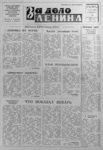 ОР ГАН С Е В Е Р Н О Г О РАЙКОМА КПСС И Р А ЙО ННО Г О СОВЕТА Н А Р О Д Н Ы Х Д Е ПУ Т А Т ОВ Н О В О С И Б И Р С К О Й ОБЛАСТИ Выходит по вторникам, четвергам и с у б б о т а м . Пролетарии всех стран, соединяйтесь! i f t c / m Газета основана 20 июля 1935 года № 20 (5932) СУББОТА 15 Ф Е В Р А Л Я 1986 года Цена 3 коп. —" Навстречу XXVII с ъ е з д у КПСС Суточные удои ЗИМОВКА Па время зимовки коллек тив Биазинской молочнотоварной фермы в з я л об яза тельство надоить от коровы в среднем по 14,5 центнера молока. Чтобы справиться с намеченным, работаем напряженно. Прошло уже четыре меся ца с начала зимовки. За это время лучшего р е з у л ь тата добилась Люба Ю д и на. Она получила от коровы бодее четырех ц е нтнеров молока. Лишь немногим отстали от нее Галина Л а в рова и Анна Иванова, которые надоили от коровы по 3,51 и 3 , 8 3 центнера молока. Минувший м есяц также показал , что впереди по- прежнему эти доярки . Добрыми помощниками у Л. Юдиной и А. Ивановой являют ся скотники А. Е. Сава егеев и А. Т. Крестьянов. Они добросовестно выполняют свои обязанности, соблюдают распорядок дня. НА ФЕРМЕ Напряженно работают скот ники, занятые откормом и телятн ицы , выращивающие молодняк. З а истекший период в социалистическом соревновании первенствуют В. М. Трофимов, Н. Маляре- вич, М. Голосков. Большим подспорьем в нашем труде будет сл ужить кормоцех, который недавно пущен в эксплуатацию. Здесь измельчают солому и смешивают с силосом. Смесь охотно поеда ется животными. Мы надеемся , что это повлияет на продуктивность стада и поможет сп равиться с заданием и планами зимовки. Часто бывают на ф ерме библиотекарь Любовь Мокроу сова и киномеханик Владимир Мокроусов. Они приносят животноводам книги, по называют кинофильмы. Директор Дома к ул ь туры Виктор Х ал яв а помогает оф о р млять красный уголок, обнов л ять в нем наглядную аги тацию. Н. НАЛИМОВА. Е Д И Н О Д У Ш Н А Я П О Д Д Е Р Ж К А Состоялось общее собрание коллектива ПМК «Мелиовод- строй». На нем шел р а зго вор, который не оставил равнодушным никого: остановить гонку вооружений, ликвидировать ядерное , химическое и другие виды оружия. Но пока же нужно крепить обороноспособность страны. Вот и принял коллектив решение: ударным трудом ответить на заботу Коммунистической партии. Советского правительства о сохранении мира. В поддержку мирных пни циатив нашего государств а выступила инструктор пере довых методов труда Р. М Лямц ’ева — мать троих д е тей. В заключение речи она ск а за ла , что пе редаст в Фонд мира свою двухдневную зарпла ту . Этот патриотический порыв был в с т р е чен ' всеобщим одобрением. И тогда было' решено, что все р а б о ч и е , . механизаторы, инженерно - технические р а ботники, руководители п ер ечислят тоже в Фонд мира свою двухдневную зарпла ту . Сейчас сбор средств подходит к концу, и общая сумма уже составила почти ты сячу рублей. П. ПЕТРОВ. Внесём достойный вклад Сегодня, в день Всесоюзного коммунистического субботника, все труженики кол хо за «Наша Родина» , как один, зан яты на своих рабочих местах. Прошедшая накануне встреча с е к р е т а р я партийной о р г а низации Н. А. Иванова с животноводами фермы пока зал а с каким воодушевлением и энтузиазмом будут трудиться они в >.день субботника. Выполнив свои непосред ственные обязанности , те лятницы, доярки и скот- пики зай м у т с я санитарной обработкой помещений. Про дукцяи животноводства — мяса