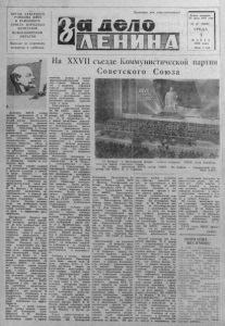 О Р Г А Н С Е В Е Р Н О Г О Р А Й К О М А К П С С И Р А Й О Н Н О Г О С О В Е Т А Н А Р О Д Н Ы Х Д Е П У Т А Т О В Н О В О С И Б И Р С К О Й О Б Л А С Т И Выходит по вторникам, четвергам и субботам. Пролетарии всех стран , соединяйтесь! «Я Газета основана 20 июля 1935 года № 27 ( 5 9 3 9 ) С Р Е Д А 5 М А Р Т А 1986 г о д а Цена 3 кон. Д елегаты X X V I I съезда партии продолжали 27 и 28 февраля обсуждать П о л и ти ческий доклад Центрального Комитета съезд у, проекты новой редакции Программы КПСС , изменений в Уставе партии, отчет Центральной ревизионной комиссии КПСС . В выступлениях намечаются пути ускорения социально экономического развития советского общества, см ело и принципиально вскрываются недостатки, тормозящие наше движение вперед, подчеркивается решимость прет корить в жизнь грандиозную программу коммунистического созидания, борьбы за сохранение мира. В четкой, хорошо отлажен ной организации производства, в высокой к у л ь т у р е и качестве труда каждого — наш главный резерв, сказала наладчица производственного объединения «Перм ский машиностроительный завод име- шТ Ф . Э. Д зержинского » Н. М. Ершова. В борьбе за укрепление дисциплины, организованности и порядка пар тин может рассчитывать на твердую поддержку рабоче-1 го класса. Д ел е г а т подчеркнула, что необходимо активнее применять Закон о тр у товых коллективах, повысить их р оль в управлении предприятиями. Центральный Комитет партии требует, чтобы партийный контроль распространялся на всех должностных л и ц на всех коммунистов и сам показывал пример такого контроля, сказал в своем выступлении председатель К о митета партийного контроля при ЦК К П С С М. С. Соло- менцев. Контроль, как изве стно, о существляет вся партия. В этом д е л е важно под пять р о л ь первичных партий ных организаций. Если каж щая из них будет со всей полнотой использовать полно мочия, предоставленные ей Уставом К П С С , то партийный контроль станет иодлин но массовым, в с ео бъ ем лю щие и б о лее действенным. Оратор выразил уверенность, что делегаты съезда поддержат внесенное в новую р е дакцию Программы К П С С п о л уч ен и е о том, что ни од- партийная организация, пи один работник не могут сксацаться вне контроля. В выступлении отмечалась и не с в о д и м о с т ь серьезной пеое- <е1фо?ки ведомственного конт р о л ь повышения его эффективности. Главное в своей д ея т е ль ности, заявил первый с екре тарь Ц К Компартии А з е р байджана К. М. Багиров, республиканская паотийиая организация видит в ‘ приумН а X X V I I ножении вклада в единый народнохозяйственный комплек с страны. Оратор рассказа л о .развитии нефтяной отрасли, резервах аграрного производства. Д е л е г а т п о д черкнул, что д л я успешной борьбы с негативными я в л е ниями необходимы активная жизненная позиция, единство слова и дела. Благотворное воздействие решений апрельского П л е н у ма Ц К К П С С зримо повсеместно, сказал первый сек ретарь Ц К Компартии Л и т вы П. П. Гришкявичус. И в нашей республике ук р е п л я ется дисциплина, усиливается требовательность, растет чувство гражданской ответ ственности и заинтересован ности трудящихся во всех делах. Благодаря этому за метно ускорились темпы экономического и социального развития. Д елегат поделился опытом социального переустройства села, что способствовало подъему аграрного производства. ^ Во лж ск ом у автозаводу, сообщил генеральный дир