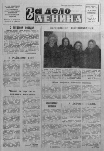 О Р Г АН С Е В Е Р Н О Г О Р А Й КОМ А КПСС И Р А Й О Н Н О Г О С О В Е Т А Н А Р О Д НЫ Х Д Е П У Т А Т О В Н О В О С И БИ Р СК О Й ОБЛАСТИ Выходит по вторникам, четвергам и с у б б о т а м . Пролетарии всех стран, соединяйтесь! ЧЯ МЧР1Ш9 Газета о сн ована 20 июля 1935 года № 38 (5 9 5 0 ) П Я Т Н И Ц А 28 М А Р Т А 1986 года Цена 3 коп. С ТРУДОВОЙ ПОБЕДОЙ Труженики колхоза имени Калинина досрочно выполнили квартальный план по продаже государству животноводческой продукции. Молока продано 8 6 5 центнеров. Все оно зачтено первым сортом. До окончания квартала будет сдано дополнительно еще 100 центнеров. Мяса поступило 380 центнеров. Этим самым хозяйство справилось с полугодовым заданием. Скот был сдан средним живым весом одной головы по 357 килограммов. Этот успех в первую очередь обеспечили доярки Е. Ф. Слободчнкова, П. А. Молчанова, М. М. Хана нуеиа М. Е. Рычкова, скотники А . А. Т о п о р т ц е в , В. А. Грншко, А. П. Алексеев, заведующий фермой И. А. Смык, ветфельдшер Л. А. Желдакова. Северный райком КПСС и исполком районного С о вета народных депутатов сердечно поздравляют коллектив колхоза имени Калинина с тр удовой победой и желают дальнейших успех ов по претворению н жизнь решений XXV II съезда КПСС. РАЙКОМ КПСС РАЙИСПОЛКОМ Б Р А Й К О М Е К П С С 25 марта 1986 года со с тоял о сь очередное заседание бюро районного ко митета партии, где были рассмотрены вопросы: «О роли партийных организа ций, советских и хозяйст венных органов по претво рению в жизнь реформы общеобразовательной и про фессиональной школы,», « О работе партийных о р ганизаций колхоза «П уть к коммунизму» и межхозяйственного лесхоза по "выпол иен 1 1 ю постановления ЦК КПСС «О мерах по преодолению пьянства и алкоголизма». Также рассмотрен вопр о с «О проведении комму нистического субботника». В принятом постановлеЧтобы не прилавки Затяжная весна и дожд ливое лето прошлого г о да преподали всем нам хо роший урок , з которого следует уяснить, что к такому периоду года надо быть готовыми. Нам. работникам кооперативной торговли, необходимо в первую очередь заботиться о своевременном завозе товаров, чтобы в тор говле не ощущались перебои в продуктах питания, сезонной обуви, одеж Де. Сегодня на складах Н о вотроицкого торгового пред приятия создан определен ный запас товаров п о в се дневного спроса. Завезе ны макаронные изделия, крупы, жиры, сахар, соль, су хофрукты , мука второго сорта. промышленные т о вары. необходимые нашим сельским жителям, резиновая обувь, телогрейки, спецодежда. Большая заслуга в этом шофера нашего торгового предприятия Н. В. Бугле- ева. Правление колхоза «З а в еты Ильича» помогло нам приобрести автомаши ну ГАЗ -5 2 , а при необходимости помогает своим автотранспортом. Постоянно работая с по- покупателями, продавцы х орош о изучили сп рос и безошибочно могут рассчи тать расход продуктов на месяц, квартал, даже на нин по этому вопросу го корится: «Поддерживая инициативу москвичей о проведении коммунистпчес кого субботника. посвящен кого 116-й годовщине со дня рождения В. И. Лепи ка, провести субботник в районе 19 апреля 1986 го да. Для проведения cv6- ботиика создать штаб. Па пальником штаба утвердить А. В. Федулова председателя Р А П О » . Партийным организациям рекомендовано создать штабы на местах, тазвер путь массово - политическую работу по достойной встрече 116-й годовщины со дня рождения В. И. Ленина. пустовали магазинов г