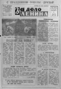 |gZZZZZZZZZ2Z&22a&^^ с З А Д Е Л О Л Е Н И Н А » № 56 ( 5 9 6 8 ) ^ 9 мая 1986 года Р а с с к а зы о коммунистах + О О В районном Доме культуры состоялся вечер встречи коммунистов трех поколений: сороковых, шестидес я тых и восьмидесятых годов. Коммунисты сороковых годов. Вся их жи зн ь явл яе т с я примером трудового и чело веческого подвига. Ветераны партии. Это в е тер аны войны и труда. Пь р ежито и сделано столько, что если написать все о к аждом . едва л и вместится в объемный том. Сегодня наш р а с с к а з о трех ветеранах. ныи, повседневно занимается над повышением своего теоре тического уровня. Колхоз под его руководством экономически окреп, денежные доходы выросли до миллиона рублей. Значитель но улучшилась трудовая дис циплина колхозников. Построг на теплица и создано хорошее парниковое хозяйство, что позволяет выращивать свежие овощи. Овощеводство приносит колхозу ежегодный доход до 2 0 0 —2 5 0 тысяч рублей. Хорошо идет с т рои тельство общественных постро ек. Организован откорм сви РАДОСТИ И ПЕЧАЛИ Много л е т Ефросинья Иг натьевна Павлова разносила телеграммы. Многие и з моих сверстников и не подозрева ли, что эта, всегда внимательная . скромная женщина с прекрасными глазами, та кая худенькая и хрупкая — в годы войны была шофером. На «полуторке», ло манной - переломанной, вози В День Победы был очередной рейс. Возвращались с напарницей. Остановились в Потюканово, а навстречу бе жит председатель сельского Совета и кричит: «Девчонки, победа! Мы победили!». Флаг нам сделал, прикрепил на радиатор машины. Так и приехали с ним в Северное. — С тех пор, — вспоминает женщина, — две р адости у меня в жизни. — Первая — когда в партию приняли, вторая — Победа. Страшное горе — война, пг чаль — уход' на пенсию. л счастье мое — дочери, да добрые люди. О о ВЕТЕРАН Насыщенной, плодотворной была жизнь Петра Кузьмича Блохи на. Он ск а за л при встрече: «Прожито 60 лет, а к аж е тс я все 120». Петр Кузьмич — член нар тии с 1 943 года. Уходя на задан ие , он написал з а я в л е ние «В случае гибели прошу считать меня коммунистом». В то вр ем я ему шел 21 год. А до этого — учеба в школе, а на летних канику л ах — в колхозе. Делал все, что поручали: возил снопы, метал- сено, отгружал хлеб. — Работали тогда сутками, — вспоминает П. К. Блохин. — Отдыхали лошади, отдыхали люди. Прилеж ность, исполнительность отличали людей. «Не буду» - таких слов никто не произносил. Годы войны. Все они памятны. Окончил Б елоцеркоь ное военно - пехотное учи лищ е . Был командиром о т дел ьного пулеметного взвода, затем роты. Три р а за был р анен. Н агражден орденом Красн ой Зве зды . После треть его тяжелого ран ения госпиталь, а потом демобилизац и я . В ернулся домой 1 ян в аря 1945 года на костылях . А через пять дней вышел на работу. Р аб о т ал секретарем Северного райисполкома, райинс- лектором ЦСУ, заведующим отделом сельского хозяйства райисполкома, директором райпромкомбината . В 1955 году, в числе трид ца типятитысячников, был н а пра влен председателем колхо за « З а р я коммунизма», н ы не имени XXXII съ е з д а КПСС. Пам ятен этот год Пет ру Кузьмичу. Б ы л снежный, холодный апрель. Б е ск о р м и ца в хозяйстве грозила паде жом. Собрали общее собрание и решили добывать на тюлях солому. Лыжники на ходили снежные бугорки, трактором прокладыв али путь: лошади по такому снегу не шли. Все сдел али и скот сохранили. Вот строки х арактеристики тех 