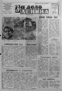 Пролетарии всех стран, соединяйтесь! Г а з е т а о сн о в ан а 20 июля 1935 го д а № 61 (5973) В Т О Р Н И К 20 М А Я 1986 г о д а Ц е н а 3 коп. ОР ГАН С Е В Е Р Н О Г О РАЙКОМА КПСС И РАЙОННОГО СОВЕТА НА РО Д НЫХ ДЕ ПУТАТ ОВ НОВ О СИ Б ИР СК О Й ОБЛАСТИ Выходит по вторникам, четвергам и с у б б о т ам . Плакат художника Л. Тарасовой. '■ i F Г И здательство «Плакат». СТРОИТЕЛЬНЫЙ СЕЗОН НАЧАТ Начинается строительный сезон, и бригады, которые производят в колхозах р е монт, • строят жилье, сейчас полным ходом ведут подготовку материалов, намечают фронт работы на ближайшие месяцы. Многое предстоит сделать и в к о л хозе «Новая жизнь», где в обеих бригадах не обходимо отремонтиров ать капитал ь но по одному коровнику. Требуют рабочих рук и помещения, в которых содержится молодняк. В мае гур ты выводят на пастбища, поэтому в короткий срок нужно еще р а з проверить, какие м атериалы - и с к о л ь ко их потребуется д л я р е монта ферм. Объем работ большой, поэтому нужно в ближайшее вр ем я очистить все помещения, чтобы не было з ад ерж ки . К началу строительного сезона в хозяйстве заготовлено 1.000 кубометров деловой древесины. Она п ер ер аб атывае тс я на пиломатериалы , другие необходимые детали' строительства. Большое внимание в колхозе обращ ается на строительство жилья , ведь наличие квартир во многом ре- шйет проблему закреплепил кадров на селе. Нынче мы планируем начать строительство двух двухквартирных домов, предназначенных для членов хозяйства. Есть и сдаточный одноквартирный дом. В нем пос елится семья передовой доярки Нины Пав ловны Гордеевой. Хозяйство не имее т пока возможности организовать собственную строительную бригаду, . поэтому обходимся силами наемных бригад. Нын че мы должны приступить к ст роительству нефтебаз;.г и склада , которые крайне необходимы в колхозе. Л. ДРЕБЕНЦОВА, 7 1 i прораб. СРЕДИ ЛУЧШИХ Колхоз «Борьба за мир» бани мает третье место по надоям молока от коровы с н а ч а л а года. Животноводы хо зяйства надоили з а четыре м есяца в среднем по 5S2 кп лограмма м о л о к а о т коровы. Это средний п о к а зател ь, но среди д о я р о к е с т ь и такие, которые получили более высокие р е з у л ь т а ты . Одна и з передовых мастеров машинного доения Н. Ф. Митрофанова, (Возглавляющая социалистическое', соревнование т р уж ен и к о в ферм х о зяйства. Она н а д о и л а от к о ровы в среднем по 7 69 кило граммов молока.;’ Много лет р а б о т а е т в ж и вотноводстве (В. Я . Ломова, которая с л у ж и т п римером доб росовестного о т н ош ен и я к делу. Ее п о к а з а т е л ь также хо роший — 7 5 8 килограммов. Среди тех, кого- ж колхозе по праву на зывают л у чш и м и до ярками Т. М. С е м е н о в а , Е. Я. Сафронова. / Ф Л И П О В А . ПОСВЯЩЕНИЕ В Х Л Е Б О Р О Б Ы Ш кольная реформа обраша ет особое внимание на трудовое воспитание реб ;т, на приложение их сил з большом, «взрослом», деле. Р. этом отношении главную роль играют ученические производственные бригады. Нынче т ак ая бригада была создана из учащихся - д евятикл ассн и ков Биазинской средней шке лы. Восемь ребят буду т вы ращ ива ть овес на 5 0 гектарах пашни. Колхоз «Путь к коммунизму» обеспечил бригаду необходимыми прицепными .орудиями, трактором , комбайном. Все работы, от вспашки до уборки урожая , учащиеся проведут самостоя тельно, под руководством учителя А лександра В л ади м ирови ча Швеца. Перед выходом k в поле и школе была проведена торжес твенна я линейка , 