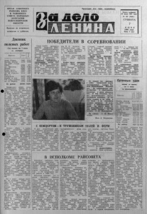 ОРГАН С ЕВ Е РН ОГ О РАЙКОМА КПСС И Р АЙОННОГО СОВЕТА НАРОДНЫХ ДЕПУТАТОВ Н ОВ ОС ИБ ИР СК ОЙ ОБЛАСТИ Выходит по вторникам, четвергам и с убботам. Пролетарии всех стран, соединяйтесь! Газета основана 20 июля 1935 г ода № 6 9 (5981 ) СУББОТА 7 и ю н я 1986 года Ц ен а 3 коп. Дневник полевых работ Сев яровых на 5 июня (в гектарах) Колхозы • План f iC сС “СГ 1900 1316 317 9 1839 2 384 877 2224 1105 2 0 6 8 8 57 1839 3 69 2541 627 204 4 627 2072 1875 2 1 6 0 1550 1319 110 9 I 1778 1103 Наша Родина Память Ленина им. XXII съ езд а КПСС им. Калинина Восход Новая жизнь З а в е т ы ' Ильича им. М. Горького Путь к коммунизму Борьба за мир VII с ъ е з д Советов им. К. Маркса По району 2 5 5 0 8 1 3 253 Начавшиеся дожди вновь приостановили работы на по лях. Поэтому за прошедшие сутки в хозяйствах почти не было прибавки весновспаш ки. По району . вспахано все го лишь 36 гектаров, хотя пахотные агре гаты выезжали на поля почти во всех кол хозах, кроме «Заветов Иль ича» и имени XXII съезда КПСС. Здесь показатели остались прежними. На 5 июня в колхозе «Наша Родина» вспахано 1074 гектара, «Па мять Ленина» — 778, имени XXII съ езд а КПСС — 814 , имени Калинина — 69 1 , «Восход» — 539 , «Но ■вая жизнь» — 467 , « З а в е ты Ильича» — 4 3 0 , « Б о р ь ба за мир» — 9 8 6 , «VII съезд Советов» — 4 1 2 , име ни К. Маркса — 9ЭЗ гектара. Колхоз «Путь к коммунизму» полностью сп равился с планом весновспашки. J flecb поднято 1292 гектара ашни. А вот механизаторы колхоза имени М. Горького имеют низкий показатель ра боты пахотных агрегатов — всего 3 99 гектаров. Отчасти это о бъясн яется переувлаж- нешюстью почвы. В среднем по району весновспашка про изведена на 8 8 7 5 гектарах, что составляет 5 4 ,6 процента к плану. 1 Механизаторы поставили задачу: посеять яровые куль туры на 2 5 5 0 9 гектарах. В условиях непогоды сделать это нелегко. И все-таки два хозяйства, «Путь к коммунизму» и «VII с ъ е з д Советов» смогли посеять яровые зерновые. Сейчас здесь р а з мещают силосные. Это стало возможным благодаря хорошей организации труда, р а циональному использованию техники и людских р е су р сов. На 5 июня яровые посея ны на площади 13253 гектара (51 ,9 процента). Как видно из сводки, сеять предстоит еще почти половину, поэтому у механизаторов на счету должен быть каждый погожий час. Предпосевное протравливание семян ведут пять хозяй ств района: «Память Ленина», «Восход», « Зав еты Ильича», имени М. Горького, «Путь к коммунизму». Одновременно с севом в восьми колхозах в почву вносятся минеральные удобрения. Это послужит за- догем хорошего урож ая нынешнего года. ПОБЕДИТЕЛИ В СОРЕВНОВАНИИ Совет РАПО, президиум райкома профсоюза работников агропромышленного комплекса рассмотрели ито ги социалистического соревнования колхозов, звень ев на весенне - полевых работах по состоянию на 2 июня и постановили: Признать победителем в соревновании i колхоз «VII съ езд Советов» (председа тель Ф. Е. Дребенцов, сек р етарь парторганизации В. С. Довбиш, он же пред седатель профкома, предсе датель , сельского Совета И. Ф. Косс, главный агро ном П. В. Коржов), выполнивший план сев а яро вых на 82,1 процента, в т. ч. яровых зерновых — на 100 процентов. В честь коллектива кол хоза «VII съ езд Советов» поднят ф л а г Трудовой Славы. Второе место присудить колхозу «Путь к коммунизму» (председател ь Н. А. Ипатьев, секретарь парткома Н. Ф. Останин, председател ь сельского Со вета Г. Н. Акатьев, председател ь профкома Л. Ф. Сидоров, главный агроном М. Д. Ковшар), выполнив шему пла