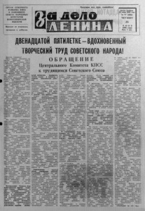 2 «ЗА Д Е Л О Л Е Н И Н А » № 77 ( 5 9 8 9 ) + ДВЕНАДЦАТОЙ ПЯТИЛЕТКЕ -ВДОХНОВ ТВОРЧЕСКИЙ ТРУД СОВЕТСКОГО 26 июня 1986 года М (Оконч. Нач. на 1-й стр.). Соревнование сильно г л а с ностью, объективным с р а в нением итогов хозяйотбова- ния, оперативным обобщены ем и внедрением передового опыта, товарищеским сотруд ничеством и взаимопомощью. Конечные р езул ь таты , а не промежуточные п о к а з а т е л и— вот критерий настоящего со ревнования. Стране, государству нужны реальные , введенные в срок заводы и фа б рики, жилые дома и школы, магазины и кинотеатры, н а дежно . работающий тоанс- порт, собранный и сохранен н)ый урожай , добротные то вары широкого потребления. Очень важно, чтобы в основе всей системы мораль ного и материального поощрения были практические рс зул ь та ты , достигнутые в соревновании, прйнцип социальной справедливости. Недопустимо, чтобы среди победителей соревнования о к а зы в ал с я тот, кто, располагая большими резерв ами и луч шими условиями, создавал лишь видимость активной работы, а по существу топтался на месте. При подве дении итогов соревнования в поле зрения должны находиться все его участники. Именно социалистическое соревнование должно стан овиться противоядием против р азличных проявлений безнравственности, очковтиратель ства, ведомственности, мест ничестна. Товарищи) Центральный’ Комитет КПСС рассчи тыв ает, что рабочий класс, труО Б Р А Щ Е Н И Е Центрального Комитета KI ICC к трудящимся Советского Союза женики агропромышленного комплекса, инженерно - технические кадры, интеллигенция, все участники соревнования з а выполнение и перевыполнение заданий двенадцатой пятилетки проявят высокую творческую активность, наполндт работу по ускорению социально - э к о номического развития страны конкретным и весомым содержанием. Партия уверена, что в авангарде всенародного социалистического соревнования, как всегда, будет героический / рабочий класс. Его высокая сознательность и организованность, трудовая и политическая активность, нетерпимость к чуждым советскому образу жизни я в лениям — надежная гарантия нашего движения впе ред. Крутой рост производи тел ьтоати труда , продукция мирового класса, ее высочай шее качество и надежность, снижение |ма|териало,эмкостн и энергоемкости изделий, пол Ный хозрасчет — вот сегодняшние ориентиры рабочих коллективов. Труженики села, всего агропромышленного комплекса в новых условиях хозяйствования призваны умножить усилия по выполнению Продовольственной программы. Девиз их соревнования полное обеспечение страны в короткий срок продоволь ствием. Чем лучше будут работать колхозы и совхозы, подсобные хозяйства предприятий, все звенья агропромышленного комплекса, тем богаче будут прилавки мага зинов и рынков, тем больше молока, мяса, овощей и других продуктов получит население. Страна ждет от ученых, конструкторов, инженеров новых открытий и изобретений, прогрессивных проект иых решений и конструкторе ких разработок, позволяющих кардинально повышать " ’'однтелыгость' труда, улучшать качество продукции, экономить ресурсы. Сов местными усилиями работников науки и производства ускорим внедрение в п р а к тику передовых достижений научно - технической мысли! Задача всех работников, связанных с обслуживанием населения, — полнее и при высоком качестве удовлет ворять потребности люд