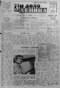 ОРГАН С Е В Е Р Н О Г О РАЙКОМА КПСС И Р А ЙО ННО ГО СОВЕТА Н А РО Д Н Ы Х Д Е П У Т А Т О В Н О В О С И Б И Р С К О Й ОБЛАСТИ Выходит по вторникам, четвергам и с у б б о т а м . всех стран, соединяйтесь! Газета основана 20 июля 1935 года № 81 (5 9 9 3 ) В Т О Р Н И К 8 и ю л я 1986 г о д а Цена 3 хоп. О КОРМАХ, КАК О ХЛЕБЕ Суточные удои Дневник заготовки кормов В эту пору на селе редко увидишь механизатора. Все они находятся на лугах, где идет напряженная работа по выполнению планов# и з а д а ний * заготовки кормов для будущей зимовки общественного Цкота. Девизом труда полеводов должны стать слова: «Ни минуты покоя». И в большинстве хозяйств т а кое отношение к делу стало нормой д л я всех м ех ан изаторов. Одними из первых в ы в е ли а гр е гаты на сенокос полеводы колхоза «Путь к коммунизму». Здесь провели немалую подготовительную) работу по организации труда звеньев. Если в прошлом году на третье июля было скошено всего 85 гектаров трав, то нынче — 2 2 0 . З а скирдов ано 2 2 0 0 центнеров сена. Это хорошее начало, которое еще раз доказывает, что работать люди умею г отлично. С большой 'ответственностью т рудятся механизатор ы колхоза « Б о р ьб а за мир». Обширных угодий в хозяйстве нет, поэтому они ф 'ремятц я использоватЬ все имеющиеся площади, не о ст а в л я я ни гектара . З а несколько дней полеводы вы косили 150 гектаров трав. В 1 985 году было выкошено 8 0 гектаров. Заскирдова но 7 6 0 центнеров сена. Неплохо идет косовица трав в колхозе имени К ар ла Маркса, где они свалены на площади 140 гектаров. В прошлом году на эту дату в луга еще не вы езжали. В скирды уложено 150 центнеров сена. В к о л хо зе «VII с ъ е з д Советов» травы скошены на 130 г ек тарах , сена сметано 122 цент нера. И все - таки при всей напряженности текущей кам пании работа идет медленнее, чем ее можно организовать; при имеющейся технике. Необходимо учесть урок минув шего года, когда кормов не хватало. В колхозе имени Калинина скошено всего 50 гектаров трав, сметанного сена — нет. В то ж е время колхоз «Восход», например, смог выкосить площадь в 120 гектаров и заскирдовать 2 0 0 центнеров сена. Всего по району выкошена площадь 1081 гектар, в прошлом году на эту дату было 4 8 3 гектара . З а с к и р д о вано сена 3 4 3 2 центнера, в минувшем году было — 255. Медленно н а лаж ив ае тс я работа агрегатов по приготов лению витаминно - травяной муки. В к о л хо зах имени Ка линина, «Восход». «Новая ж изнь» , « З а в е т ы Ильича», имени М, Горького, имени К. Маркса они до сих пор бездействуют, а это потери не только времени, но и в первую оч ередь ценного корма. В колхозе «Н аша Родина» заготовлен о шесть тонн гра пул, « П а м я т ь Ленина» 4 9 , имени XXII съ е зд а КПСС — 70 , «Путь к коммунизму» — 48 «VII съезд Советов» — 22 тонны. В исполкоме райсовета Исполком Северного районного Со вета народных депутатов объя вил удар ный месячник по з аг отовке кормов с 5 июля по 5 августа. Утверждено з а да ние по заготовке кормов как для колхозов, т а к и для предприятий, организ аций, у ч р е жд е ний. Рекомендовано правлениям колхозов вести косовицу трав главным обра зом в ночные и утренние часы, что поз волит лучше сохранить содержание ка- торина в сене. Исполкомам сельских Советов ну жно разъяснить важнос ть этой кампании среди населения, орг аниз овать их на субботники, довести з ада ние до к а ж дой организ ации, находящейся на т е р ритории сельсовета. Контроль за исполнение данного решения во