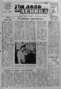 Пролетарии всех стран, соед ОРГАН С Е ВЕ РН О ГО РАЙКОМА КПСС И РАЙОННОГО СОВЕТА Н А РО ДНЫ Х ДЕПУТАТОВ Н О В О СИ Б И РС КО Й ОБЛАСТИ Выходит по вторникам, четвергам и с у б б о т ам . О КО РМ АХ , КАК О Х Л Е Б Е -------- РЕКОРДНАЯ ВЫРАБОТКА Дневник заготовки кормов Природа из года в год преподносит сюрпризы земле дельцам. Вот и снова начал ся сенокос, который решает сегодня важнейшую проблему: обеспечение животноводства кормами. И снова дело стопорится из - з а дождей, не дает возможности наращивать темпы. Однако там , где была проведена большая организационная работа и на луга выехали в ранние сроки, дело идет слаженно. Пер вое место здесь, несомненно, принадлежит полеводам кол хоза «Путь к коммунизму», где звен ья выполняют конкретные з ад ан ия , следуя з а ранее разработанным п л а ном. А в ре зул ь т а те колхоз на 17 июля сп равился с планом заготовки сена на 4 4 , 8 процента. З а прошедшую неделю з н а чительно увеличили производительность труда механизаторы колхоза «Восход». Они выполнили план по скирдованию сена на 36 процентов. Почти такой же пока затель (35 процентов) в колхозе «Борьба з а мир». В колхозе «Н аша Родина» на заготовке сена работают опытные механизаторы. Они ведут скирдование с минимальным разрывом после скашивания трав. И з а последние дни сметали 4 00 тонн сена, .что составляет 2 8 , 6 процента. В колхозе «Память Ленина» сена з а скирдовано 11 ,9 процента к плану, имени XXII съезда КПСС — 18,8 , имени Калинина — 18,9, «Новая жизнь» •— 4,5, «З а в е ты Иль ича» — 12,7, имени М. Горь кого — 14,7, «VII съ е з д Со ветов» — 19,0. имени К ар ла Маркса — 15 процентов. Уже к 17 июля колхоз имени XXII съ е з д а КПСС рапортов ал о выполнении пла на производства витаминнотравяной муки. В колхозе «Память Ленина» на АВМ выработано гранул 8 6 , 7 процента к плану, «Путь к ком мунизму» — 62 ,7 , «VII съ е зд Советов» — 4 0 ,0 , име ни М. Горького — - 2 6 ,7 процента. В остальных хозяйст вах показатели ниже. Сенаж з акл адывае т колхоз «З а в е ты Ильича», где сочного корма заготовлено 5 2 3 тонны. Рекордной выработки до билось 15 июля звено Ива на Филипповича Харитонова из Веселовской бригады колхоза «Путь к ксммунизму»^ уложив в скирды 1 500 центнеров се на. Такого р е з у л ь т а та до сих пор не добивался никто з а нынешнюю кам п а нию заготовки кормов. Иван Филиппович молод, комсомолец : И в звене его немало молодых моханизторов. Это в какой- то мере способствтет тому, что все работают с зад о ром, слаженно. И хотя каждый ведет счет сметан ным центнерам, как конеч ному р езул ьтату своей работы, все же отмечают отличную работу косцов Петра Никитина, Николая Ситникова, комсомольца, Николая Пантелеева. Их зад ач а — обеспечить остальные участки площадя ми скошенной травы. И с нею они сп равляю тся успешно, зачастую п е р е вы полняя норму. Впрочем, также хорошо работают и гребелыцики, и копнильщики, и стогометчики. Сенокос — пора особая. длится он недолго, а сделать надо многое. Вот, например, Веселовской бригаде план заготовки сена — 1 0 3 0 0 центнеров, а механизаторы зв ена Харитонова уже заскир довали 53 0 0 . Половина плана есть, будет выполнен и весь план: травы много, нынче многолетники дали неплохой урожай. К выполнению задания, даже его перевыполнению, стремятс я все. Этому способствует то, что в условиях социалистического со ревнования предусмотрены меры морального и ма териального поощрения. З а каждую заготов