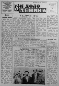 ОРГАН С ЕВ ЕР НОГО РАЙКОМА КПСС И РАЙОННОГО СОВЕТА НАРОДНЫХ ДЕПУТАТОВ Н О В О С И Б И Р С К О Й ОБЛАСТИ Выходит по вторникам, четвергам и субботам. Пролетарии всех стран, соединяйтесь! т а д м aiiiii’M а п.лждиа Газета основана 20 июля 1935 года № 8 9 (6 0 0 1 ) СУББОТА 26 и ю л я 1986 год а Цена 3 коп. В РАЙКОМЕ КПСС Дневник заготовки кормов В районе идет месячник по заготовке кормов д л я обт щественного животноводства. На этот период каждому хозяйству были доведены конк ретные задания, ко торые дол жны служить ориентиром ударной работы механизированных звеньев. Правильно поняли задачу механизаторы колхоза «Путь к коммунизму». З а две прошедшие д екады они обязаны были заготовить тысячу тонн сена. Полеводы хозяй ства сумели не только вы полнить задание, но и перекры ть его , з а ски рдов а в за эти дни 1 190 тонн сена. Это — более половины плана. Колхоз «Восход» по з а д а нию двух декадников н амерен был сметать 8 0 0 тонн сена. И в хозяйстве есть прибавка . Но в начал е первой д екады было некоторое отставание, поэтому задание о ся зал о сь недовыполненным - ^ з а с к и р д о в а н о 767 тонн сеРассмотрев итоги работы предприятий, организаций и колхозов района з а первое полугодие 1 986 года, бюро районного комитета партии отметило, что план р е а л и з а ции промышленной п родукции з а этот период предприятиями района выполнен на 100,1 процента. Ро с т к соответствующему периоду прошлого года составил 3 1 0 ты сяч рублей . Объем промышленного производства возрос на 1.8 процента, производительность труда о пер еж ает рост заработной платы. На 105 ,7 процента выполнен план чистого товарооборота Северным райпо. РПУ бытового обслуживания план бытовых услуг выполнен на 1 0 3 ,4 процента. Со своими планами справились районный у з ел связи и «Североремтех- предснабтранс». Колхозами района выполнен план государственных закупок скота. Но ускорение, к ак отмечалось на заседании Политбюро ЦК КПСС 11 июля, достигнуто не везде. Самоуспокоенность и благодушие наблюдаются во многих партийных организациях, среди хозяйственных руководителей, что серьезно с к а з ы вае тс я на состоянии дел. С низкими пок а за т ел ям и з ак о н чили полугодие маслозавод, кирпичный завод. Комм уналь ное хозяйство план по в ал о вому доходу выполнило на 75 процентов. Хлебокомбинат, при выполнении плана в целом, п л ан ы по вы р або т ке колбасы и б е зал ко г о л ь ных напитков выполнил на 8 5 , 8 и 6 9 , 8 процента соответственно. На всех п р е дп ри я тиях не достигнуто с е р ь е з ного перелома в повышении качества выпускаемой продукции. Не выполнено полугодовое задание по заготовке молока. Из 12 колхозов с п л а ном сп равились два хо зяй ства — «П ам ят ь Ленина» и имени Калинина. Безответственно отнеслись к закуп у молока от индивидуального сектора Новотроицкий, Федоровский, Остяцкий сельские Советы. План з а к у па молока у населения по району выполнен всего на 18,6 процента. Закуп л ено 46 5 центнеров из плана 2500 . Серьезные претензии к состоянию дел в строительстве: не выполнен план"вводя, в дей ствие основных фондов, не пол ностью использованы выделенные лимиты капитальных вло жений. Пра влением райпо не приняты меры по вы полнению плана розничного товарооборота. Недовыполнение составило 4 9 6 тыс. рублей. В принятом постановлении бюро райкома партии о б я з а ло партийные, профсоюзные организации, исполкомы с е л ь ских Советов, хозяйст