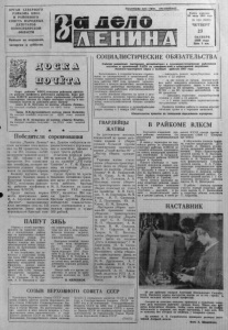 2 'llllllllIlIllllllll lll lll lll lll lll lllll lll iii iii liMiii ill iiMiii imii « З А Д Е Л О Л Е Н И Н А » ii iii iii iii i i i i i i i i i i i i i i i i i i i i i i i i i i i i i i i i n № 124 ( 6 0 3 6 ) ♦ 23 о к т я б р я 1986 г о д а Доверенное лицо общества Народный учитель — это доверен ное лицо общества в воспитании подрастающего поколения. От того, какого ч ел о в ек а выпустит школа в большую жизн ь , зависит будущ ее стр аны . И, конечно, особая н а д еж д а в о зл агае тс я на у ч и т ел я сейчас, когда в ст р ан е идет перестройка, когд а о сущ е с т вл я е т с я р еф о р ма школы. И у ж если вести р еч ь о перестройке, то наиболее целостную программу в этом направлении имеют работники народного образования нашего района. Они практически с тали инициаторами нового творческого подхода к делу. Вот их рубежи. Они, конечно, рчень напряжённы е , но вполне р еал ьны е , выполнимые. Первое, что решили уч и т ел я , .— повысить к а ч е ство урок а , сд ел ать так, чтобы каждый ученик рабо т ал с максимальной отдачей, с интересом и з у ч ал предмет, чтобы ак тив нее вводились новые формы и методы ведени я урока . Посредством урок а учи т ел ь передает воспитанникам свое мировоззрение , свою гр аж д ан скую позицию. И что особенно заметно в у сл ови ях сельской жизни, когда уч и т ел ь на уроке говорит одно, а сам в жизни по ступает по-другому. Несоо тветствие ск азанно г о с д ей ствительностью порождает целую цепь н еж ел ател ьны х последствий. Отсюда т р у д ности работы. Чаще всего профессию в р а ч а и у ч и т е л я мы относим к самым сложным. И вот наши у ч ител я единодушно проголосовали з а то, что семь десят процентов представителей учительского коллектива объя вя т свои уроки открытыми. Образно говоря, это знак к ачества, присвоенный уроку. Это очень сл ож н а я задача , з д есь впереди должны быть уч ителя-коммунисты, администрация школ. В торая з ад ач а , которую решили осуществить наши педагоги, это ввести с 1 с ен т яб ря 1987 года в школах ученическое самоуправление. И здесь масса вопросов. Как избавиться от педагогической авторитарности?. Как приучить ребят самостоятельно принимать решения, жить своей, ребячьей республикой. Райком комсомола с о в м е стно- с редакцией газеты « З а дело Ленина» решили провести заочное комсомольско- пионерское собрание с пов есткой : «Я — хозяин в школ е» . Думаем, должен получиться хороший откровенный разговор. Решено сделать в соответствии с решениями XXVII с ъ е з д а КПСС оформление в школах. По этому поводу р е шением совета районо и рай" кома профсоюза работников просвещения объявл ен смотр- конкурс. В школах района пятница объявл ен а единым днем т ру да, а четверг — единым днем проведения классных часов. Мы видим, что какое-то улучшение в организации трудового обучения произошло. Но вопрос этот необходимо постоянно д ерж а т ь в поле зр ен и я и совершен ство вать. В декабре он вновь будет заслушан на бюро райкома партии. Многие коллективы учителей задумались над введением новых форм в учебной и воспитательной работе, над проведением педагогических экспериментов. И надо с к а за т ь , эти задачи им по силам . У нас есть хорошие кол лективы. Это Верх-Краснояр ск а я школа (директор Н .А. Смык), Чувашинская восьмилетняя (директор 3 . Н. Голубева) . Недавно Зи наиде Ни колаевн е Голубевой присвоено звание «Отличник народ ного просвещения». Она хороший директор, коммунист, член бюро колхозной партийной организации, лучший пропаган