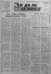 ОРГАН С Е ВЕ РН О Г О РАЙКОМ А КПСС И Р АЙО ННО ГО СОВЕТА Н А Р О Д Н Ы Х ДЕ П У ТА Т О В Н О В О С И Б И Р С К О Й ОБЛАСТИ Выходит по вторникам, четвергам и с у б б о т а м . _ ПР О Л Е Т А Р И И ВСЕХ СТРАН, С О Е Д И Н Я Й Т Е С Ь ! л е л о Газета основана $ 20 июля 1635 года t № 27 (6095) ! В Т О Р Н И К 3 ■ I МАРТА 1 987 г о д а . | Цена 3 коп г Н А XVIII СЪЕЗДЕ ПРОФСОЮЗОВ СССР МОСКВА. (ТАСС). 2 5 февраля XVIII с ъ е з д профессиональных союзов СССР продолжил работу. На утреннем заседании с ъ е з д а выступил Генеральный секретарь ЦК КПСС М. С. Горбачев. Его речь была выслушана с большим вниманием и неоднократно соп ровождалась продолжительными аплодисментами. Затем делегаты продолжили начатое накануне о б с у ж дение отчетных докладов ВЦСПС и Центральной ревизионной комиссии. Выступающие на с ъ е з д е обстоятельно и откровенно рассматривают широкий круг проблем , относящихся к перестройке, намечают пути всемерного улучшения д е я тельности советских профсою зов. В условиях последовательной демократизации общ ества их роль буд е т неуклонно повышаться, буд е т расти ответственность з а проведение в жизнь экономической и социальной политики, более сложными и многообразными станут культурно - воспитательные задачи. Как отметил в речи на с ъ е з д е Генеральный секретарь ЦК КПСС М. С. Горбачев, трудовой коллектив — центральная ячейка перестройки, и все в конечном счете зависит от того, какой з д е с ь б уд е т настрой, как по-новому развернется работа. Много внимания уделяется роли и месту профсоюзов в осуществлении экономических методов хозяйствования, в совершенствовании Ьрганиза- ции социалистического с о ревнования. Ораторы говорят о необходимости см елее отказываться от изживших себя форм трудового соперничества, подчеркивая, что соревнование — это важнейшая’ с ф е ра становления работника как подлинного хозяина на производстве. По мнению делегатов, профсою зам необходимо лучше использовать массовое техническое творчество трудящихся для ускорения научно-технического прогресса. З а прошлую пятилетку в народном хозяйстве было использовано 1 2 0 тысяч изобретений и около 2 0 миллионов * рационализаторских предложений. • Суммарный экономический эффект от их внедрения составил 3 6 миллиардов рублей. Но назывались на с ъ е з д е и друцие цифры, свидетельствующие о том, что огромный общественный научно- технический потенциал использует ся совершенно н е д о статочно. Каждый третий рабочий промышленности, половина строителей и две трети работников сельского хо зя й ст ва до сих пор заняты ручным, малоквалифицирован н ы м, подчас тяжелым физическим трудом. 'Курс на ускорение . развития нашего общества — это |не только преобразования в экономике, но и активная с о циальная политика, забота о человеке, защита его жизнен ных интересов. Такая мысль п ро звучала в выступлениях многих делегатов, подчеркивавших, что именно в социальной сф ер е наиболее широко и наглядно выявляется г у манистическая сущность с о циализма. Повышение благосостояния народа — программная цель партии, и внимание по всему комплексу этих вопросов — о д н о из важнейших, страте гических направлений д ея тельности профсоюзов, о тм е чали ораторы. Они называли множество точек приложения сил профсоюзов — от совершенствования организации оплаты труда и рационального использования общественных фондов потребления до 