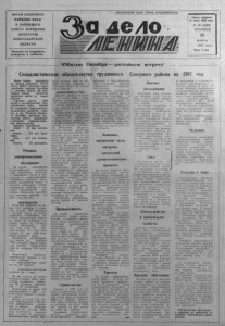 ОРГАН СЕ ВЕР НОГ О РАЙКОМА КПСС И Р АЙОННОГО СОВЕТА НАРОДНЫХ ДЕПУТАТОВ НОВОСИБ ИР СКОЙ ОБЛАСТИ ПРОЛЕТАРИИ ВСЕХ СТРАН, СОЕДИНЯЙТЕСЬ! д е л о Газета основана 20 июля Ю35 года № 3 0 ( 6 0 9 8 ) В Т ОР НИК 1 0 МАРТА 1987 года. Цена 3 коп Выходит по вторникам, четвергам и субботам. --- — ----------- --- — — -------------------------Ю бил ею Октября — д о с т о й н у ю в с т р е ч у ! ----------------------- Социалистические обязательства трудящихся Северного района на 1987 год Наша страна находится на крутом переломе. XXVII съ езд КПСС поставил перед советским народом большие и сложные задачи. Во всех сферах жизни общества предстоит выйти на новые рубежи. Стремясь внести свой вклад в осуществление стратегического курса партии на ускорение социально-экономического развития страны, в год 70-летия Великого Октября, трудовые коллективы района принимают следующие социалистические обязательства: Продать государству: зерна — 41 тыс. центнеров, молока — 123 тыс. центнеров, мяса — 15,7 тыс. центнеров, шерсти — 2 0 центнеров Районное агропромышленное объединение На основе дальнейшей интенсификации производства, повышения культуры и организации труда в з е м леделии и животноводстве, химизации, широкого внед- ■-ренйя достижений науки и техники, передового опыта, повышения качества и снижения себестоимости про дукции обеспечить выполнение плановых заданий по всем показателям. ЗЕМЛЕДЕЛИЕ Получить зерновых не м е нее 14 ,5 це нтнера и силосных к ул ь тур 180 центнеров с гектара , иметь на период стойлового содержания ж и вотных качественных кормов не менее 21 центнера к о р мовых единиц на условную голову. Заготовить 18,5 тыс. тонн сена, 67 тыс. тонн силоса, 17,1 тыс. тонн сенажа, 2,1 тыс. тонн ви таминно-травяной муки. Произвести о к у л ь т у р и в а ние земель на площади 1000 гектаров. Иметь семенные участки многолетних трав на площади 3 0 0 г е к т а ров. Подготовить сельскохозяйственную технику к полевым работам: — зерноуборочные машины до 30 апреля; — кормозаготовительны е машины до 1 мая . З а две недели -до начала весенне-полевых работ обеспечить готовность т р а к т о ров 92 процента, автомобилей — 90 процентов. Подготовить не менее 150 механизаторов и 2 2 5 животноводов первого и вт орого класса. Внести на поля 2 ,5 тыс. тонн минеральных и 90 тыс. тонн органических удобрений. К юбилею Великого Октября под урож ай 1988 года подготовить семенной фонд и иметь 85 процентов высококлассных семян. Провести вспашку зяби на площади 15 тыс. гектаров, в том числе более 20 процентов в августе. ЖИВОТНОВОДСТВО Надоить молока от коровы не менее 2 3 2 0 килограммов, среднюю массу одной реализуемой государству головы крупного рогатого скота довести до 3 7 0 килограммов. Осуществить мероприятия но повышению качества продукции. 85 процентов молока продать первым с о р том, 80 процентов скота высшей и средней упитанности. Обеспечить среднесуточный прирост молодняка крупного рогатого Скота 4 50 граммов, в том числе на о т корме 600 . Получить от 100 коров 85 телят. Довести комплексную механизацию ферм до 40 процентов, внедрить дополнительно а в т о м а тической привязи на 1,2 тыс. голов и подогрев воды для поения 1 тыс. животных. Продолжать развивать в к о л хозах и на предприятиях дополнительные отрасли (коневодство, свиноводство, пчеловодство). Для улучшения сохранности животных и ведения племенной работы в каждом хозяйстве о р ганизовать лечебно - кор мовые пункты и ко