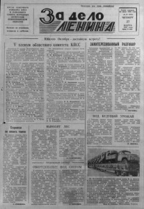 ОРГАН СЕ ВЕ Р НОГ О РАЙКОМА КПСС И РАЙОННОГО СОВЕТА НАРОДНЫХ ДЕПУТАТОВ НОВОСИБ И Р СКОЙ ОБЛАСТИ Выходит по вторникам, четвергам и субботам. Пролетарии всех стран, соединяйтесь! а д е л о Газета основана 2 0 июля 193 5 года № 37 (6105) ЧЕТВЕРГ 27 М А Р Т А 1 9 8 7 г о д а Цена 3 коп. Юбилею Октября—достойную встречу! / V пленумобластного комитета КПСС Состоялся V пленум Новосибирского областного комитета КПСС. В его работе приняли участие члены й» кандидаты в члены обкома КПСС, члены областной ревизионной комиссии КПСС секретари райкомов и горкомов партии, председатели гор(рай)исполкомов, ру ководители областных управлений и ведомств, ученые работники средств массовой информации. С докладом «О задачах областной партийной организации по дальнейшей перестройке и коренному улучшению работы с к адр ами, вытекающих из решений январского ( 1 9 8 7 г.) Пленума ЦК КПСС» выступил первый секр е та р ь обкома КПСС А. П. Филатов. В обсуждении доклада приняли участие В. Н. Шумилов — первый с ек р е та р ь Л е нин ского райкома КПСС г. Новосибирска, А. В. б у р а н о в — первый секр е тар ь Искигимского горкома КПСС, В М. Кондратьев — механизатор колхоза «Победа» Сузунского района, Н. И, Лубеников — председатель облсовпро- фа, Л И. Еайкалова — с ек р е та р ь парткома совхоза «Р а здол ьн ы й » Коченевского района, А. И. Овчинников — член Военного совета — начальник политуправления Краснознаменного Сибирского военного округа. В. П. Чики. пев — председатель Новосибирского горисполкома, Р- А. Яроелавнен — машинист элек тровоза локомотивного депо Новосибирск- Главный, А П. Свитченко - первый секре тар ь Доволенскогс райкома КПСС, А. А. Тро фимук — академик, первый заместитель председателя президиума СО АН СССР, О П Южанина — заведующая Алексеевской фепмой колхоза «Память Ленина» Северного района, А Е Шилин — первый секре тарь Кировского райкома КПСС г Новосибирска, И- 9 . Федотов — второй секр е та р ь обкома КПСС И. А Гоцелюк—директор госплемпти цезаведа «Новосибирский», А. К. Черненко — ректор НВПШ, В. В Прилепский — директор Вердского химзавода, А. Г. Незавитин— первый зам ести тель председателя облиспол-- кома, председатель облагроирома, И. Г. Урсов —ректор медицинского института. По обсужденному вопросу принято поста новление. Пленум рассмотрел организационный вопрос. В связи с переходом на другую работу Л. Ф. Колесников освобожден от обязанностей чл на бюро и с е к р е та р я обкома КПСС. Пленум перевел А. И. Ж учкова из кандида тов в члены обкома КПСС и избрал его чле ном бюро и секретарем Новосибирского обкома КПСС. В связи с уходом на пенсию пленум -осво бодил II. В. Б е з р яд и н а o r обязанностей ре д актора га зеты «Советская Сибирь» и члена бюро обкома партии. Е. А. Зубов в связи с уходом на пенсию по состоянию здоровья освобожден от обязан ностей председателя комиссии партийного контроля при Новосибирском обкоме КПСС. З а долголетнюю добросовестную работу пленум выразил Н. В. Б езряди ну и -Е , А. З у бову благодарность. Пленум избрал Г. И. Аверьянова кандида том в члены бюро Новосибирского обкома КПСС и утвердил его редактором областной газеты «Советская Сибирь». В с вя зи с этим он освобожден от обязанностей заведующего отделом пропаганды и агитации обкома КПСС. Заведующим отделом пропаганды и агита ции обкома КПСС утвержден А. Н. Русанов. Заведующим отделом торговли и бытовог
