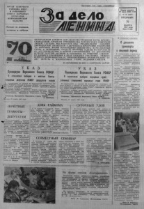 ОР ГАН С Е В Е Р НОГ О Р АЙКОМА КПСС И Р АЙОННОГ О СОВЕТА НА Р ОДНЫХ ДЕ ПУ Т А Т ОВ Н О В О С И Б И Р С К О Й ОБЛАСТИ Выходит по вторникам, четвергам и с у б б о т ам. Пролетарии всех стран, соединяйтесь? л е л о Газета основана 2 0 июля 1 9 3 5 года Ц № 39 (610?) i ВТОРНИК 31 М А Р Т А 1 9 8 7 г о д а Цена 3 кон. Ц Е Н Т Р А Л Ь Н Ы Й КОМИТЕТ ОБ Р А ЩАЕТСЯ К Т Р У Д О В О Й ЧЕСТИ, П Р О Ф Е С С И О Н А Л Ь Н О Й ГОР ДОСТИ Т Р У Д Я ЩИ Х С Я , К ПА Т Р ИОТ И З МУ СОВЕТСКИХ Л ЮД Е Й . СЕ Г ОДНЯ МЫ РАБОТАЕМ НА Д Р Е А Л И З А Ц И Е Й З А Д А Н И Й Д В Е Н А Д Ц А Т О Й ПЯТ ИЛЕ ТКИ — К ЛЮЧ Е В О Й В П Р О Г Р А ММЕ УСКОР ЕНИЯ . З А КОР ОТКОЕ ВРЕМЯ Н Е О Б Х О Д И МО ОБ Е С ПЕ Ч ИТ Ь КАЧЕСТВЕННЫЙ С Д В И Г В Э К ОНОМИК Е , С О З Д А Т Ь П Р ОЧ НЫЕ З А Д Е Л Ы НА ПЕРСПЕКТИ ВУ. ЭТА З А Д А Ч А СТОИТ В Ц Е Н Т Р Е С О Р Е В Н О В А Н И Я З А ДОСТ ОЙНУЮ ВСТР ЕЧУ 7 0 - ЛЕТИЯ ОКТЯБ Р Я . И УСПЕШНОЕ ЕЕ Р Е ШЕ Н И Е З А В ИСИТ ОТ Л ИЧ НО Г О ОТ НОШЕ НИЯ К Д Е Л У К А ЖД О Г О УЧАСТНИКА ОБЩЕ СТ ВЕН НОГО П Р О И З В О Д С Т В А , ОТ Т О Г О , НА С К ОЛ Ь К О Т Р Е Б О В А Т Е Л Ь Н О БУД Е Т З ВУЧАТЬ В К О Л Л Е К Т И В А Х ГОЛОС Т Р У Д О В О Й СОВЕСТИ. И З ОБРАЩЕНИЯ ЦК КПСС К СОВЕТСКОМУ НАРОДУ. У К А З Прзеиидуам Верховного Совета РСФСР О назначении выборов в местные Советы кэрорых депутатов РСФСР двадцатого созыва В соответствии со статьей 86 Конституции (Основного З а - ^ кона) РСФСР и ст атьей 13 З а к о н а РСФСР «О выборах в мест. ♦ные Советы народных депутатов РСФСР» Президиум В ерховно г о Совета РСФСР постановляет; Н а зн ач и т ь выборы в местные Советы народных депутатов РСФСР двадцатого созыва на воскресенье, 21 июня 1987 года. Председатель Президиума Верховного Совета РСФСР В. ОРЛОВ. Секре тарь Президиума Верховного Совета РСФСР & X. НЕШКОВ. Москва, 27 м арта 1987 года. У К А З Прзеиидуам Верховного Совета РСФСР О назначении выборов народных судйе районных (городских) народных судов РСФСР В соответствии со ст атьей 164 Конституции (Основного З а кона) РСФСР и статьей 15 З а к о н а РСФСР « о выборах рай онны х (городских) народны х судов РСФСР» Президиум:. Верховного Совета РСФСР постановляет; Н а з н ач и т ь выборы народных судей районных (городских) народных судов РСФСР н а воскресенье, 21 июня 1987 года. Председатель Президиум а Верховного Совета РСФСР В. ОРЛОВ. Секре тарь П резидиума Верховного Совета РСФСР X. НЕШКОВ. Москва, 27 м ар т а 1987 года. П О Ч Ё Т Н Ы Е Г Р А М О Т Ы - Д Е Н Ь Р А Й К О М А С 31 м ар т а по 5 а п р е л я будет проведен день р ай к о м а КПСС в к о л хо зе имени К а р л а Маркса. З а это вр ем я пройдут встречи с трудовыми ко л л ек т и в ам и , будет ор ган изован прием по . л и ч н ы м вопросам с е к р е т а р ям и р а й к о м а партии. В пров едении дня р ай к о м а будут з а д ейс твованы работники исполкома рай совета, РАПО, р ай к о м а профсоюза работников агропрома, р а й к о м а комсомола, р е д а к ц и и районной газе ты «За дело Ленина», бол ь ницы , сл уж бы быта, ку л ь т у р ы , связи, эн ергоуча стка , пр а во о х р ан и те ль н ы х органов. Ц ел ь — о к а з а н и е конкретной помощи по р а з л и ч н ы м н а пр авл ен иям . По итогам .работы будет проведено собрание. С У Т О Ч Н Ы Й У Д О Й В конце м арта средний удой молока от коровы по району з а сутки составляет 6,9 кил о гр амм а . Это больше прошлогоднего на 600 граммов. На общем резул ьтате сказалос ь то, что почти все хо зя й с т в а , кроме колхозов имени К. М аркса и имени К алинина , сегодн я н адаив аю т молока от коровы больше, неж ел и на данный период минувшего года. С амый вы