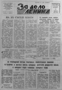 О Р Г А Н С Е В Е Р Н О Г О Р А Й К О М А К П С С И Р А Й О Н Н О Г О С О В Е Т А Н А Р О Д Н Ы Х Д Е П У Т А Т О В Н О В О С И Б И Р С К О Й О Б Л А С Т И Пролетарии веет стран, соединяйтесь! В ы х о д и т по в т о р н и к а * , ч е т в е р г а м н с у б б о т а м . л е л о I Газета основана 20 июля 1935 года № 49 (6117) Ч Е Т В Е Р Г 23 А П Р Е Л Я 1987 г о д а Цена 3 коп. Н А X X СЪЕЗДЕ Москва . (ТАСС) В своей с л о ж н е й ш е й т и т а н и ч е с к о й р а б о т е п о р е в о л ю ц и о н н о м у обновлению всех сторон ж и з н и с о ц и а л и с т и ч е с к о г о о б щ е с т в а К о м м у н и с т и ч е с к а я п а р т и я м о ж е т п о л н о с т ь ю п о л о ж и т ь с я н а Л е н и н с к и й к о м с о м о л . Об э т о м з а я в и л и д е л е г а т ы X X с ъ е з д а В Л К С М с т р и б у н ы К р е м л е в с к о г о Д в о р ц а с ъ е з д о в . О р а т о р ы о т м е ч а л и , ч т о в в ы с т у п л е н и и М. С. Г о р б а ч е в а н а с ъ е з д е и з л о ж е н а к о н к р е т н а я п р о г р а м м а а к т и в и з а ц и и д е я т е л ь н о с т и к о м с о м о л а , п о в ы ш е н и я е г о р ’о л и в р е а л и з а ц и и п р а к т и ч е с к и х з а д а ч у с к о р е н и я . М о л о д е ж ь с т р а н ы н е п о ж а л е е т с и л р а д и д о с т и ж е н и я в ы с о к и х ц е л е й , о п р а в д а е т з в а н и е м о л о д о й г в а р д и и в п е р е с т р о й к и . П о д ч е р к и в а л о с ь , ч т о у с к о р ю н и е ( с о ц и а л ь н о - э к о н о м и ч е с к о г о р а з в и т и я с т р а н ы д а е т р е а л ь н у ю в о з м о ж н о с т ь м и л л и о н а м м о л о д ы х л ю д е й п р и м е н и т ь с в о и с п о с о б н о с т и , з н а н и я , у т в е р д и т ь с я в о б щ е с т в е , Е щ е б о л ь ш е у к р е п и т гарантию п р ав юношей и д е . в у ш е к в о в с е х о б л а с т я х о б щ е с т в е н н о й ж и з н и З а к о н о м о л о д е ж и . И д е я р а з р а б о т а т ь и п р и н я т ь т а к о й з а к о н н а ш л а п о д д е р ж к у н а с ъ е з д е . О с о б ы й р а з г о в о р ш е л о д е я т е л ь н о с т и к о м с о м о л ь с к о - м о л о д е ж н ы х к о л л е к т и в о в , о к о м с о м о л ь с к и х с т р о й к а х . Т а к и м и с т р о й к а м и д о л ж н ы с т а т ь о б ъ е к 'т ы , д е й с т в и т е л ь но имеющие н аи боле е в а ж н о е зн а ч ен и е в о б е с п е ч е н и и у с к о р е н н о г о р а з в и т и я в с е г о н а р о д н о г о х о з я й с т в а с т р а н ы , п р е и м у щ е с т в е н н о в р а й о н а х С и б и р и и Д а л ь н е г о В о с т о к а , Р о с с и й с к о г о Н е ч е р н о з е м ь я . П р е д л а г а л о с ь и м е н н о на э тих с т р о й к а х а п р о б и р о в а т ь прогрессивные, с о ц и а л ь . н ы е , э к о н о м и ч е с к и е , г р а д о с т р о и т е л ь н ы е р а з р а б о т к и . У ч а с т и е в р е а л и з а ц и и ( П р о д о в о л ь с т в е н н о й / п р о г р а м м ы б ы л о н а з в а н о в а ж н е й ш и м д е л о м к о м с о м о л а . П р и в о д и л и с ь п р и м е р ы у д а ч н о й д е я т е л ь н о с т и к о м с о м о л ь с к и х к о м и т е т о в в с т а н о в л е н и и н а с т о я щ и х х о з я е в з е м л и , о с о з д а н и и с т а б и л ь н ы х т р у д о в ы х к о л л е к т и в о в н а с е л е . Е с т ь и о п ы т э ф ф е к т и в н о г о ш е ф с т в а к о м с о м о л ь с к и х о р г а н и з а ц и й н а д э к о н о м и ч е с к и с л а б ы м и х о з я й с т в а м и . С е г о д н я , к а к н и к о г д а , в а ж н о п о н я т ь и о п р е д е л и т ь р о л ь и м е с т о к о м с о м о л а в и д е й н о п о л и т и ч е с к о м , н р а в с т в е н н о м в о с п и т а н и и ю н о ш е й и д е в у шек, отме чали выступавш ие . Н у ж н о п о с т а в и т ь д е л о т а к , ч т о б ы и н д и в и д у а л ь н а я р а б о т а н а п р о и з в о д с т в е , в ш к о л е , п о м е с т у ж и т е л ь с т в а с т а л а а к т и в н о й , н а с т у п а т е л ь н о й . И ВЛКСМ т у т о с о б е н н о в е л и к а с и л а л и ч н о г о п р и м е р а к о м с о м о л ь с к и х в о ж а к о в , о т к о т о р ы