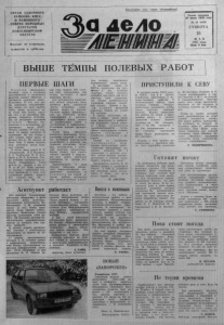 П р о л е т а р и и в с е х с т р а н , сое ди н я й т е сь ! ОР ГАН С Е ВЕ Р Н О Г О РАПКОМЛ КПСС И РА ЙО ННО Г О СОВЕТА НА РО ДНЫХ ДЕ ПУТА ТОВ Н О В О СИ Б ИР СК О Й ОБЛАСТИ В ы х о д и т по в т о р н и к а м , ч е т в е р г а м и с у б б о т а м . ■|1Ш 1М ш — И И ) И Г Газета основана 2 0 июля 1 9 3 5 года № 58 (6126) СУББОТА 16 М А Я 1987 г о д а Цена 3 кон. ВЫШЕ ТЕМПЫ ПОЛЕВЫХ РА БО Т П ЕРВЫ Е ШАГИ К о л х о з а м принадлежит большая роль в ускорении экономического и социального развития нашего общества, в снабжении населения продо. вольствием. О том, как луч ше выполнить государственные планы, что надо сделать, чтобы жизнь колхозного с е ла стала еще богаче, р а зг о вор шел и на партийных собраниях, собраниях колхозников, на заседаниях правления к о л х о з а «Восход». Упоминалось и о коллективах интенсивного труда (КИТ). Читали, конечно, об этом слышали по радио, смотрели по телевизору. Но вот чтобы у себя создать такое звено, не думали к а к .т о . Не думали до этого года. А нынче создали: ведь наступило время больших перемен. В состав звена вошли В. К. Ликарювский, В. П. Ратников, С. С. Трибуналов, Н. М. Д м и триев и М. В. Котелкин. Сво. им вожаком механизаторы из. брали Ликаровского. Стаж работы на технике у них от 10 до 29 лет. Звено заключило договор с правлением колхоза произвести в этом году следующие работы: посеять 250 гектаров овса, 150 — однолетних трав. 100 — озиАгитпункт Д л я ж и т е л е й Г р а ж д а н ц е в о а г и т п у н к т об орудован в ф о й е с е л ь с к о г о Дом а к у л ь т у р ы . З а в е д у ю щ а я а г и т п у н к т о м б и б л и о т е к а р ь Г. М. А н д р е е в а сл ед и т з а тем, ч т о б ы з д е с ь в сегда бы л и с в е ж и е г а з е т ы , ж у р н а л ы . В ы в е ш е н ы с п и с к и о к р у г о в , а г и т а то р о в , п л а н р а боты. Он н а с ы щ е н м а с с о в о - п о л и т и ч е с к и м и м е р о п р и я т и я м и , многи е и з к о т о р ы х у ж е у д а л о с ь п р о в ести . В н а ч а л е а п р е л я о р г а н и з о в а н с е м и н а р с а г и т а т о р а м и , о п р е д е л е н ы их з а д а ч и н а д е с я т и д в о р к ах . 17 а п р е л я п р е п о д а в а т е л ь и с т о р и и А. П. А н и л и н п р о в е л с р а б о т н и к а м и ж и в о т н о в о д ст в а б еседу « Д е м о к р а т и зм с о в е т с к о й и з б и р а т е л ь н о й с и с т е мы». 117-й год о вщ и н е со д н я р о ж д е н и я В. И. Л е н и н а р а мой ржи; поднять 400 гек та ров зяби, заскирдовать всю солому, заготовить 6 тысяч центнеров сенажа. Д л я производства нормативного объема продукции звену расчитан фонд заработной платы,; установлен лимит, прямых з а тр а т по статьям. Текущая оплата механизаторам до получения урожая производится ft пределах гарантийного фонда оплаты за отработанную смену в соответствии 'cl iклассностью: Установлен порядок премирования. Члены звена обязуются обеспечить выполнение технологических операций в интересах получения максимальной урожайности и экономии выделенных коллективу труд о вых, материальных и д е н еж ных ресурсов; |ор гани зо в ат ь охрану у р о ж а я , учет отработанного времени и выполнения всех работ; соблюдать требования по технике безопасности. Администрация, в свою очередь, обязалась обеспечить самостоятельность хозрасчетного коллектива, не о т в л е к а т ь его членов на другие работы, поставлять всю предусмотренную догово . . ром технику, производить своевременно оплату груда. В настоящее время за • КИТом закреплены три гусеничных и два колесных тр актор а , четыре зерновых комбайна, три плуга, два куль" тиватора, один лущил