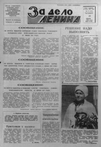 О Р Г А Н С Е В Е Р Н О ГО Р А Й К О М А К П С С И Р А Й О Н Н О Г О СОВЕТА Н А Р О Д Н Ы Х Д Е П У Т А Т О В Н О В О С И Б И Р С К О Й О Б Л А С Т И « П р о л е т а р и и в с е х с т р а н , с о е д и н я й т е с ь ! З а лело Г а з е т а о с н о в а н а 2 0 и ю л я 1 9 35 г о д а № 75 (5 1 4 3 J Ч Е Т В Е Р Г 2 5 ИЮ Н Я 1987 года Цена 3 коп. Выходит по вторникам, четвергам и субботам. т е ш у с о о б щ е н и е : ОБ И ТО Г А Х ВЫ Б О Р О В Н А Р О Д Н Ы Х С У Д Е Й С Е В Е Р Н О Г О Р А Й О Н Н О Г О Н А Р О Д Н О Г О С У Д А Н О В О С И Б И Р С К О Й О Б Л А С Т И РСФСР 21 ИЮ НЯ 1987 ГОДА . Р а й о н н а я и з б и р а т е л ь н а я к о м и с с и я в с о о т в е т с т в и и с о с т а т ь я м и 30 и 52 З а к о н а Р С Ф С Р « О в ы б о р а х р а й о н н ы х н а р о д н ы х с у д о в Р С Ф С Р » и на о с н о в а н и и п р о т о к о л о в у ч а с т к о в ы х и з б и р а т е л ь н ы х к о м и с с и й о р е з у л ь т а т а х в ы б о р о в п о д в е л а и т о г и в ы б о р о в н а р о д н о г о с у д ь и С е в е р н о г о р а й о н н о г о н а р о д н о г о с у д а . В в ы б о р а х н а р о д н о г о с у д ь и С е в е р н о г о р а й о н н о г о н а р о д н о г о с у д а п р и н я л о у ч а с т и е 9 9 , 9 4 п р о ц е н т а в с е х и з б и р а т е л е й с о о т в е т с т в у ю щ и х и з б и р а т е л ь н ы х о к р у г о в . З а к а н д и д а т а в н а р о д н ы е с у д ь и г о л о с о в а л о 9 9 , 5 п р о ц е н т а и з б и р а т е л е й , п р о т и в к а н д и д а т а в н а р о д н ы е с у д ь и г о л о с о в а л о 0 , 4 5 п р о ц е н т а и з б и р а т е л е й . П о и т о г а м в ы б о р о в з а р е г и с т р и р о в а н н ы й к а н д и д а т в н а р о д н ы е с у д ь и п о л у ч и л а а б с о л ю т н о е б о л ь ш и н с т в о г о л о с о в и з б и р а т е л е й . ' В С е в е р н ы й р а й о н н ы й н а р о д н ы й с у д и з б р а н о д и н н а р о д н ы й с у д ь я . И з б р а н н ы й н а р о д н ы й с у д ь я о б л а д а е т п р а к т и ч е с к и м о п ы т о м р а б о т ы в о р г а н а х ю с т и ц и и , с у д а , п р о к у р а т у р ы , в с о в е т с к и х о р г а н а х и о б щ е с т в е н н ы х о р г а н и з а ц и я х , на п р о и з в о д с т в е . Н а о с н о в а н и и с т а т ь и 4 8 З а к о н а Р С Ф С Р « О в ы б о р а х р а й о н н ы х ( г о р о д с к и х ) н а р о д н ы х с у д о в Р С Ф С Р » и з б и р а т е л ь н ы х б ю л л е т е н е й ; , п р и з н а н н ы х н е д е й с т в и т е л ь н ы м и , н е т . Н а р о д н ы м с у д ь е й С е в е р н о г о н а р о д н о г о с у д а и з б р а н а В А Щ У К Ю л и я А л е к с а н д р о в н а . Р а й о н н а я и з б и р а т е л ь н а я к о м и с с и я п о в ы б о р а м н а р о д н ы х с у д е й С е в е р н о г о р а й о н н о г е н а р о д н о г о с у д а . С О О Б Щ Е Н И Е ОБ И ТО Г А Х В Ы Б О Р О В В С Е В Е Р Н Ы Й Р А Й О Н Н Ы Й СОВЕТ Н А Р О Д НЫХ Д Е П У Т А Т О В РСФСР Д В А Д Ц А Т О Е О С О З Ы В А 21 И Ю Н Я 1987 РОДА Р а й о н н а я и з б и р а т е л ь н а я к о м и с с и я в с о о т в е т с т в и и с о с т а т ь я м и 29 и 52 З а к о н а Р С Ф С Р « О в ы б о р а х в м е с т н ы е С о в е т ы н а р о д н ы х д е п у т а т о в Р С Ф С Р » и н а о с н о в а н и и п р о т о к о л о в о к р у ж н ы х и з б и р а т е л ь н ы х к о м и с с и й о р е з у л ь т а т а х в ы б о р о в п о д в е л а и т о г и в ы б о р о в в р а й о н н ы й С о в е т н а р о д н ы х д е п у т а т о в . В в ы б о р а х д е п у т а т о в р а й о н н о г о С о в е т а н а р о д н ы х д е п у т а т о в п р и н я л о у ч а с т и е 9 9 , 9 4 п р о ц е н т а и з б и р а т е л е й . З а к а н д и д а т о в в д е п у т а т ы г о л о с о в а л о 98 ,5 п р о ц е н т а и з б и р а т е л е й . Н а о с н о в а н и и с т . 48 З а к о н а Р С Ф С Р « О в ы б о р а х в м е с т н ы е С о в е т ы н а р о д н ы х д е п у т а т о в Р С Ф С Р » и з б и р а т е л ь н ы х б ю л л е т е н е й , п р и з н а н н ы х н е д е й с т в и т е л ь н ы м и , н е т . В С е в е р н ы й р а й о н н ы й С о в е т н а р о д н ы х д е п у т а т о в и з б р а н о 50 д 