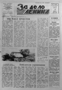 Пролетарии в сех стран, соединяйтесь! О & Г Л Н С Е В Е Р Н О Г О Р А Й К О М А К П С С И Р А Й О Н Н О Г О С О В Е Т А Н А Р О Д Н Ы Х Д Е П У Т А Т О В Н О В О С И Б И Р С К О Й О Б Л А С Т И Выходит по вторникам, четвергам и субботам. Га з е т а о с н о в а н а 20 и ю л я 193S г о д а № 89 (6157) С Р Е Д А 29 июля 1987 года Цена 3 коп. — П Р О Ч Н У Ю К О Р М О В У Ю Б А З У <>. К А Ж Д О Й Ф Е Р М Е НИ ЧАСА П Р О С Т О Я И ю л ь с к и е дн»| б л а г о п р и я т с т в у ю т к о р м о з а г о т о в и т е л я м | . Н а с е г о д н я з а с к и р д о в а н о б о л е е 9 2 т ы с я ч ц е н т н е р о в с е н а , ч т о с о с т а в л я е т t б о л е е п о л о в и н ы р а й о н н о г о п л а н а . В ы с о к и м и т е м п а м и , о р г а н и з о в а н н о и д е т п о л е в а я с т р а д а в к о л х о з а х и м е н и М . Г о р ь к о г о , « В о с х о д и * « Н а ш а Р о д и н а » . В э т и х х о з я й с т в а х с е н а з а г о т о в л е н о б о л ь ш е 6 0 п р о ц е н т о в к п л а н у . Н о н е в е з д е р и т м с т р а д ы н а п р я ж е н н ы й . М е д л е н н о иде!| з а г о т о в к а с е н а в к о л х о з а х « V I I с ъ е з д С о в е т о в » , « П а м я т ь Л е н и н а » , и м . X X I I с ъ е з д а К П С С и о с о б е н н о в к о л х о з е « Н о в а я ж и з н ь » , г д е з а с к и р д о в а н о в с е г о т р и т ы с я ч и ц е н т н е р о в с е н а . В э т о м х о з я й с т в е з а п о с л е д н и е г о д ы с л о ж и л а с ь п о р о ч н а я п р а к т и к а з а г о т о в к и с е н а . Н е и м е я п л о щ а д е й д л я в ы с о к о э ф ф е к т и в н о г о и с п о л ь з о в а н и я т е х н и к и , п о л е в о д ы т е м н е м е н е е р а б о т а ю т ' з в е н ь я м и , е ж е д н е в н а я п р о и з в о д и т е л ь н о с т ь т р у д а в к о т о р ы х с о с т а в л я е т в с е г о 4 0 — 5 0 п р о ц е н т о в о т п л а н о в о й . У д л и н е н и е с р о к о в з а г о т о в к и с е н а и н е б о л ь ш и е п о о б ъ е м у с к и р д ы з н а ч и т е л ь н о у х у д ш а ю т е г о к а ч е с т в о . В и т а м и н н о - т р а в я н о й м у к и з а г о т о в л е н о 4 0 п р о ц е н т о в к п л а н у . Э т а р а б о т а х о р о ш о о р г а н и з о в а н а в к о л х о з е « П а м я т ь Л е н и н а » , г д е б л и з к и к з а в е р ш е н и ю з а д а н и я , б л а г о д а р я д о б р о с о в е с т н о м у т р. у д уВ. С е р г и е н к о , И. А л е х и н а , С . К а з а н ц е в а , В. П а н ф и л о в а , А . Щ е р б а к о в а , А . К а р м а ч а , А . П л о т н и к о в а , к о т о р ы е е ж е д н е в н о п е р е к р ы в а л и н о р м ы . В « З а в е т а х И л ь и ч а » , « П у т и к к о м м у н и з м у * ) , « V I I с ъ е з д е С о в е т о в » и « Н а ш е й Р о д и н е » п л а н в ы п о л н е н б о л е е ч е м н а 6 0 п р о ц е н т о в . К о р м а — э т о н е т о л ь к о к о л и ч е с т в о , н о и к а ч е с т в о . О д н а к о б о л ь ш и н с т в о п р а в л е н и й и с п е ц и а л и с т о в . б е з о т в е т с т в е н н о о т н о с я т с я к т а к о м у в а ж н о м у в о п р о с у , к а к и с с л е д о в а н и е с е н а и г р а н у л н а к а ч е с т в о . С д а л и к о р м а в л а б о р а т о р и ю т о л ь - к р к о л х о з ы « П а м я т ь Л е н и н а » , и м е н и X X I I с ъ е з д а К П С С , « З а в е т ы И л ь и ч а » . « П у т ь к к о м м у н и з м у » и « V I I с ъ е з д С о в е т о в » . А н а л и з ы П о д т в е р д и л и , ч т о с е н о и в и т а м и н н о - т р а в я н ы е г р а н у л ы к л а с с н ы е . О ч е н ь м е д л е н н о н а ч и н а е т с я з а г о т о в к а с е н а ж а , х о т я и о д о с т о и н с т в а х " ' д а н н о г о к о р м а г о в о р и л о с ь н е р а з . Н о у б е д и т ь в э т о м с п е ц и а л и с т о в т р у д н о . Д л и т е л ь н а я з а с у ш л и в а я п о г о д а п о в л и я л а н а р о с т и р а з в и т и е з е р н о в ы х и с и л о с н ы х к у л ь т у р , п о э т о м у н е о б х о д и м о к а к м о ж н о б о л ь ш е з а г о т о в и т ь с е н а и з а л о ж и т ь с е н а ж н о й и с и л о с н о й м а с с ы и з е с т е с т в е н н ы х и о д н о л е т н и х т р а