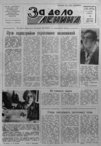 ОР ГАН С Е В Е Р НОГ О Р АЙКОМА КПСС И Р АЙОННОГ О СОВЕТА НА Р О Д НЫХ ДЕ ПУ Т А Т ОВ Н О В ОС ИБ И Р С К О Й ОБЛАСТИ Выходит по вторникам, четвергам и с у б б о т ам. Пролетарии всех стран, соединяйтесь! а дело Газета основана 20 июля 1935 года № 95 (6163) С Р ЕД А 12 АВГУСТА 1987 года Цена S нон. — ..... Р еш ен и я июньского Пленума ЦК КПСС —в конкретные д е л а —— —— Нуги перестройки управления экономикой Как у ж е сообщалось, 31 ию ля состоялся V I I I пленум С е верного районного комитета партии, обсудивший вопрос «О задачах партийных организаций района т о осуществлению решений июньского (1987 г.) Пленума Ц К КПСС по коренной перестройке управления экономикой». С докладом на пленуме выступил первый секретарь р ай кома партии П. С. Великодный. Последовательное проведение партией курса апрельского (1985 г.) Пленума ЦК, X X V I I съезда КПСС на у ск о рение социально-экономического развития оказывает все более глубокое воздействие на все сферы жизни советского общества. Новый этап во всей нашей работе открыл июньский (1987 г.) Пленум Ц К КПСС. На Пленуме рассмотрены вопросы огромной важности, дан глубокий политический анализ хода перестройки, показаны первые ее результаты, откровенно сказано о трудностях и недостатках. В докладе Генерального секретаря ЦК КПСС тов. М. С. Горбачева всесторонне обо снована необходимость радикальной реформы управления экономикой, убедительно раскрыты основные направления и принципы ее осуществления. Концепция экономической реформы, отражающая коллективную мысль партии, максимально учитывает слож ный комплекс интересов личности, коллектива, классов, всех наций и народностей и направлена на оптимизацию их соотношений, обеспечение динамичного развития и достижения качественно нового состояния нашего общества. В последние годы народноь хозяйство нашего района столкнулось с определенным» трудностями, в том числе и объективного характера, связанными с погодными условиями. Это привело к снижению показателей почти по всем видам 1 нашей деятельности. В 1985 году удой на к о р о ву снизился до 1783 килограммов, падеж скота достиг 14,6 процента к обороту стада, в том числе народившегося молодняка — 31 процента. Это сказывается на производстве молока и мяса и в те кущ ем году. Район перестал участвовать в сдаче зерна государству. Замедлилось строительство объектов соцкультбыта, дорог, жилья и т. д. Все это привело к р ез кому оттоку населения из района. В 1985 году около 10 процентов е го покинуло район. В настоящее время наметились определенные, хотя и небольшие, перемены к упу щению создавшегося полож е ния. Положительная тенденции наконец начала проявляться в такой важной и оказавшейся в тяжелом положении отрасли, как капитальное строительство. За первое полугодие ввод основных фондов составил более 1,8 млн. рублей. Вошли в строй районная больница, детсад в Верх-Краснояр ке, школы в Коб. Кор доне и Ударнике, ряд других объектов. В стадии завершения находится Дом культуры в с. Останинка, теплые стоянки для автомашин в «Агро- промтрансе» и П М К «Мелио- водсх-pov», ’ инку^аторноч.пти- цеводческая станция, универсам. Продолжаетс я строительство зданий СПТУ и РАПО, Дворца культуры в с. Север ное. Начато строительство детского сада на 140 мест в райцентре, до конца годт будут с т р о и т ь с я ш к о л ы в Витинске и Гражданцево. Заметно улучшились дела в д о р ож н ом с
