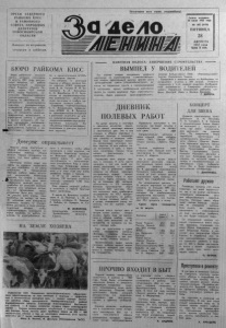 О Р Г А Н С Е В Е Р Н О Г О Р А Й К О М А К П С С И Р А Й О Н Н О Г О • С О В Е Т А Н А Р О Д Н Ы Х Д Е П У Т А Т О В Н О В О С И Б И Р С К О Й О Б Л А С Т И Вых о дит по в т о р ни к а м , ч е т в е р г а м и с у б б о т а м . ✓ Пролетарии всех стран, соединяйтесь! л е л о Г а з е та о с н о в а н а 20 и ю л я 1935 г о д а № 102 (6170) ПЯТНИЦА 28 А В Г У С Т А 1987 г о д а Цена 3 коп. БЮРО РАЙКОМА КПСС Б ю р о р а й о н н о г о к о м и т е т а п а р т и и , к о т о р о е с о с т о я л о с ь 25 а в г у с т а 1987 г о д а , р а с с м о т р е л о в о п р о с ы : «О р а б о т е п а р т о р г а н и з а ц и й к о л х о з о в «Н аш а Р о д и н а » , «П ам ят ь Л е нин а » , и м е н и X X I I с ъ е з д а К ПС С , и м е н и К а л и н и н а , и с п о л к о м о в В е р х к р а с н о я р с к о г о Гр а ж д а н ц е в с к о г о с е л ь с к и х С о в е т о в п о о б е с п е ч е н и ю о б щ е с т в е н н о г о ж и в о т н о в о д с т в а к о р м а м и , с в о е в р е м е н н о м у п р о в е д е н и ю у б о р о ч н ы х р а б о т и п р о д а ж е х л е б а г о с у д а р с т ву», «О г о т о в н о с т и к о л х о з о в , п р е д п р и я т и й , о р г а н и з а ц и й и у ч р е ж д е н и й р а й о н а к р а б о т е в з и м н и х у с л о в и я х » , «О г р у б ы х н а р у ш е н и я х п о с т а н о в л е н и я ЦК КПС С «О м е р а х т о п р е о д о л е н и ю п ь я н с т в а и ал - о г о л и з м а » п а р т о р г а н и з а ц и ей и а д м и н и с т р а ц и е й М П М К » и н е к о т о р ы е д р у г и е . П о в о п р о с у о з а г о т о в к е к о р м о в и у б о р к е у р о ж а я б ю р о р а й к о м а КП С С п р е д у п р е д и л о В. М . П а с ь к о , И. И. За - к а м с к о г о А . А . К о н с т а н ц а , А . И. В о р о б ь е в а , В. Е. Б е л о н о г о в а за н е у д о в л е т в о р и т е л ь н о е р у к о в о д с т в о х о з я й с т в е н н ы м и о р г а н а м и и с л а б у ю о р г а н и з а ц и ю п о л е в ы х р а б о т . С е к р е т а р ь п а р т о р г а н и з а ц и и С. С. К о н д р а ш к и н , п р е д с е д а т е л ь М П М К М . В. Л у к а ш о в за п р и м и р е н ч е с к о е о т н о ш е н и е к р а с п и т и ю с п и р т н о г о во в р е м я к у л ь т у р н о - м а с с о в о г о м е р о п р и я т и я п о н е с л и с е р ь е з н о е п а р т и й н о е в з ы с к а н и е . Им ' о б ъ я в л е н ы с т р о г и е в ы г о в о р а с з а н е с е н и е м в у ч е т н у ю п а р т и й н у ю к а р т о ч к у . Доверие оправдывает Н е д е л ю н а з а д п р и с т у п и л и к у б о р к е к о р м о в ы х к у л ь т у р м е х а н и з а т о р ы к о л х о з а «Н о ва я ж и з н ь » . П е р в а я п я т и д н е в к а п о к а з а л а , ч т о т е м п р а б о т ы взя т н е п л о х о й . З а г о т о в к у с и л о с а в е д у т д в а з в е н а , за к а ж д ы м з а к р е п л е н о п о д в а к о м б а й н а и по ш е с т ь а в т о м а ш и н . В Ч у в а ш и н с к о й б р и г а д е р а б о т у зв е н а в о з г л а вил к о м с о м о л е ц А л е к с а н д р I К р а с н о в . О н ш о ф е р и н а р а в н е Ь о с т а л ь н ы м и в есь д е н ь заня т п е р е в о з к о й - з е л е н о й м а с с ы от к о м б а й н а д о с и л о с н о й т р а н ш е и . П о э т о м у в с е н а с у щ н ы е в о п р о с ы п о о р г а н и з а ц и и т р у д а , у с т р о й с т в у б ы т а е м у п р и х о д и т ся р е ш а т ь р а н о у т р о м , п о к а к о м б а й н ы не в ы й д у т на п о л е . И в о п р о с о в эти х е ж е д н е в н о в о з н и к а е т н е м а л о : то п о н а д о - б и т с я д о с т а в и т ь в п о л е э л е к т р о с в а р о ч н ы й а п п а р а т , ч т о б ы о т р е м о н т и р о в а т ь в ы ш е д ш и й из с т р о я к о м б а й н , т о в ы б и т ь г о - | р ю ч е е , т о о т р е г у л и р о в а т ь в о - п р о с с п и т а н и е м , ч т о б ы о б е д п р и в о з и л и в п о л е в о в р е м я , не о с т ы в ш и м . А л е к с а н д р п р о я в л я - ет б о л ь ш у ю з а б о т у о чл е н а х с в о е г о з в е н а . У н е г о есть н а с т о й ч и в о с т ь и о р г а н и з а т о р с к и е с п о с о б н о с т и . Е