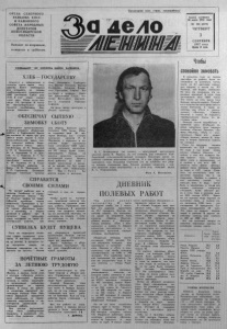 Пролетарии в с е х ст р ан , соединяйтесь! О Р Г А Н С Е В Е Р Н О Г О Р А Й К О М А К П С С И Р А Й О Н Н О Г О С О ВЕТ А Н А Р О Д Н Ы Х Д Е П У Т А Т О В Н О В О С И Б И Р С К О Й О Б Л А С Т И Выходит по вторникам, t четвергам и субботам. ......... .......— ~ ---—- а дело .-г. Г а з е т а о с н о в а н а 20 и ю л я 1935 г о д а № 105 (6173J ЧЕТВЕРГ 3 С Е Н Т Я Б Р Я 1987 г о д а Ц е н а 3 коп. I-------------------------- СООБЩАЮТ ИЗ КО ЛХО ЗА ИМЕНИ КАЛИНИНА ХЛЕБ - ГОСУДАРСТВУ Б л и з и т с я к з а в е р ш е н и ю в к о л х о з е с д а ч а з е р н а г о с у д а р с т в у . В с е г о н е о б х о д и м о е г о о т п р а в и т ь на с к л а д ы х л е б о п р и е м н о г о п р е д п р и я т и я 4000 ц е н т н е р о в . С д а н о у ж е 3169. В с ч е т п л а н а к о л х о з с д а е т о в е с . У б р а н о н на п л о щ а д и 510 г е к т а р о в . В с о с т а ве з е р н о у б о р о ч н о г о з в е н а т р у д я т с я к о м б а й н е р ы Вла д и м и р И в а н о в и ч С и д о р о в , И в а н М а т в е е в и ч С л о б о д ч и - к о в , В и к т о р Р а т н и к о в , В и к т о р В а с и л ь е в и ч С а н д з ю к , В л а д и м и р Г р и г о р ь е в , С е р г е й К о р о с т е л е в и ш о ф е р ы , Н и к о ла й Д е м ь я н о в и ч С м ы к , Н и к о л а й В а с и л ь е в и ч Д р у з е л е - ви ч и А н а т о л и й П а в л о в и ч С а ф о н о в . На д н я х з в е н о п р и с т у п и т к у б о р к е п ш е н и ц ы . ОБЕСПЕЧАТ СЫТНУЮ ЗИМОВКУ СКОТУ Н е н а д о л г о п р и о с т а н о в и л и с ь в свя зи , с д о ж д я м и у б о р о ч н ы е р а б о т ы в У д а р н и ц к о й б р и г а д е к о л х о з а . И ч е р е з т р и д н я з в е н ь я в н о в ь в ы ш л и в п о л е . С и л о с о у б о р о ч н о е з в е н о с к о р о з а в е р ш и т р а б о т ы . Х о р о ш о т р у д я т с я ч л е н ы з в е н а : к о м б а й н е р ы А . И. З а к а м с к и й и П. В. З а к а м с к и й ; ш о ф е р ы М . А . К о р м а ч е в , Б. И. Д ь я к о в , Н. С. Р у д е н к о , В Г. Тар а с е н к о ; т р а к т о р и с т ы на т р а м б о в к е з е л е н о й м а с с ы А . Ф . Т и ш е ч к о , Н. В. С м ы к и п о д с о б н ы е р а б о ч и е на б у р т у В. И. З а к а м с к и й и Е. П. Г е р а с и м о в . О с н о в н ы е п л о щ а д и с и л о с н ы х к у л ь т у р у ж е у б р а н ы . З е л е н о й м а с с ы п о л у ч е н о 5782 т о н н ы . У б о р к е п о д л е ж а т е щ е 80 г е к т а р о в . В о о б щ е , к а к с ч и т а е т з о о т е х н и к к о л х о з а П. И. Ж е л д а к о в , с к о р м а м и в х о з я й с т в е б у д е т н о р м а л ь н о . С е н а з а г о т о в и л и 8200 ц е н т н е р о в , з а л о ж и л и з е р н о с е н а - ж а 391 т о н н у , б у д е т с и л о с , з е р н о ф у р а ж . П р а в д а , не у д а л о с ь з а п а с т и с ь в и т а м и н н о - т р а в я н о й м у к о й . Н е к о м у б ы л о р а б о т а т ь на А В М — л ю д е й х р о н и ч е с к и в к о л х о з е не х в а та е т . Н о б е з т р а в я н о й м у к у с к о т п е р е з и м у е т б е з б е д — б ы л и бы д р у г и е к о р м а в д о с т а т к е . СПРАВЯТСЯ СВОИМИ СИЛАМИ Не х в а т а е т р а б о ч и х р у к в к о л х о з е . О с о б е н н о в с т р а д н о е у б о р о ч н о е в р е м я . Н о о т п о м о щ и ш е ф о в и з Н о в о с и б и р с к а х о з я й с т в о н ы н ч е о т к а з а л о с ь . П р и е з ж а ю т в о с н о в н о м м о л о д ы е д е в у ш к и . И х н у ж н о о б е с п е ч и т ь ж и л ь е м и п и т а н и е м , а о т д а ч и д о л ж н о й в р а б о т е н е т . В п р о ш л о м г о д у , н а п р и м е р , т р о и х п о с т а в и л и на т а к о й о т в е т с т в е н н ы й у ч а с т о к , к а к с т о л о в а я , и о н и не с п р а в и л и с ь . Ч т о б ы вы й т и и з п о л о ж е н и я , п р а в л е н и е к о л х о з а о р г а н и з о в а л о на с у ш и л к е с м е н н у ю р а б о т у . П р и в л е к л и ж и т е л е й У д а р н и к а . В д н е в н у ю с м е н у т а м т р у д я т с я ж е н щ и ны и з к о л х о з н о й к о н т о р ы , из м а г а з и н а , в о в т о р у ю — т о л ь к о м у ж ч и н ы — э то с п е ц и а л и с т 